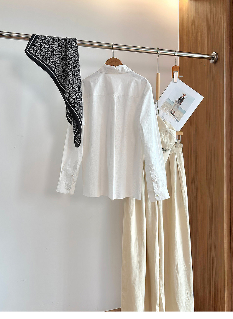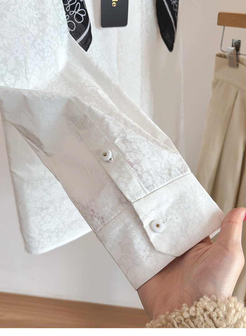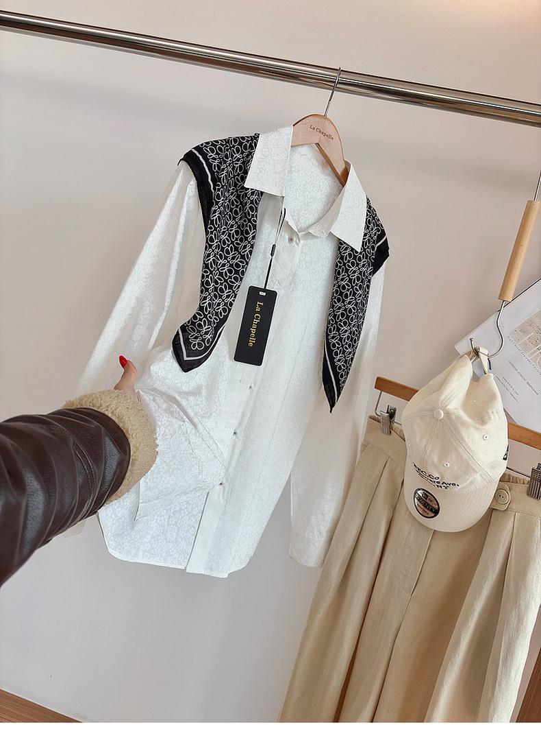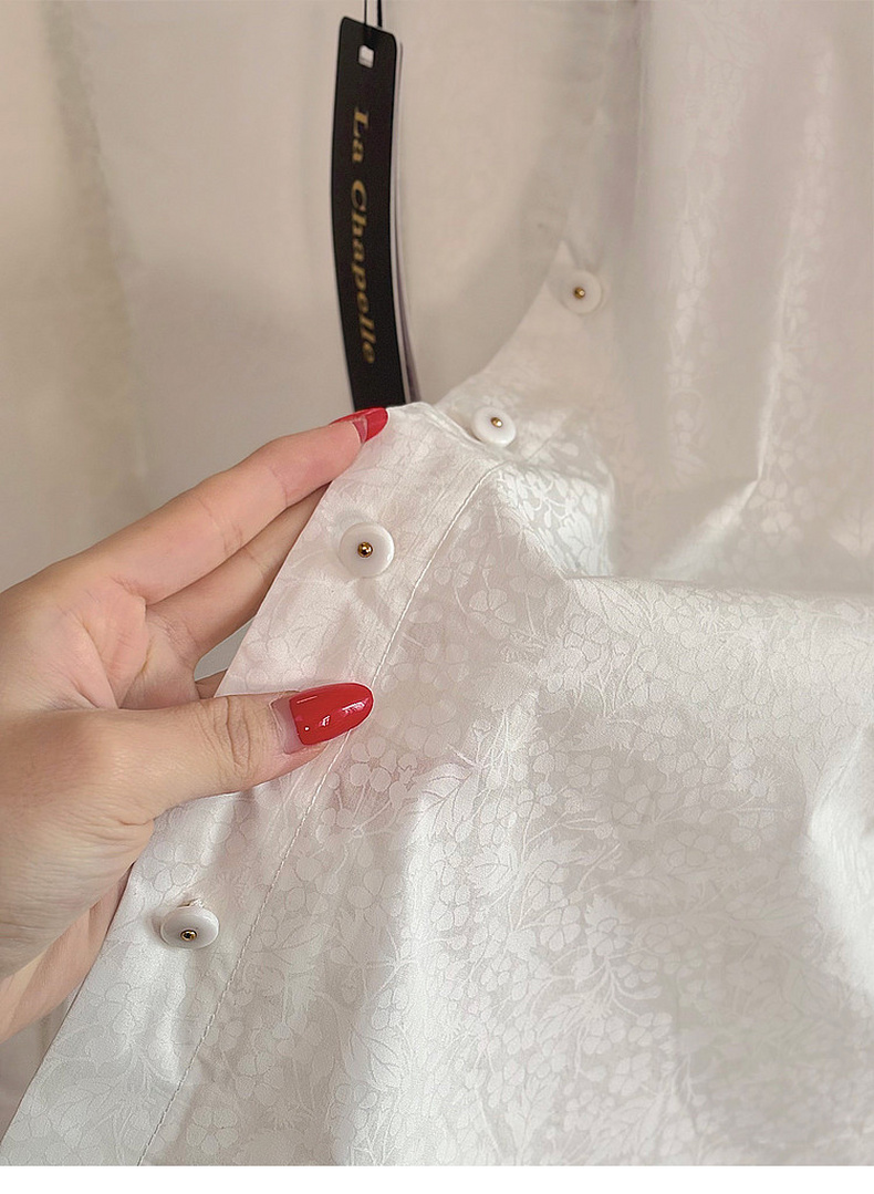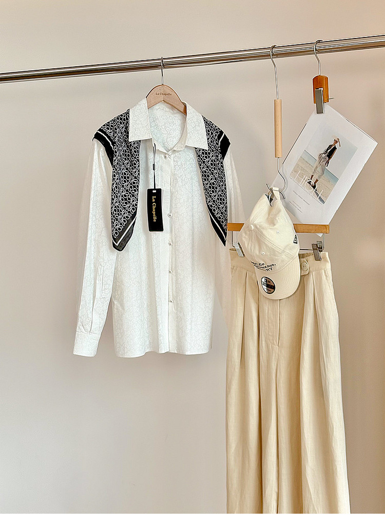 专柜实拍【全棉亲肤好穿!】拉夏贝尔/La Chapelle翻领排扣印花小众设计感高级简约气质长袖衬衫上衣