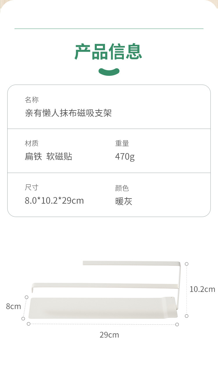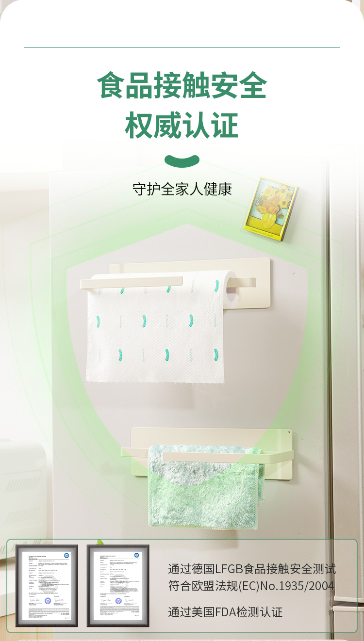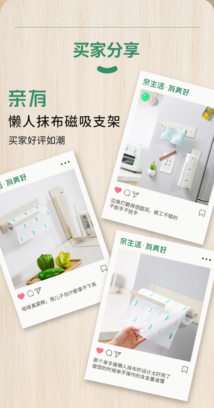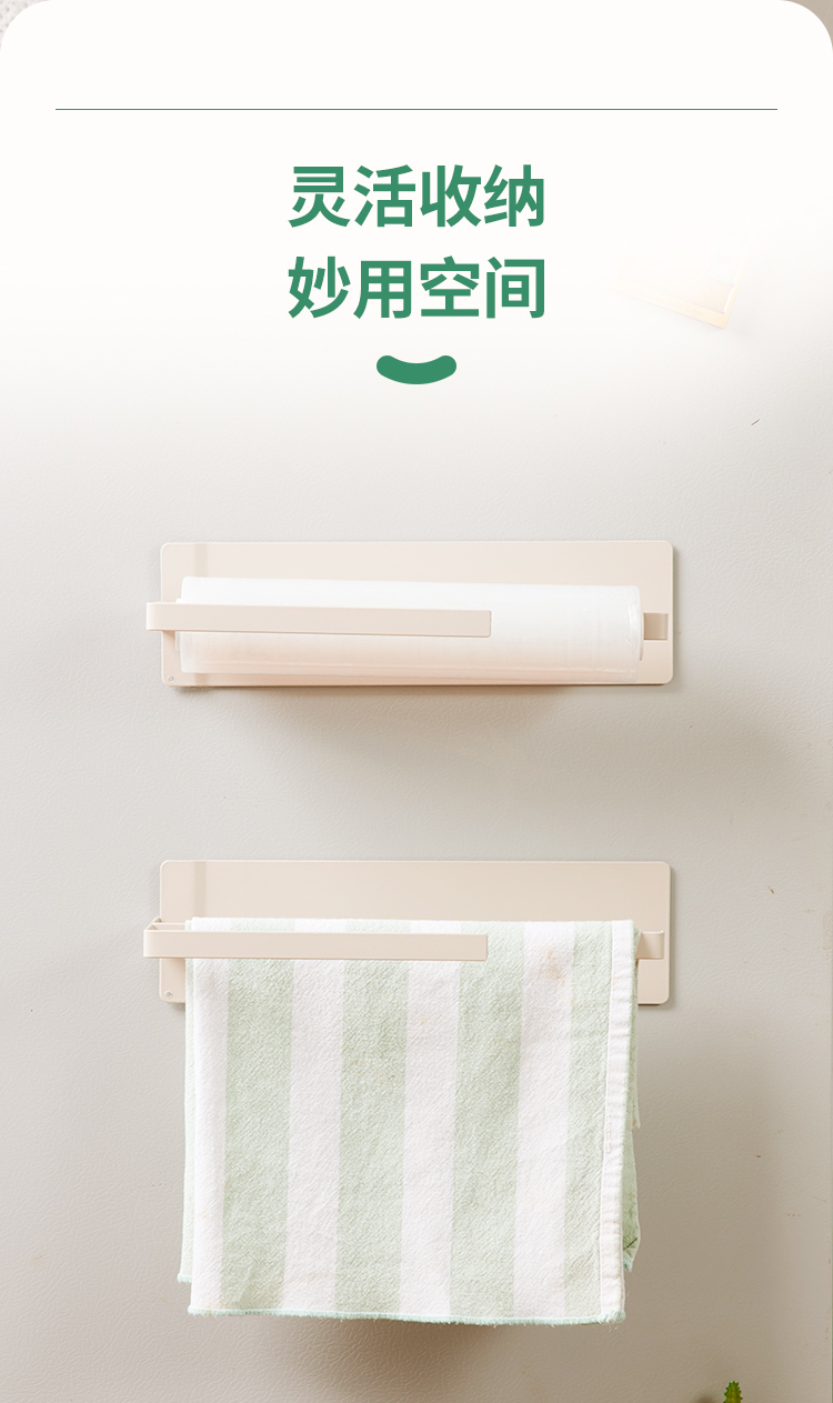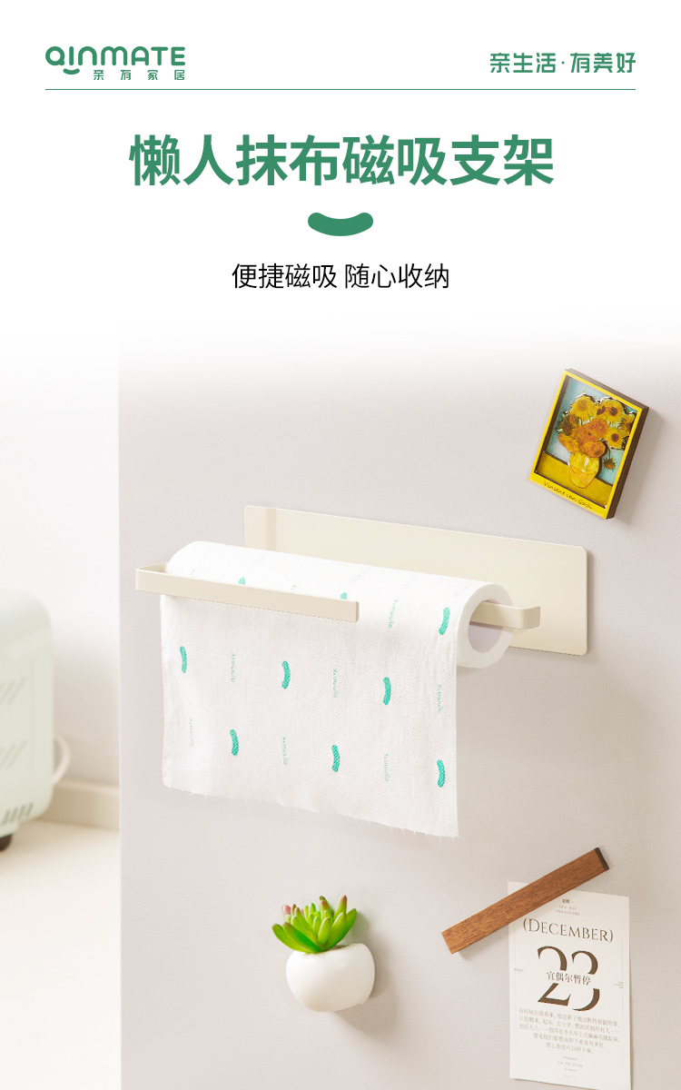 qinmate亲有 懒人抹布磁吸支架免打孔厨房纸巾架保鲜膜架双杆【该商品不支持用券】