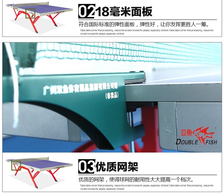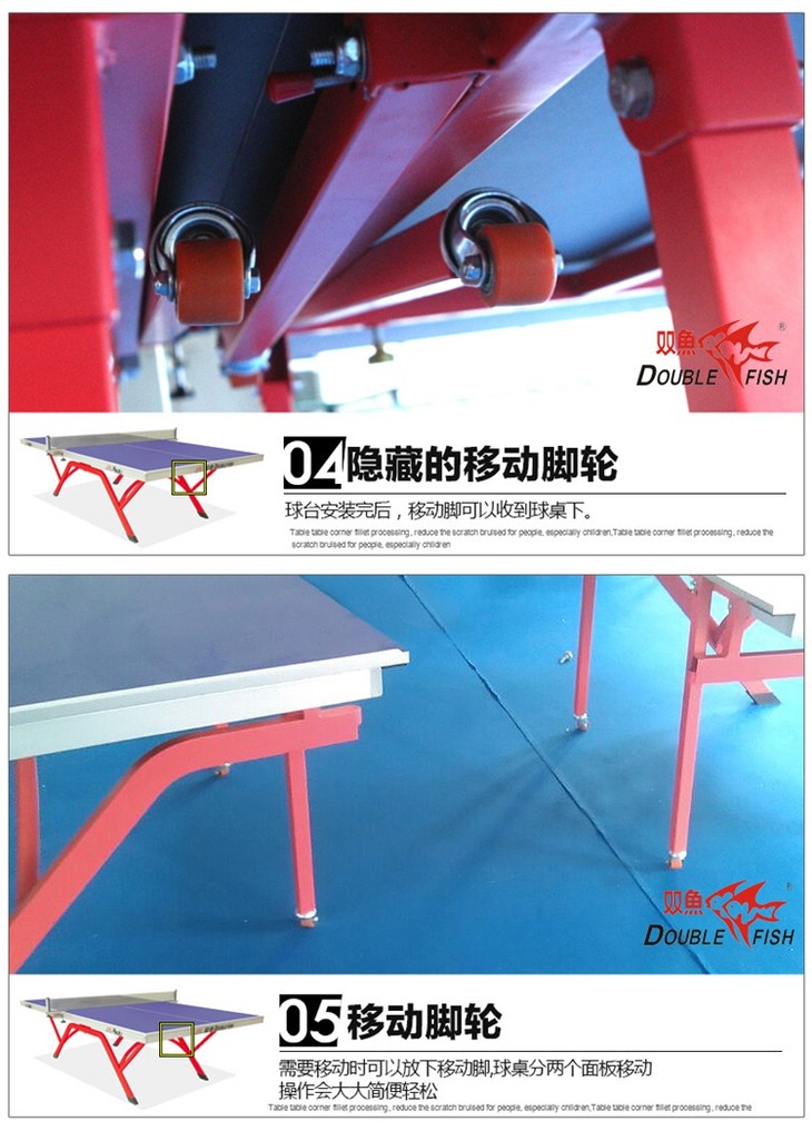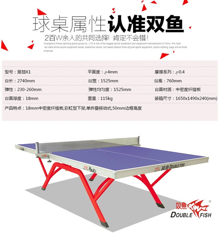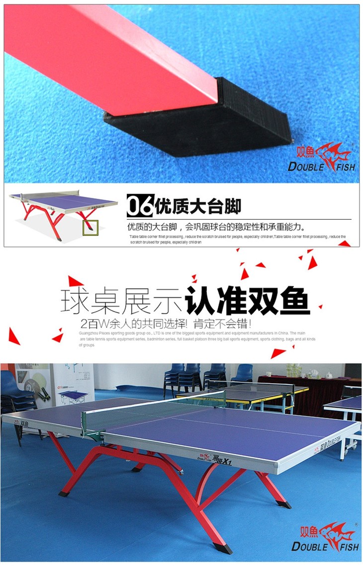 双鱼 展翅X1彩虹形下架标准室内家用乒乓球台球桌