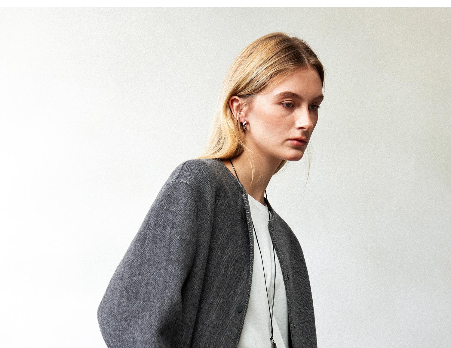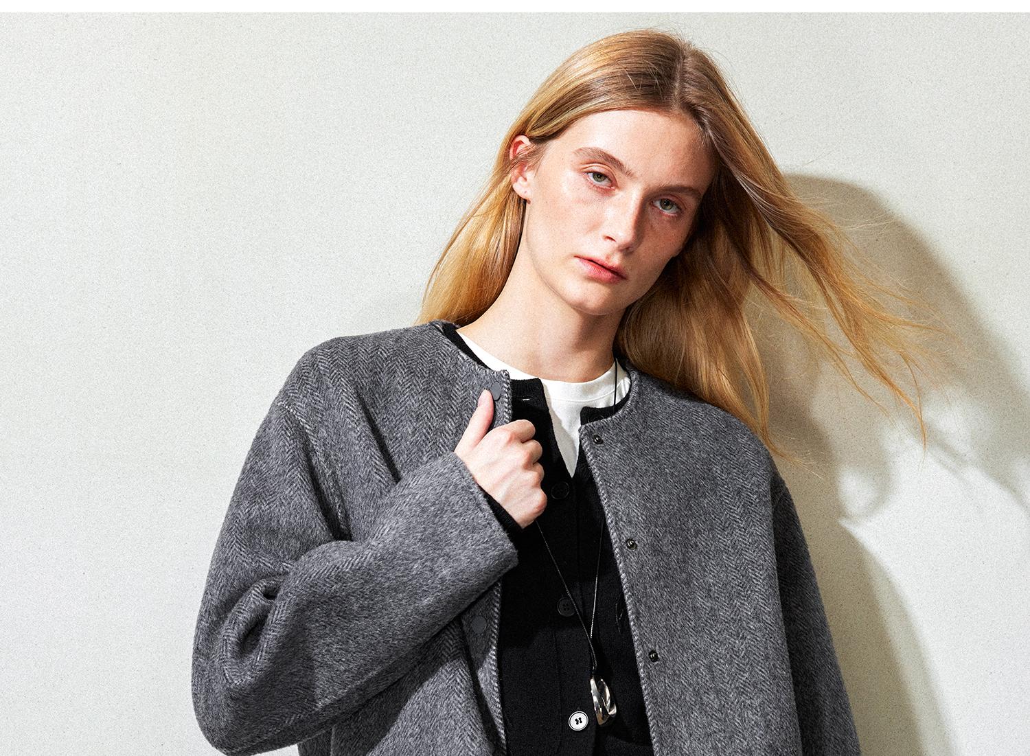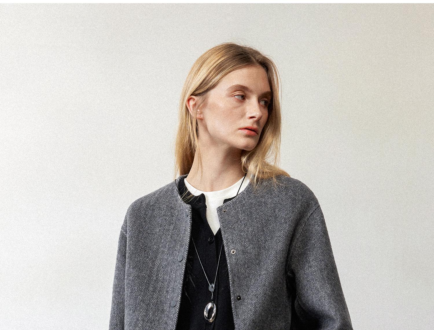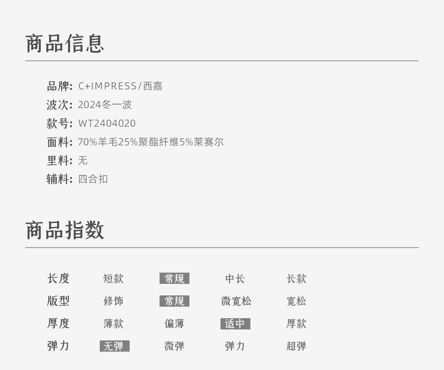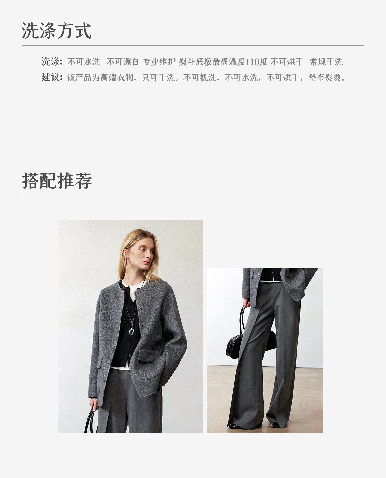 西嘉天丝羊毛 格雷系松弛感时髦圆领双面呢大衣短款外套女2024冬(货号:WT2404020)