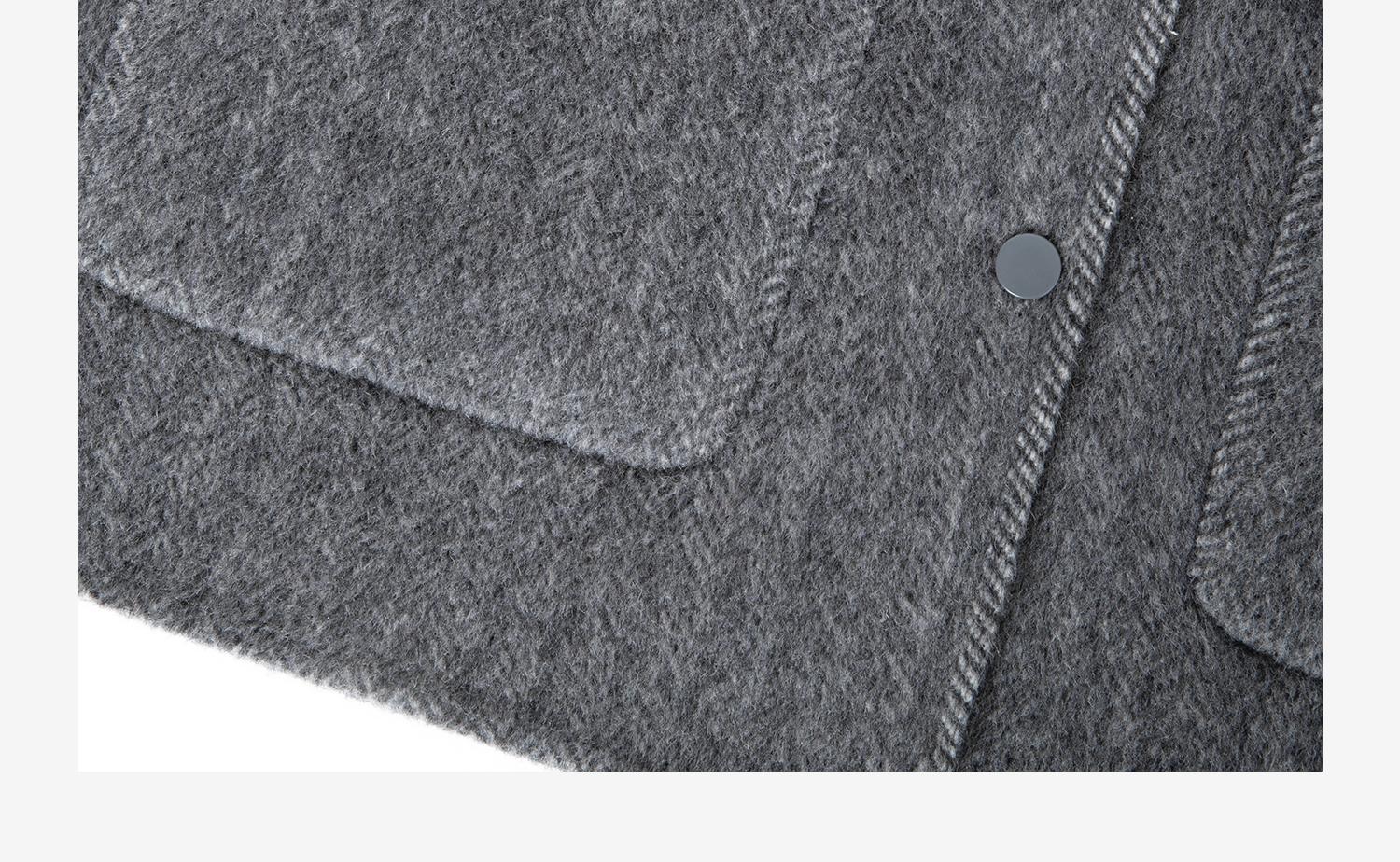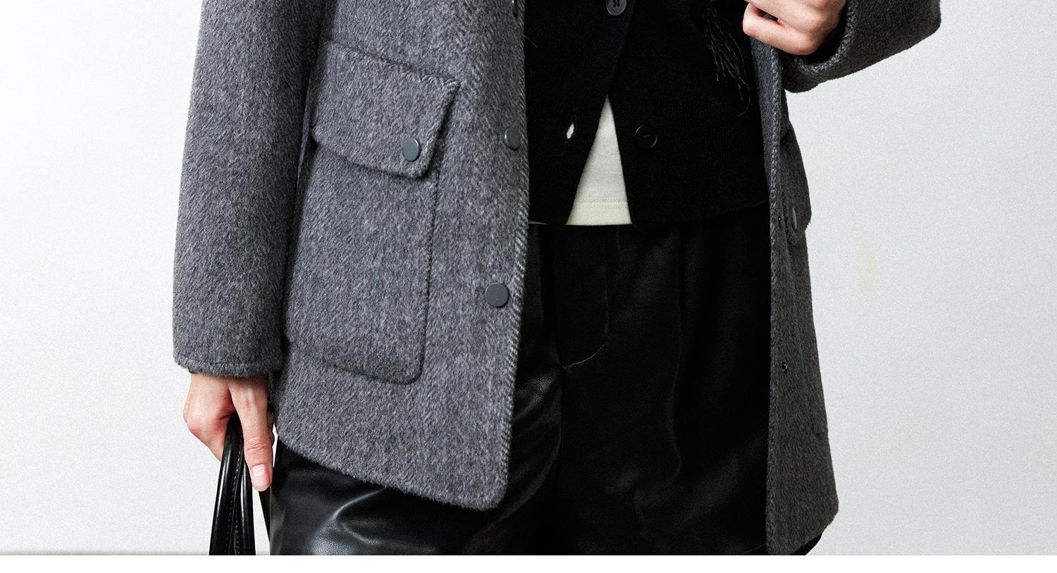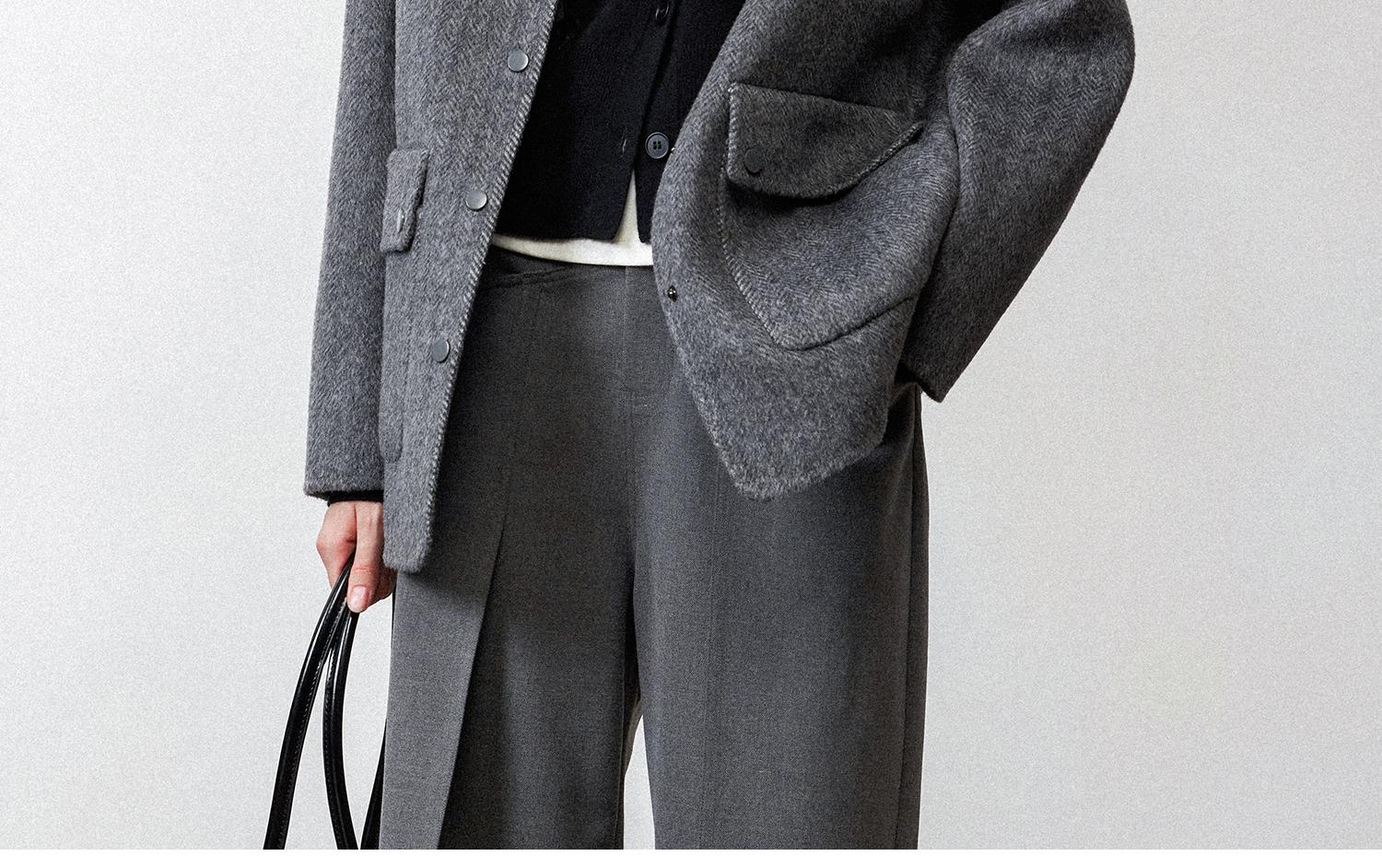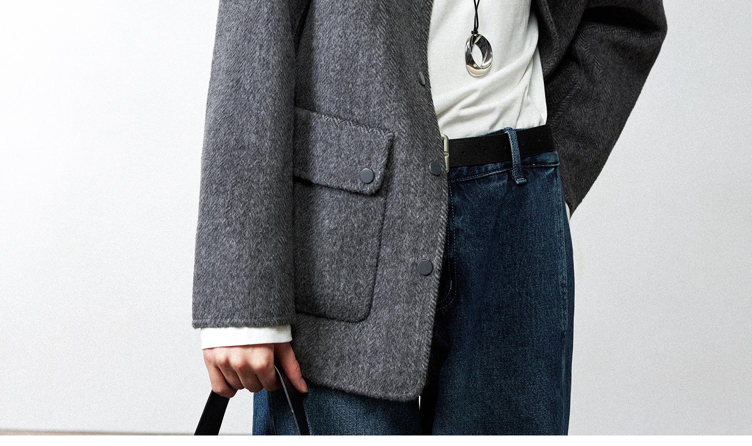 西嘉天丝羊毛 格雷系松弛感时髦圆领双面呢大衣短款外套女2024冬(货号:WT2404020)