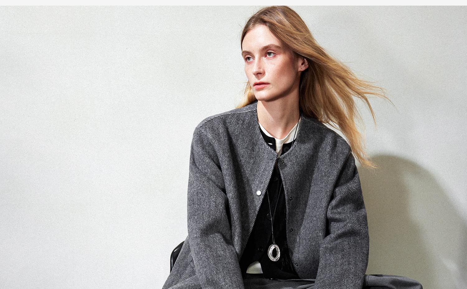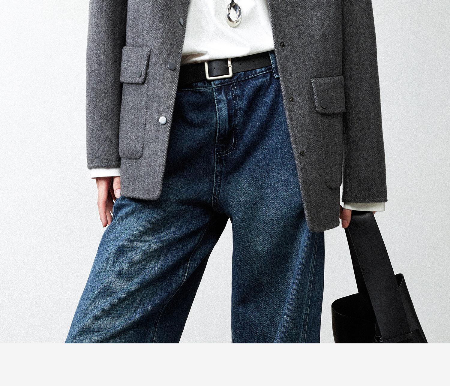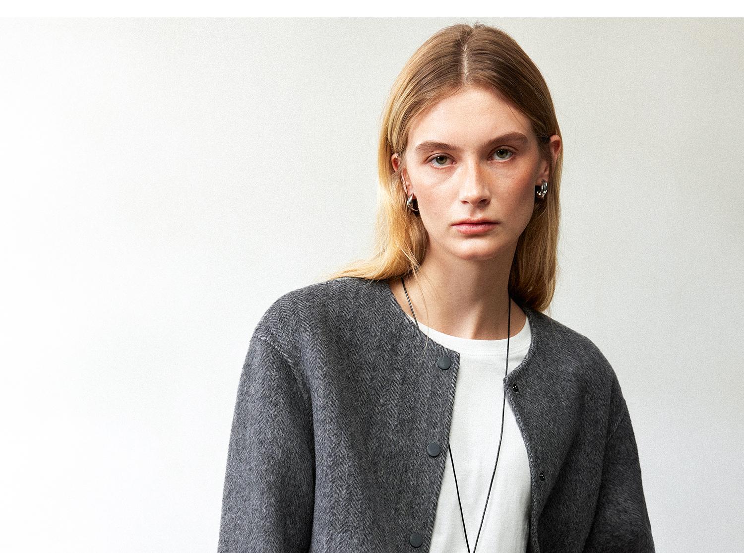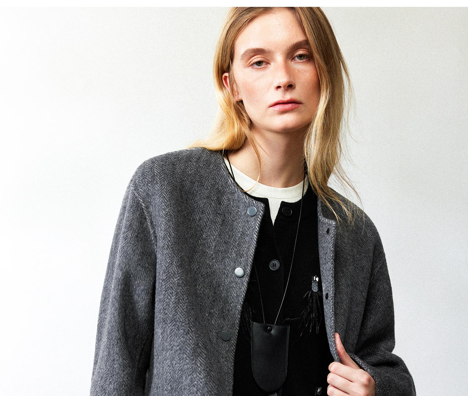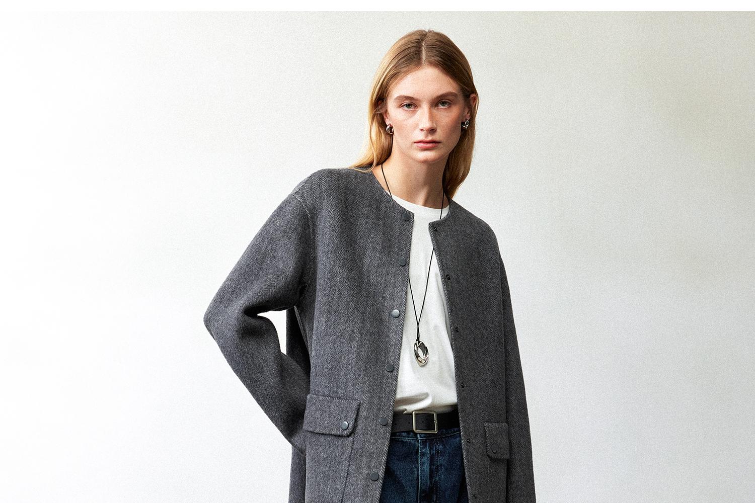 西嘉天丝羊毛 格雷系松弛感时髦圆领双面呢大衣短款外套女2024冬(货号:WT2404020)