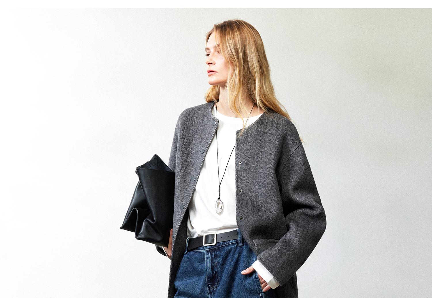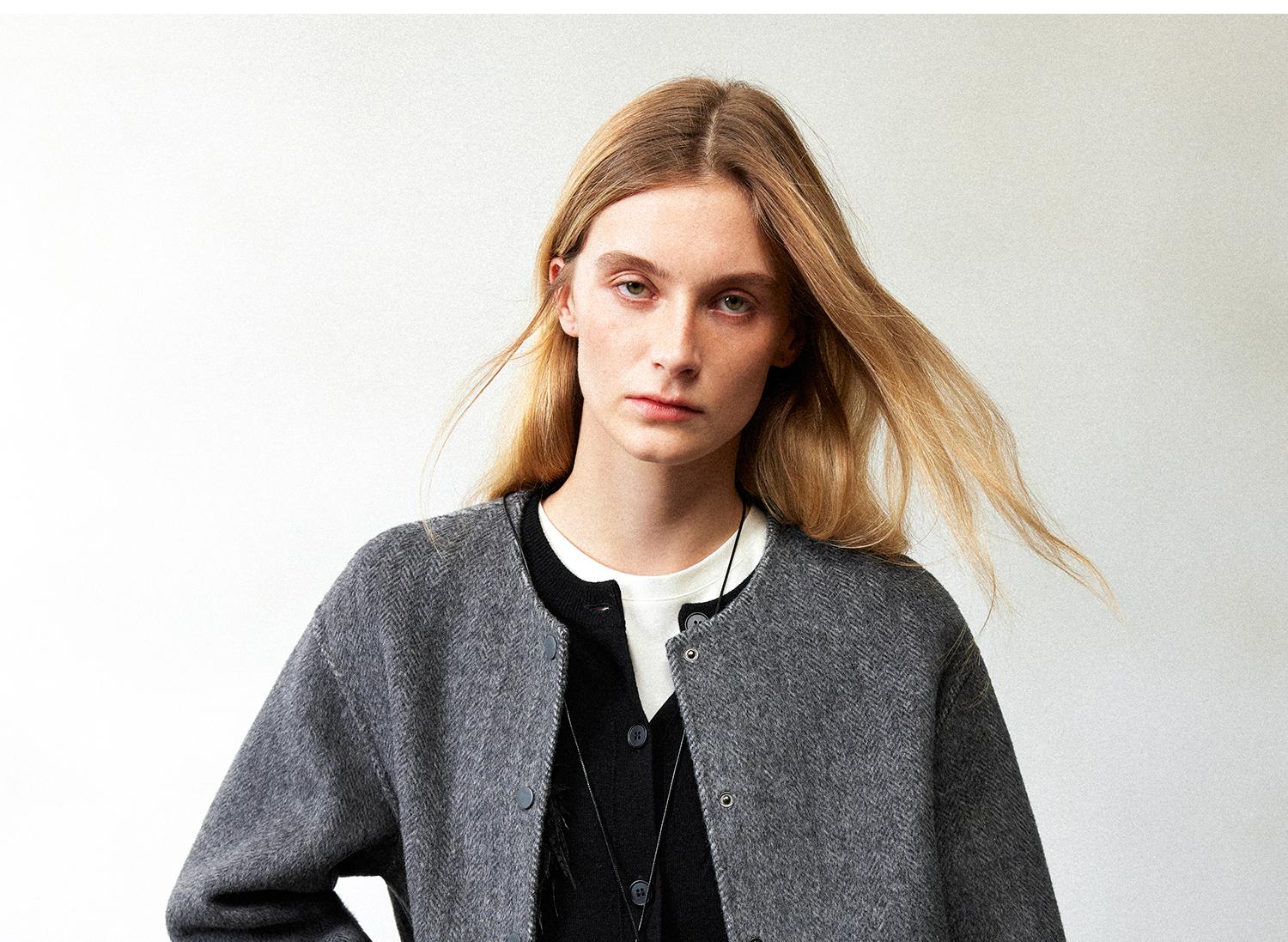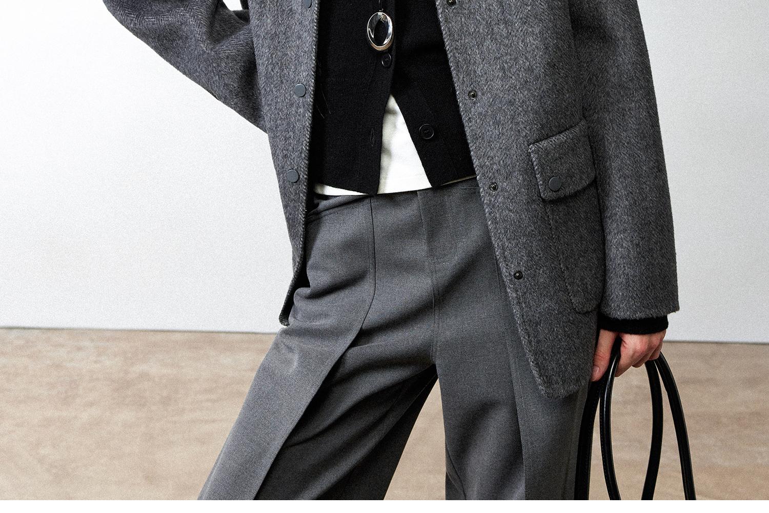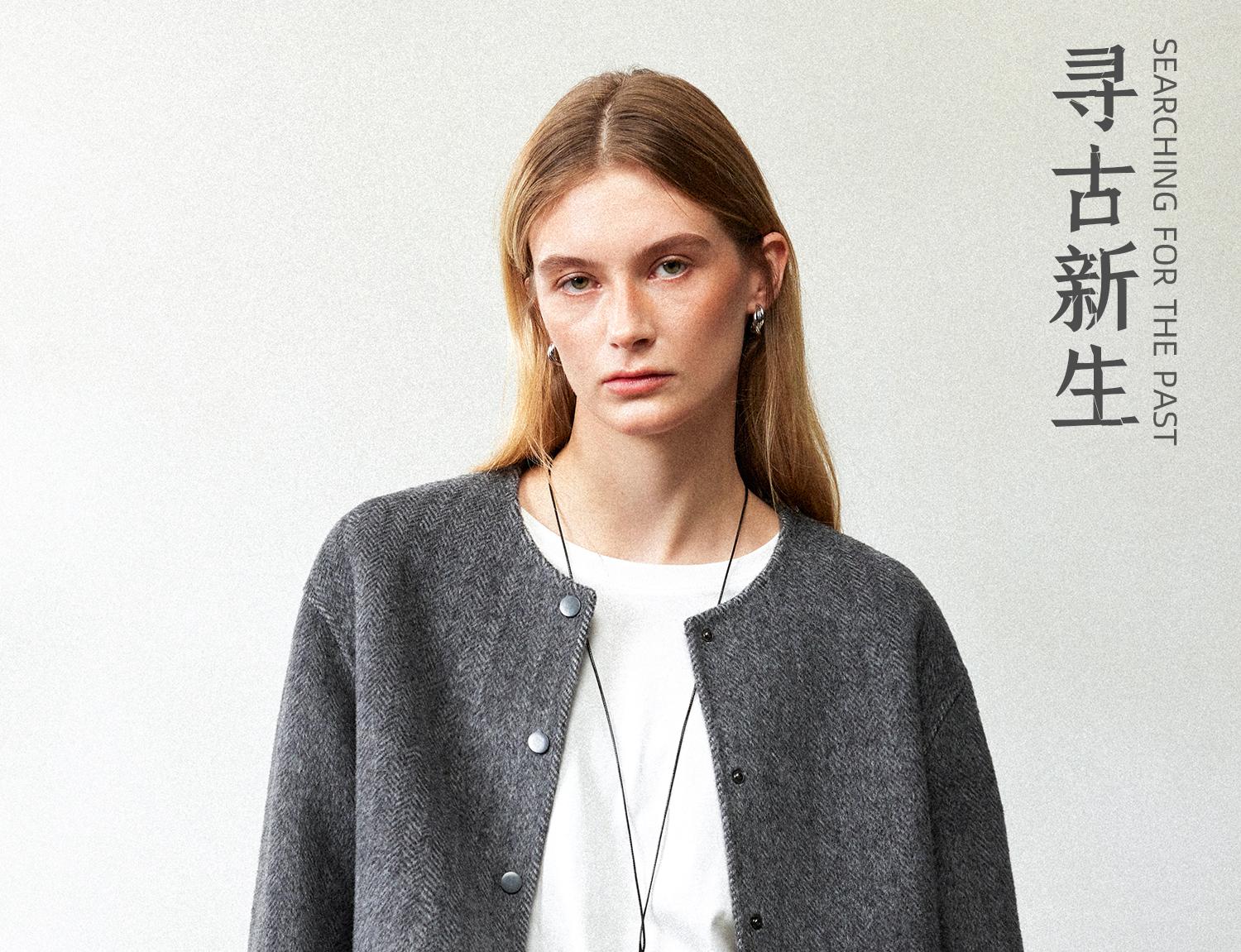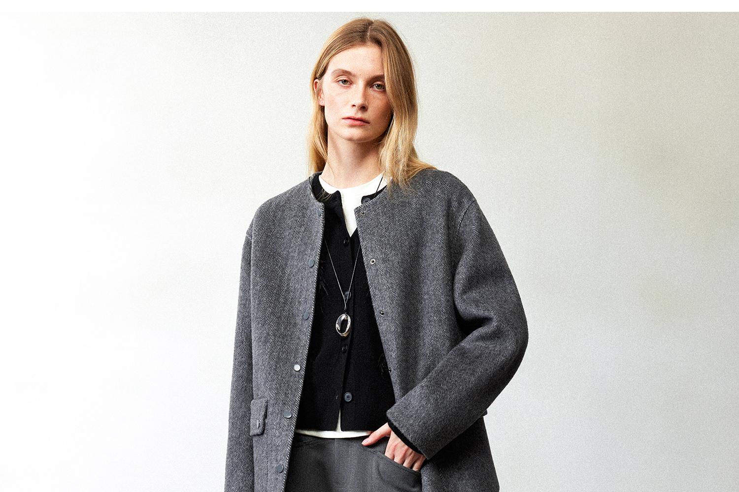 西嘉天丝羊毛 格雷系松弛感时髦圆领双面呢大衣短款外套女2024冬(货号:WT2404020)
