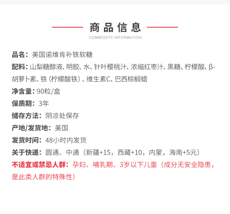 【1颗≈30颗红枣/200颗枸杞】美国Norvikon诺维肯补铁软糖 90粒*1瓶/2瓶