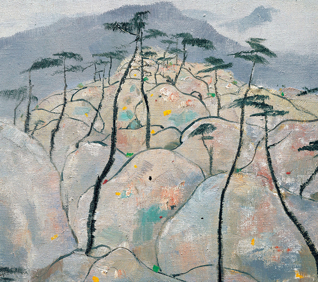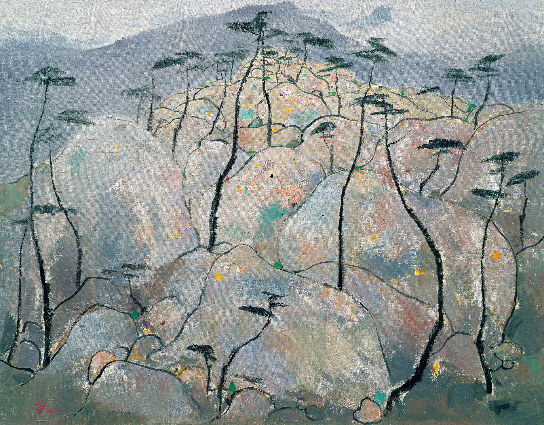 我减弱了体面与局部的坑坑洼洼,一味突出石与松的线之联姻,凭量感美的递变呈现多变而统一的高山阔野,那确实是我心目中的崂山了,体现了自己的审美观