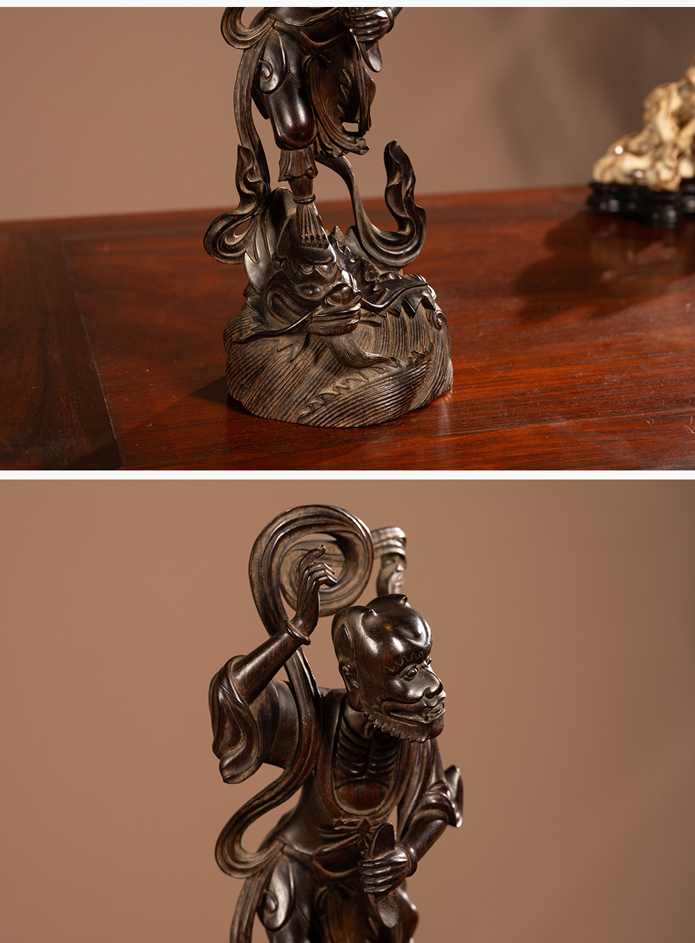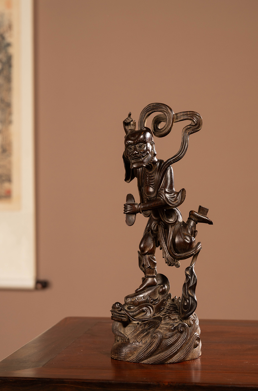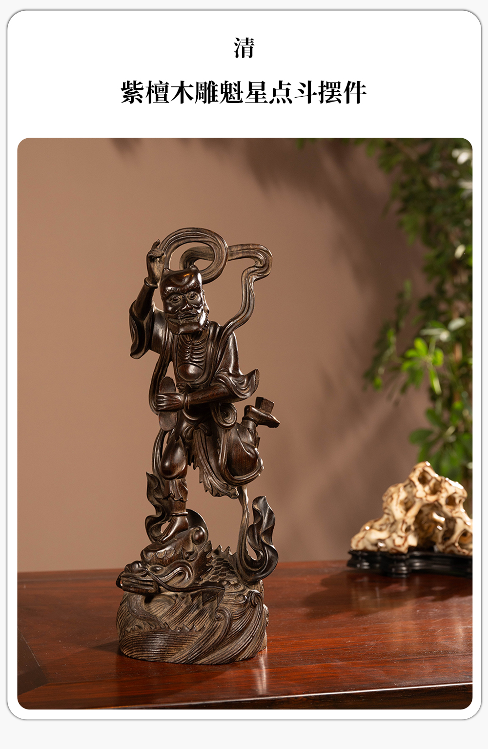 清 紫檀木雕魁星点斗摆件