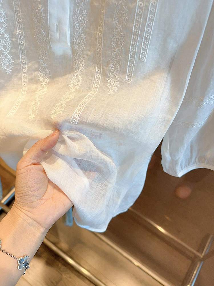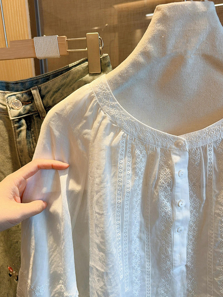 C039-6663高级设计感半袖衬衫女夏季宽松圆领正肩显瘦高端短袖2025衬衣薄款