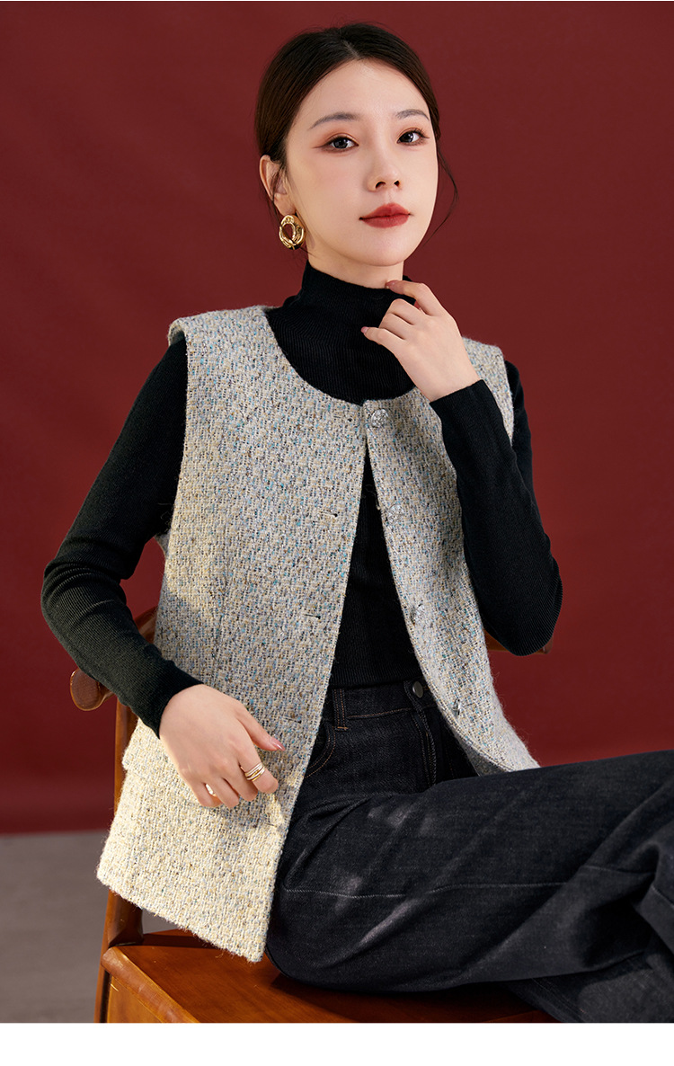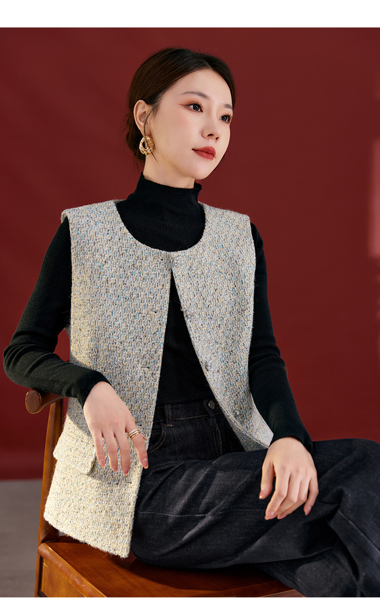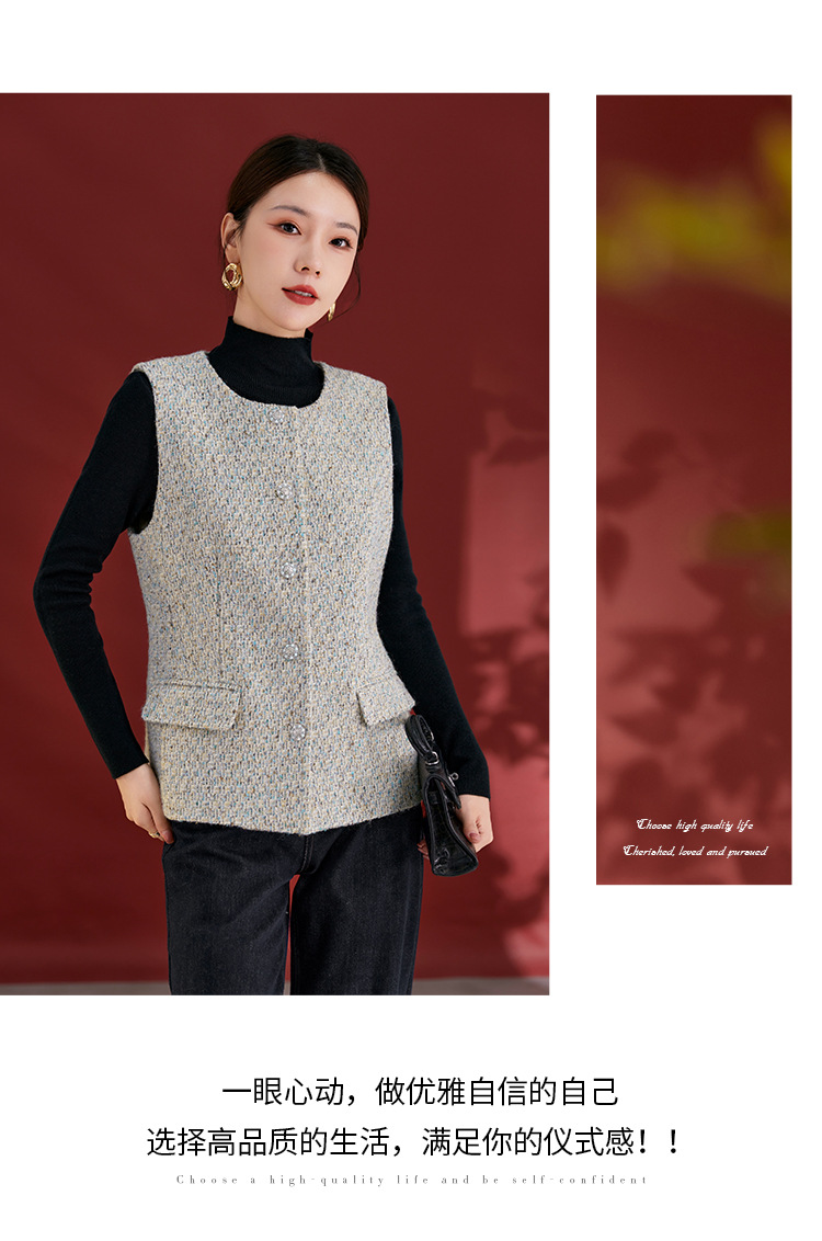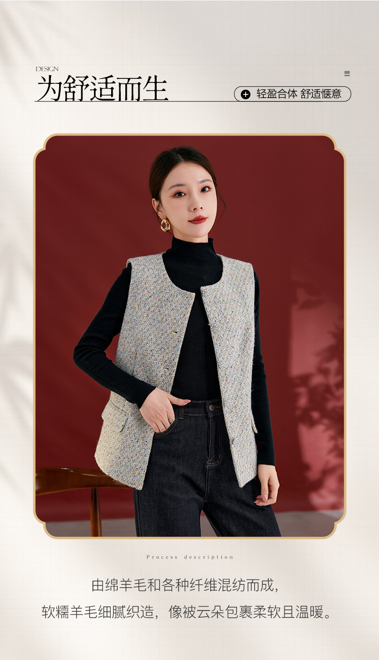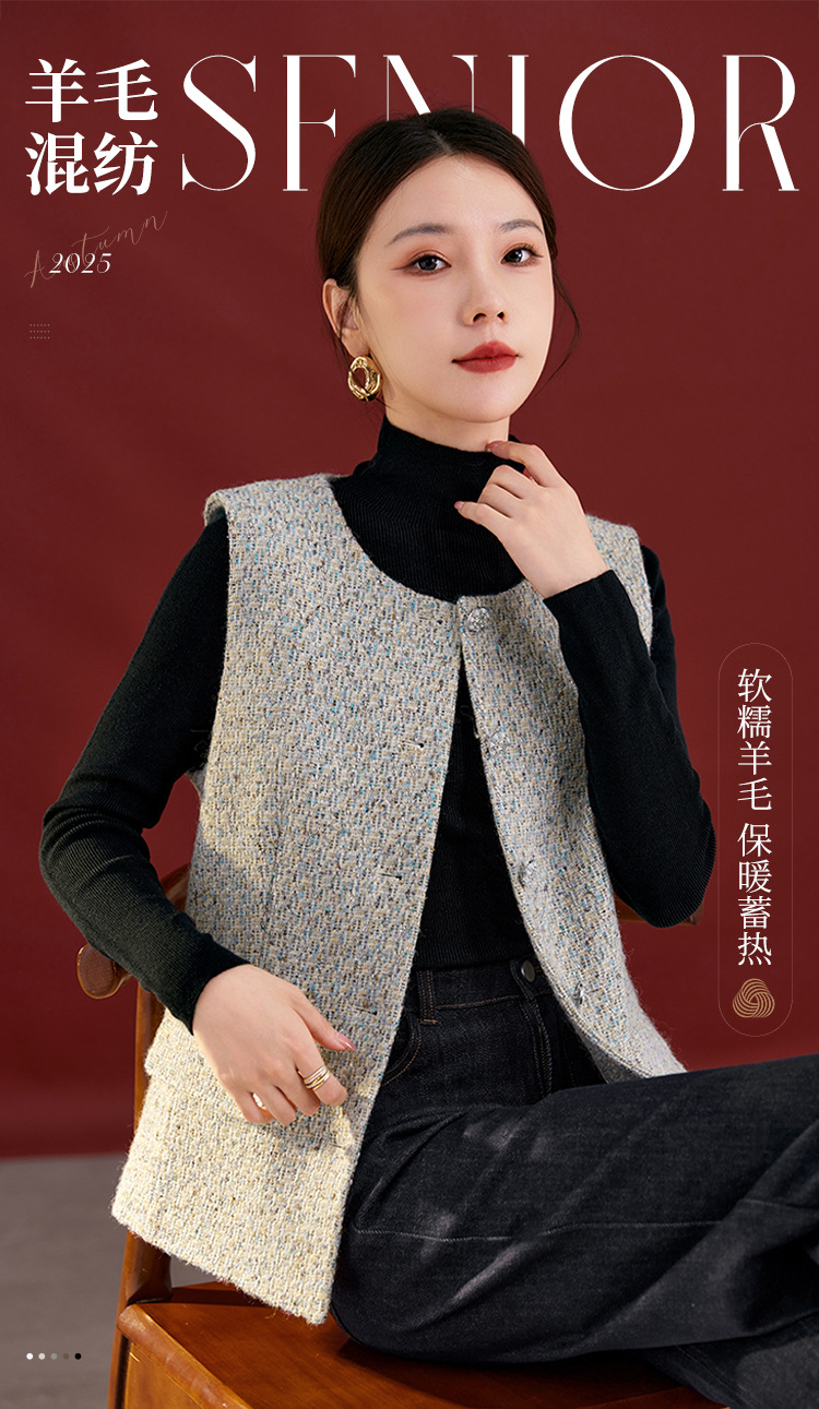 QS秋冬新款羊毛马甲休闲简约圆领开衫高级气质款开衫上衣女2769