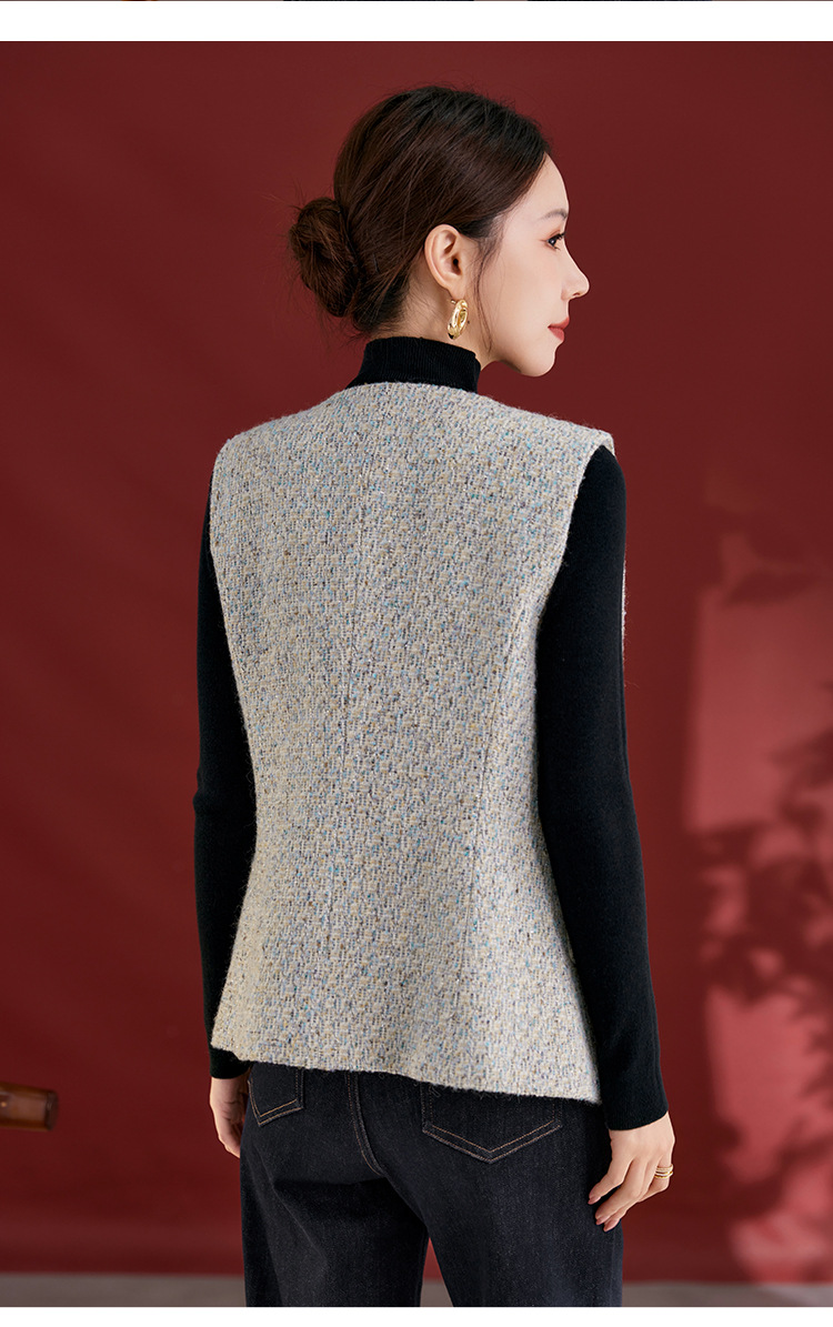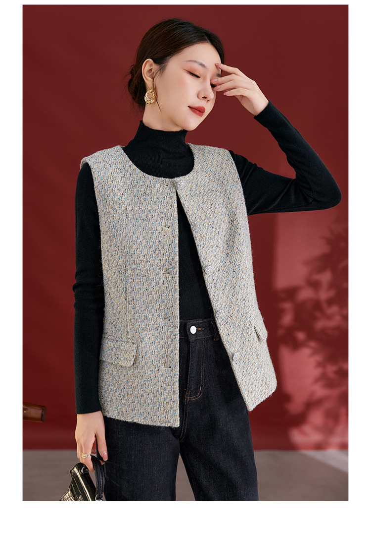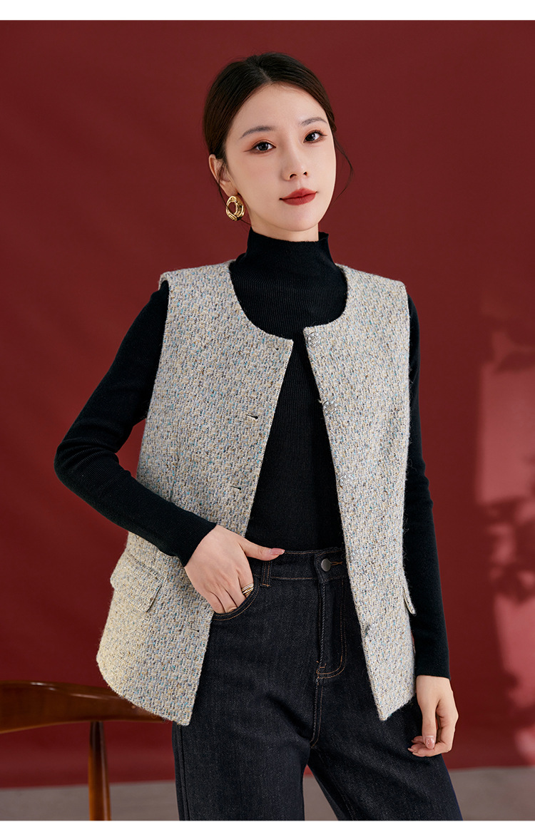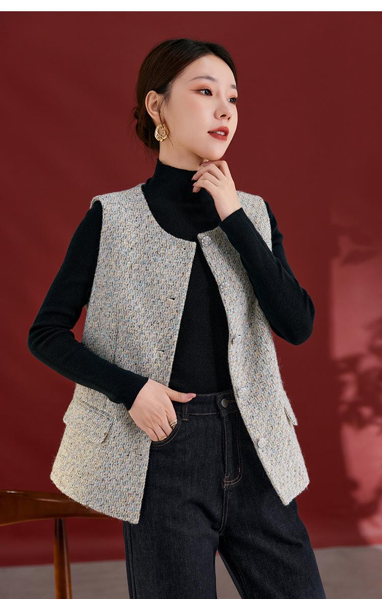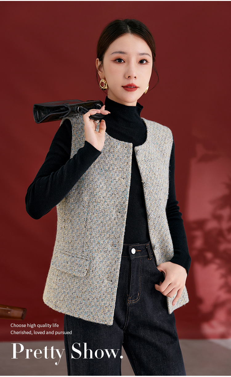 QS秋冬新款羊毛马甲休闲简约圆领开衫高级气质款开衫上衣女2769