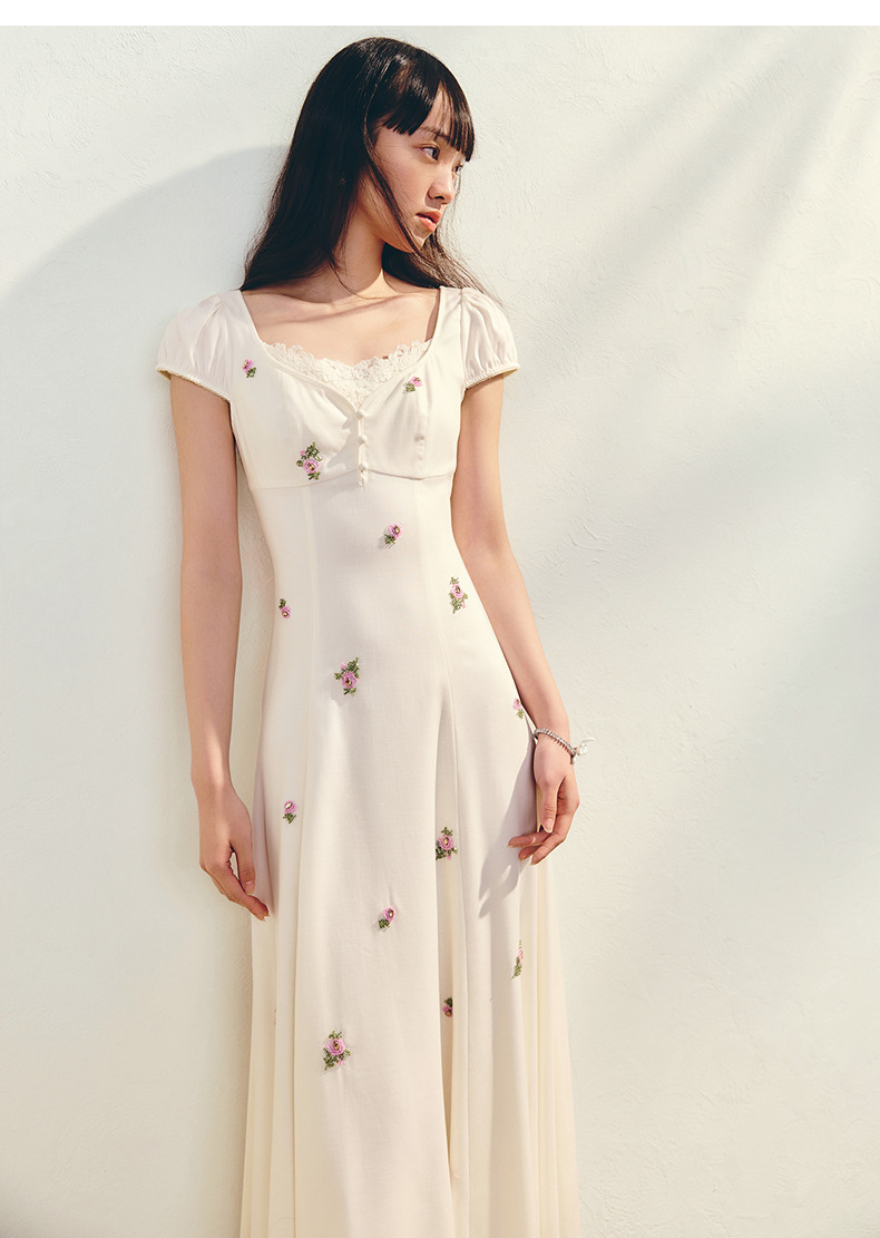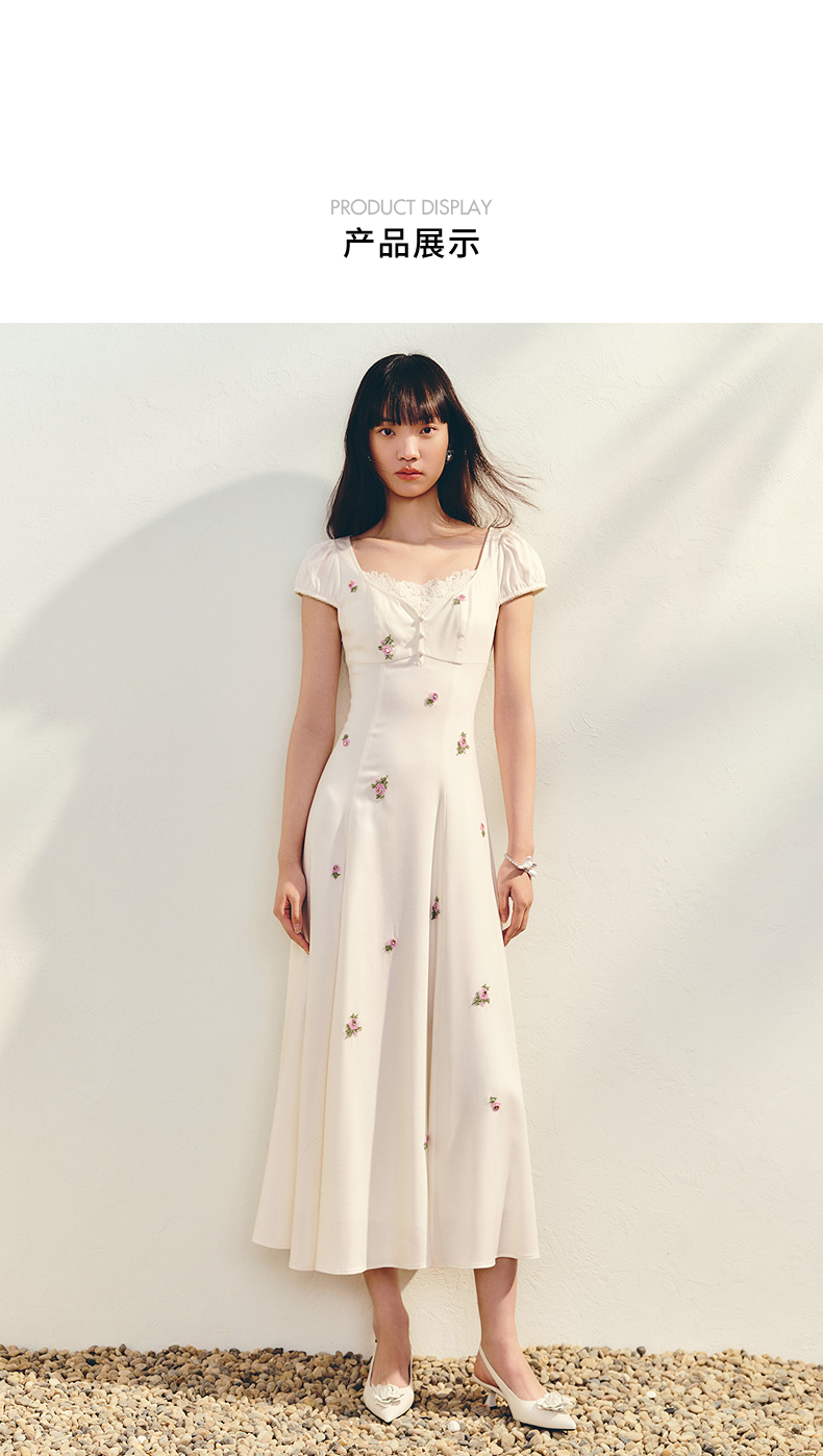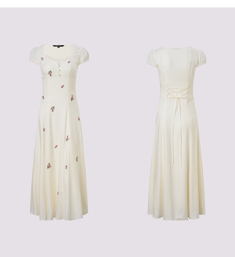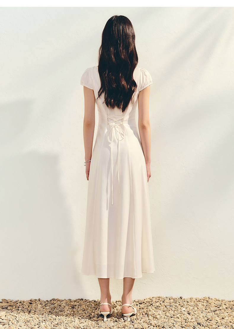 【商场同款】MAXRIENY法式宫廷抽绳连衣裙复古极简收腰长裙25夏款(货号:MC86DR022)