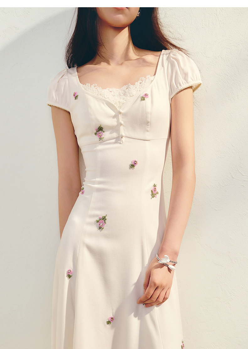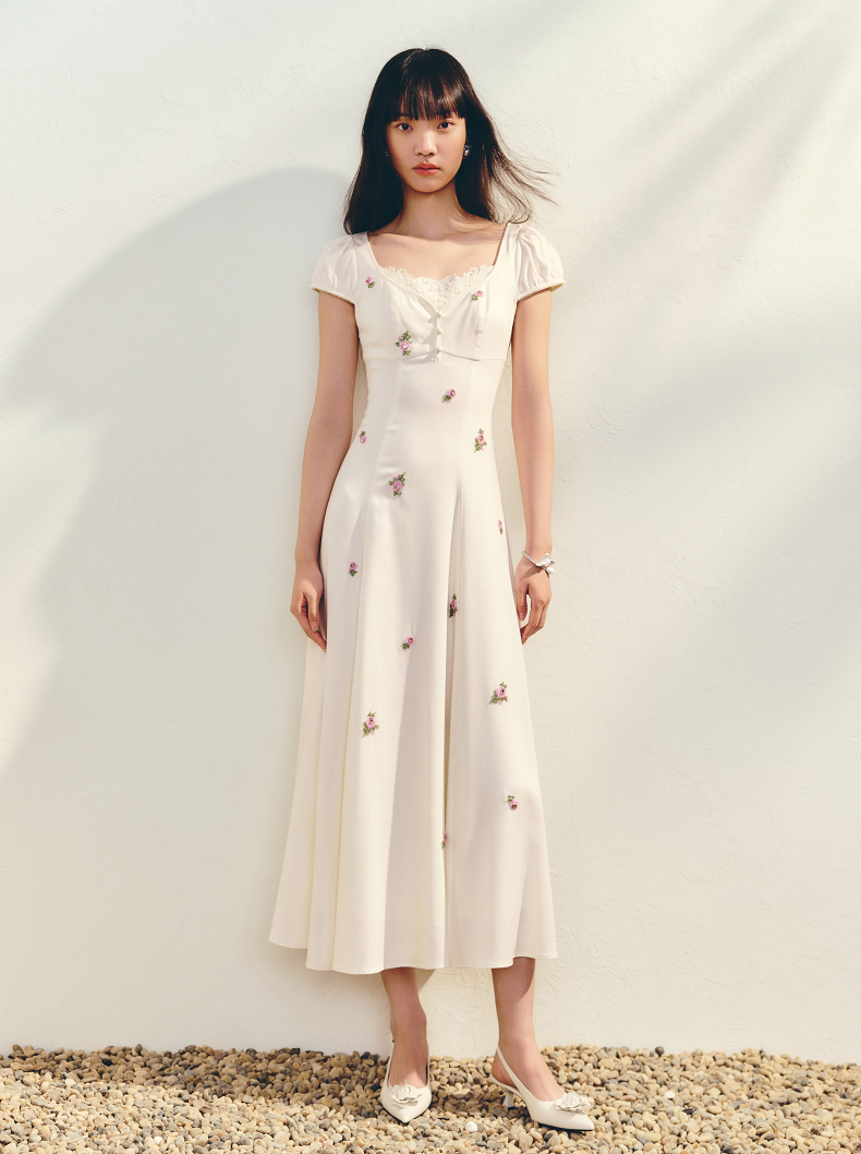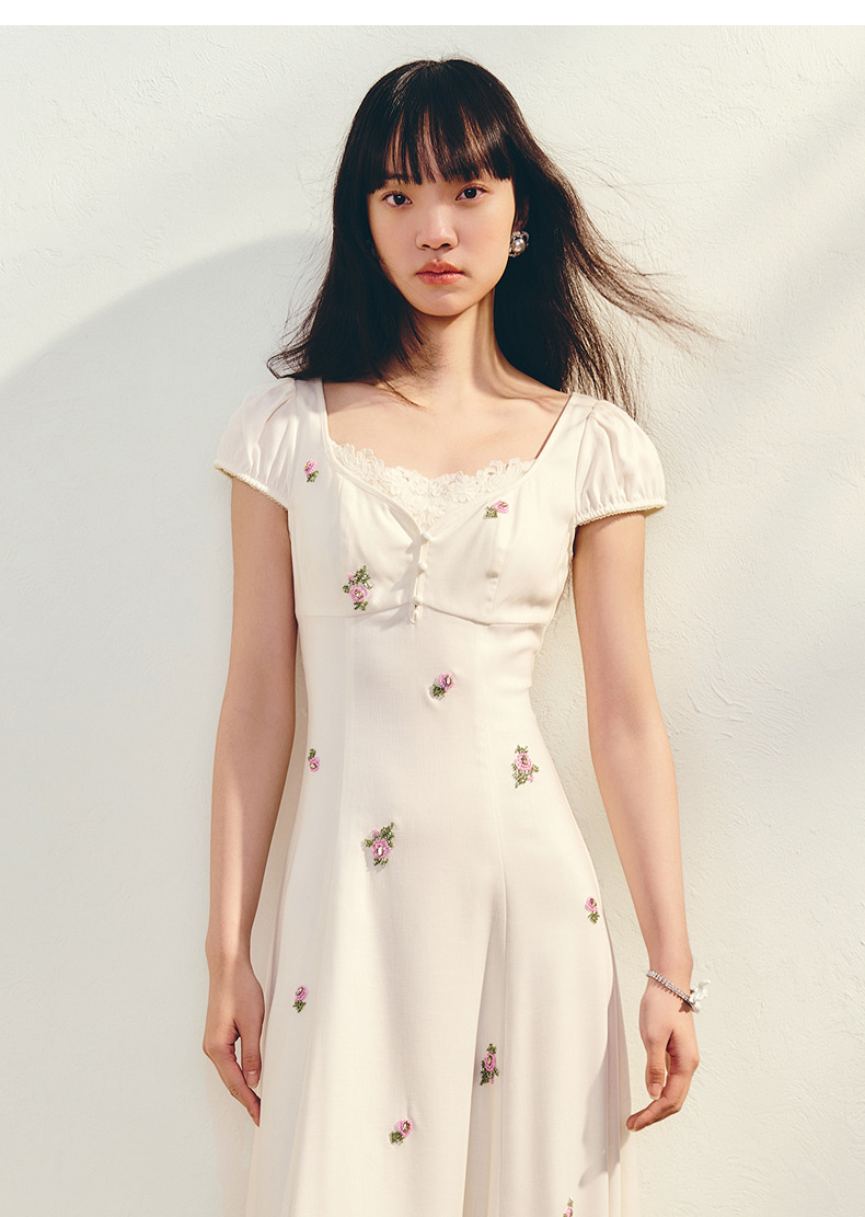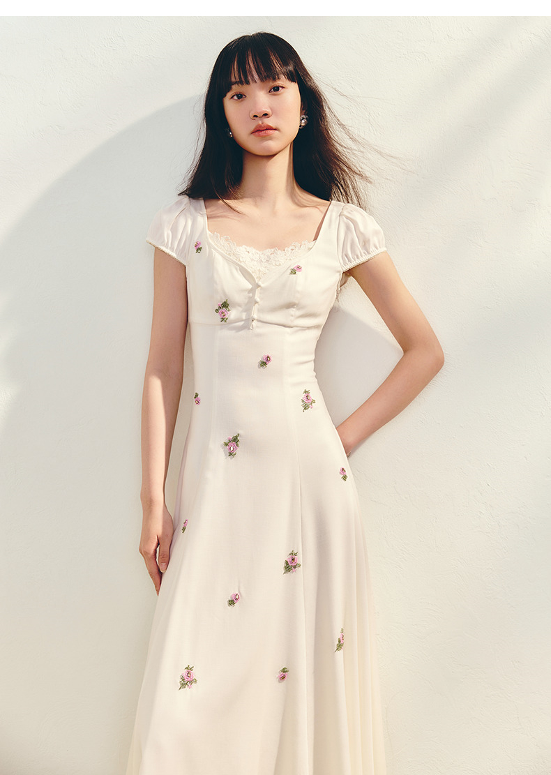 【商场同款】MAXRIENY法式宫廷抽绳连衣裙复古极简收腰长裙25夏款(货号:MC86DR022)