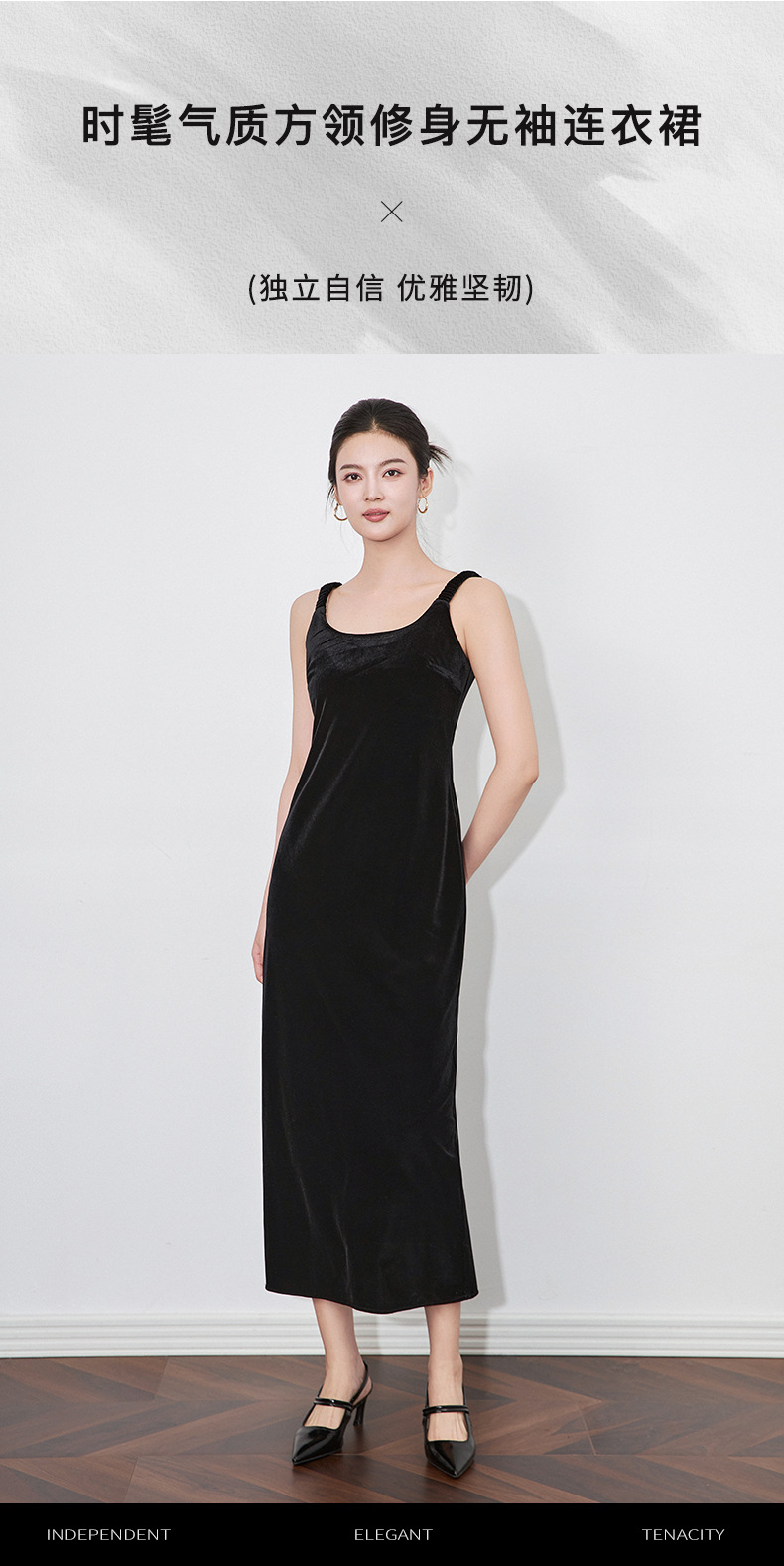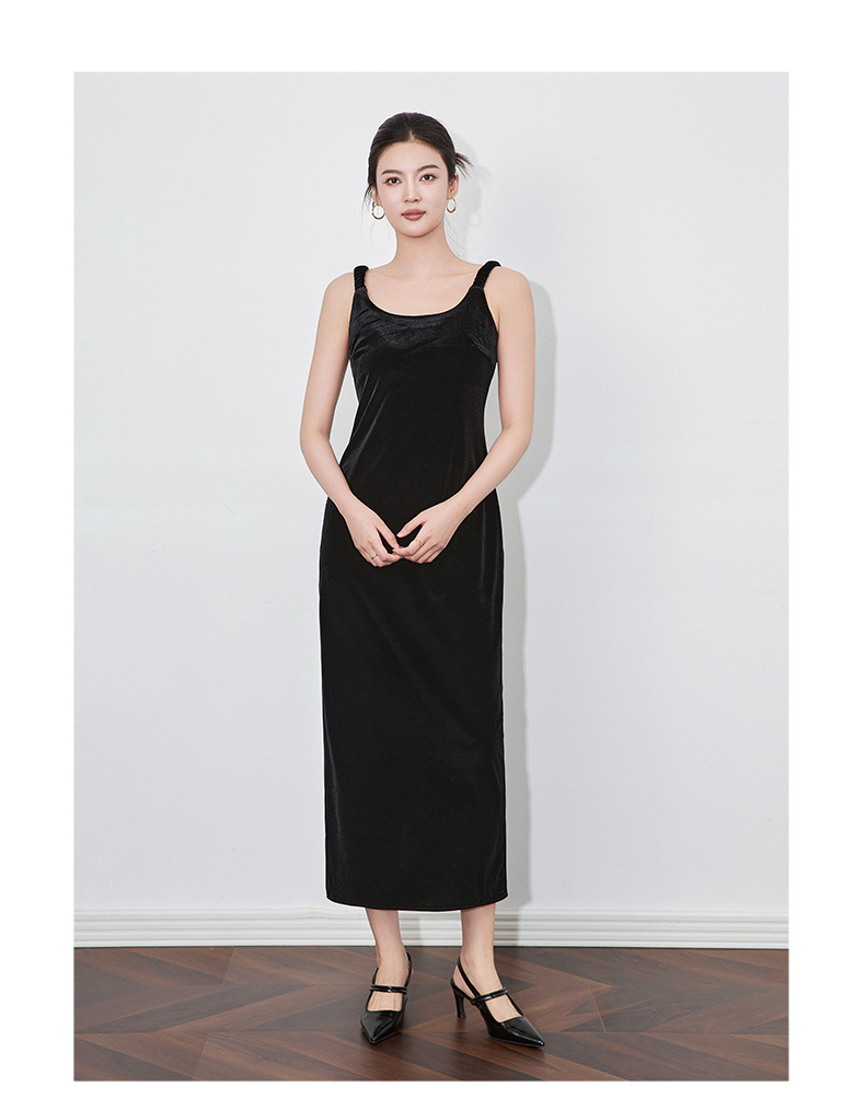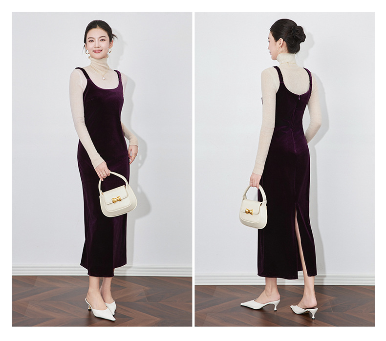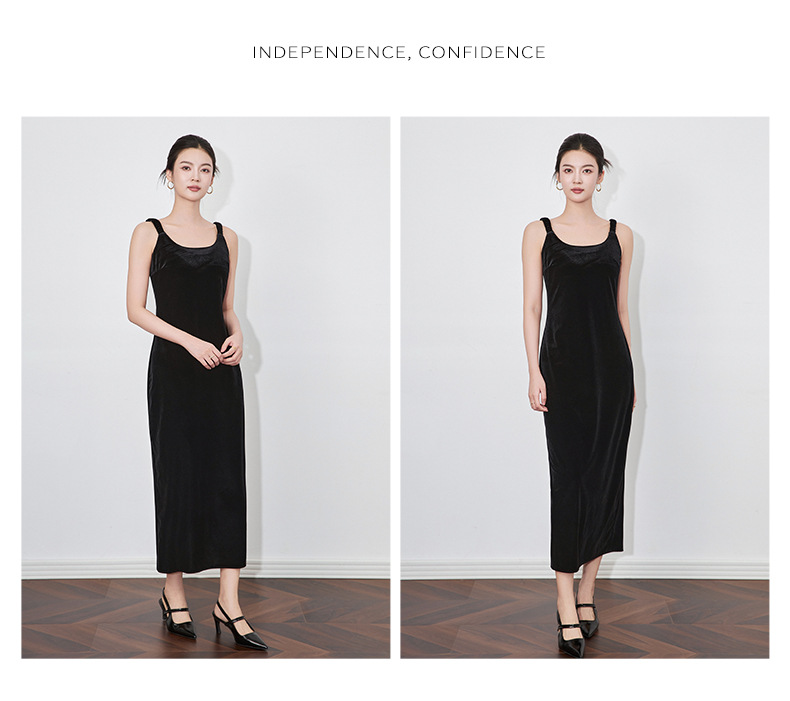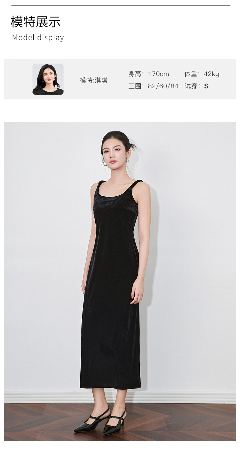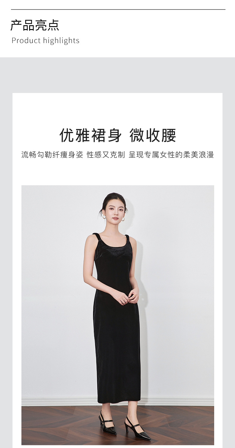 【高货wl】全新升级【铂金会员238/天猫299/差价61】(33434) 洛诗琳高级感名媛气质吊带秋冬款打底裙立绒收腰连衣裙
