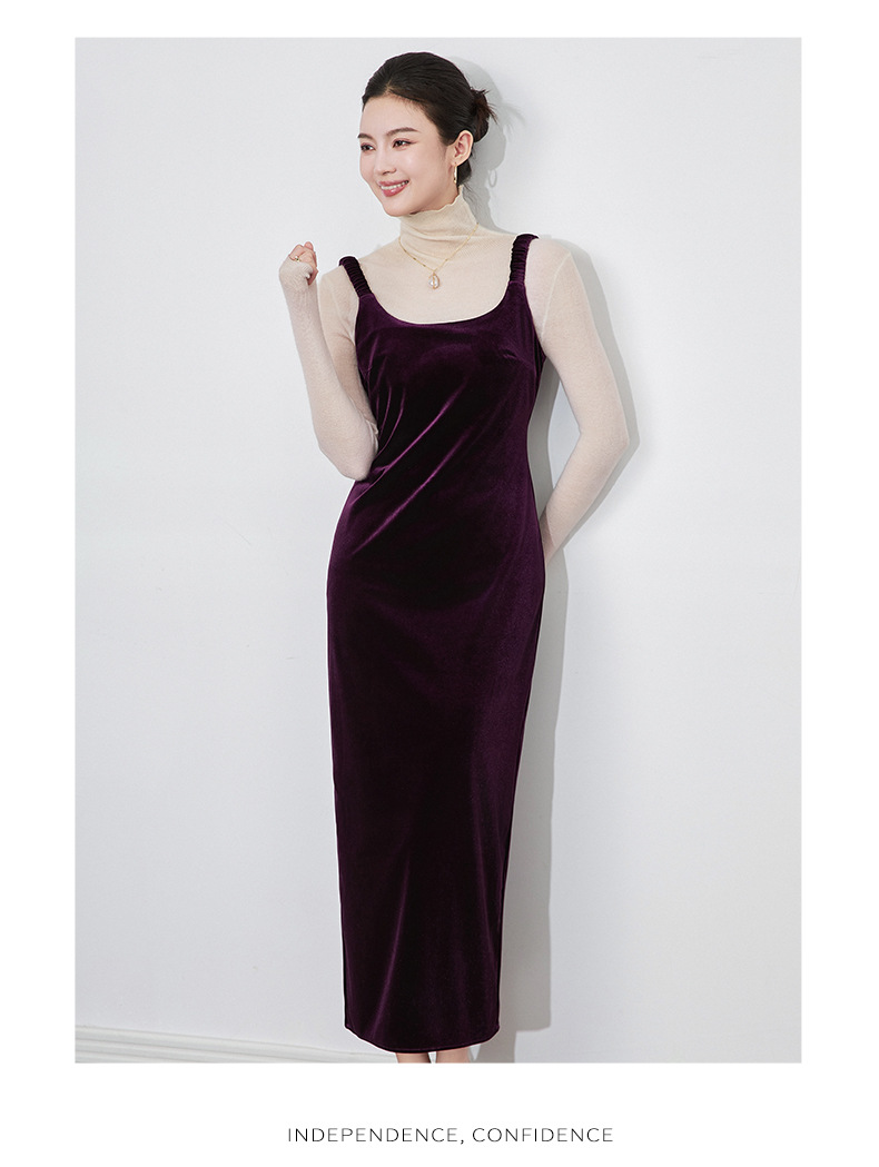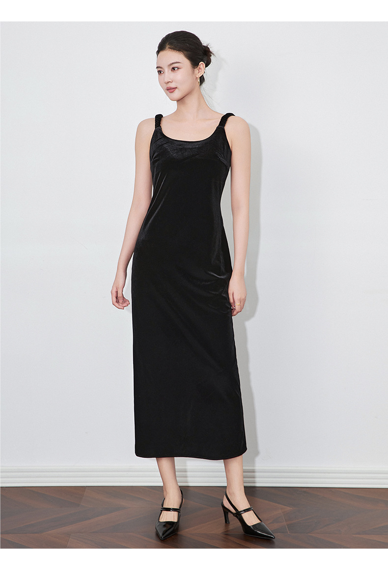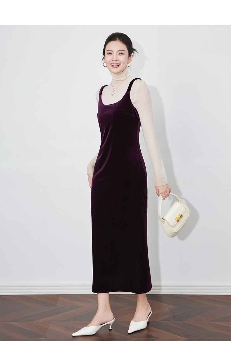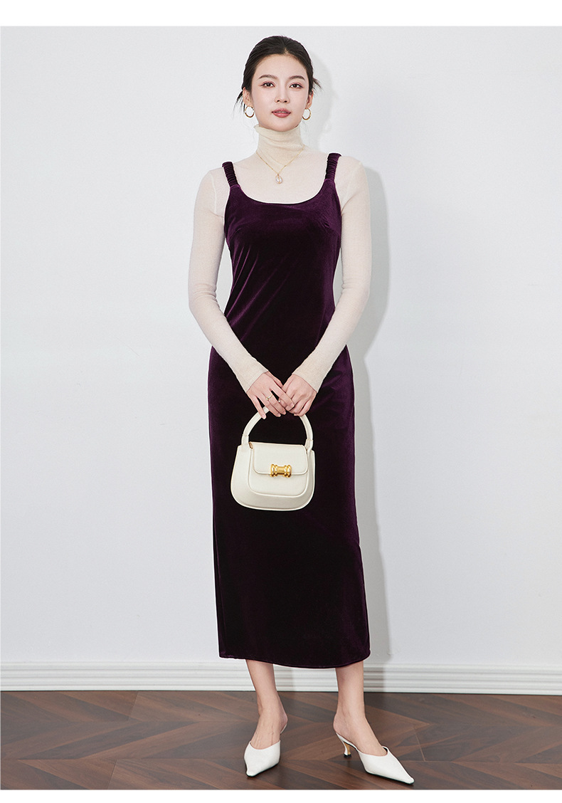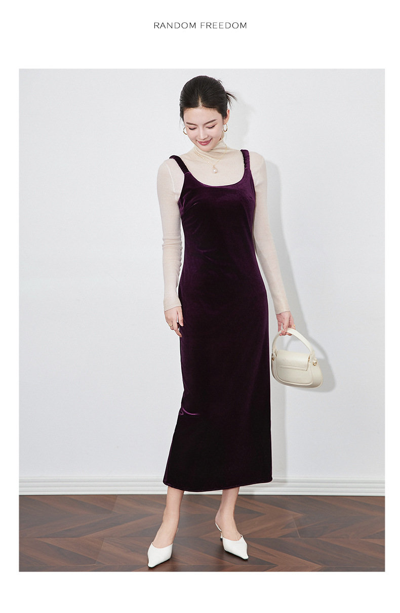 【高货wl】全新升级【铂金会员238/天猫299/差价61】(33434) 洛诗琳高级感名媛气质吊带秋冬款打底裙立绒收腰连衣裙
