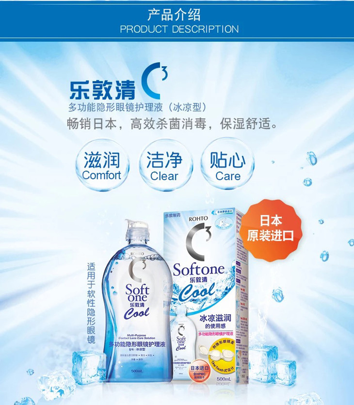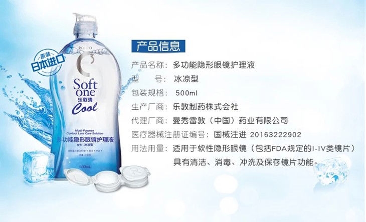 日本原装进口ROHTO乐敦 多功能隐形眼镜护理液500ML