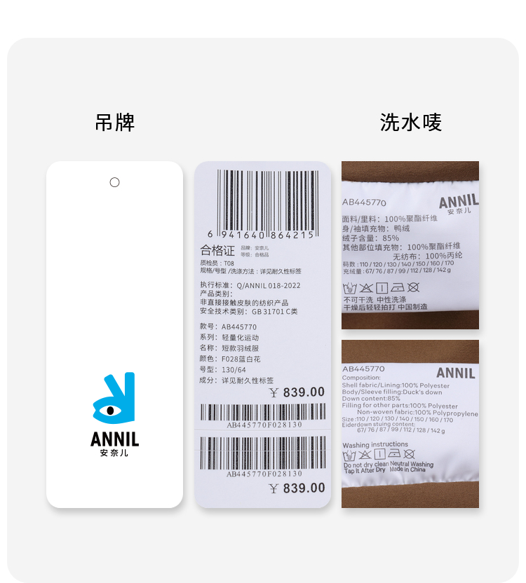 【轻暖0~10℃】男童户外短款羽绒外套冬季新款安奈儿童装实体店同款AB445770