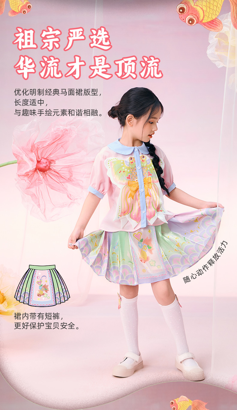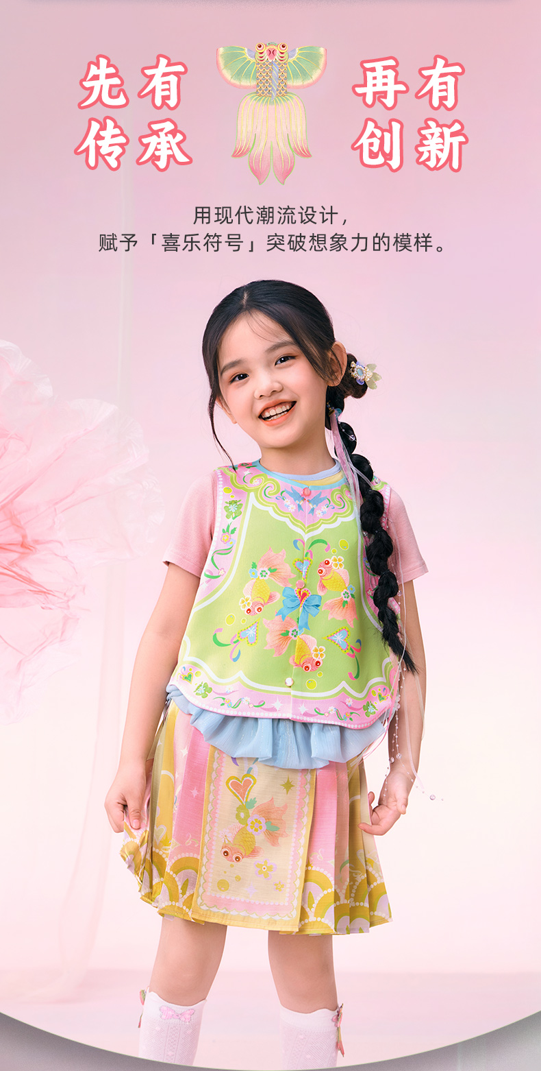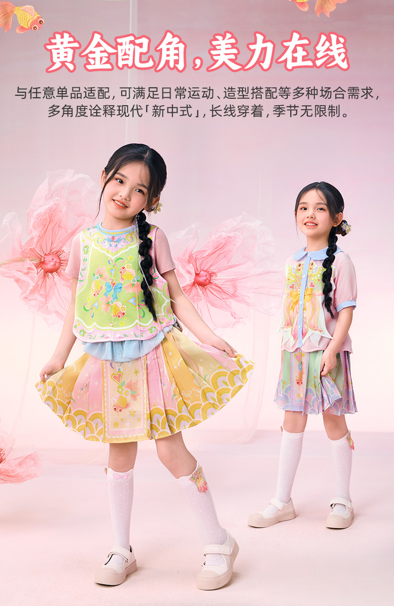 【年衣】童装2025春夏新款马甲衬衫古装金玉年年短款马面裙