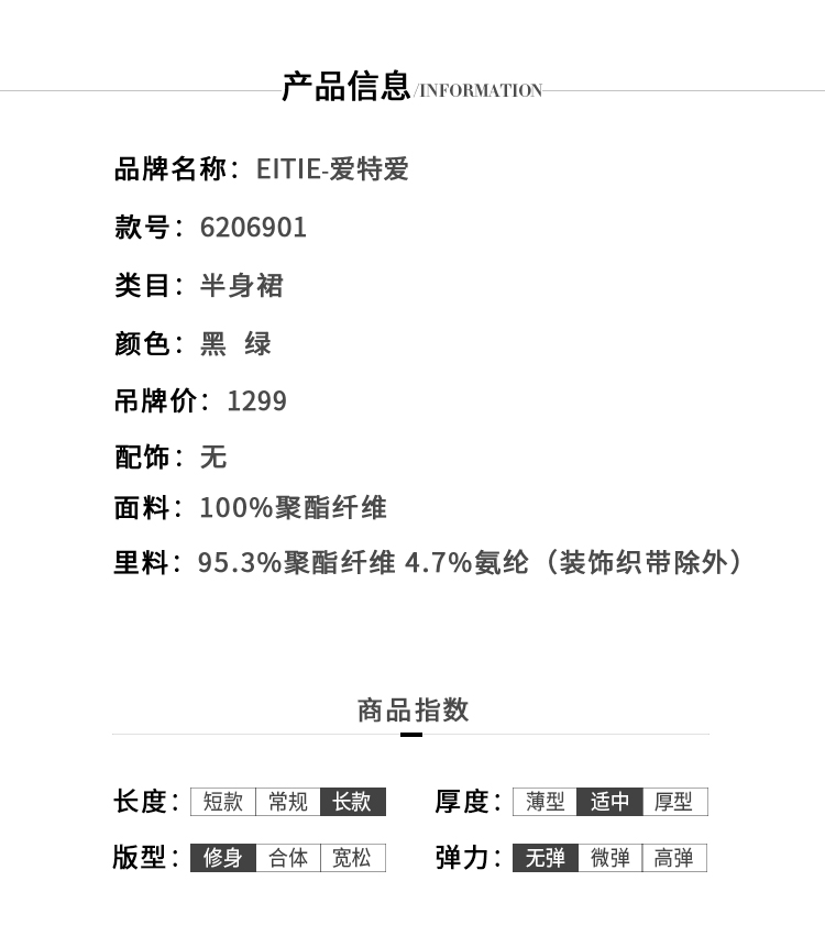 EITIE爱特爱春季新款时尚百搭通勤显瘦垂感伞裙A字半身裙女裙A2206905