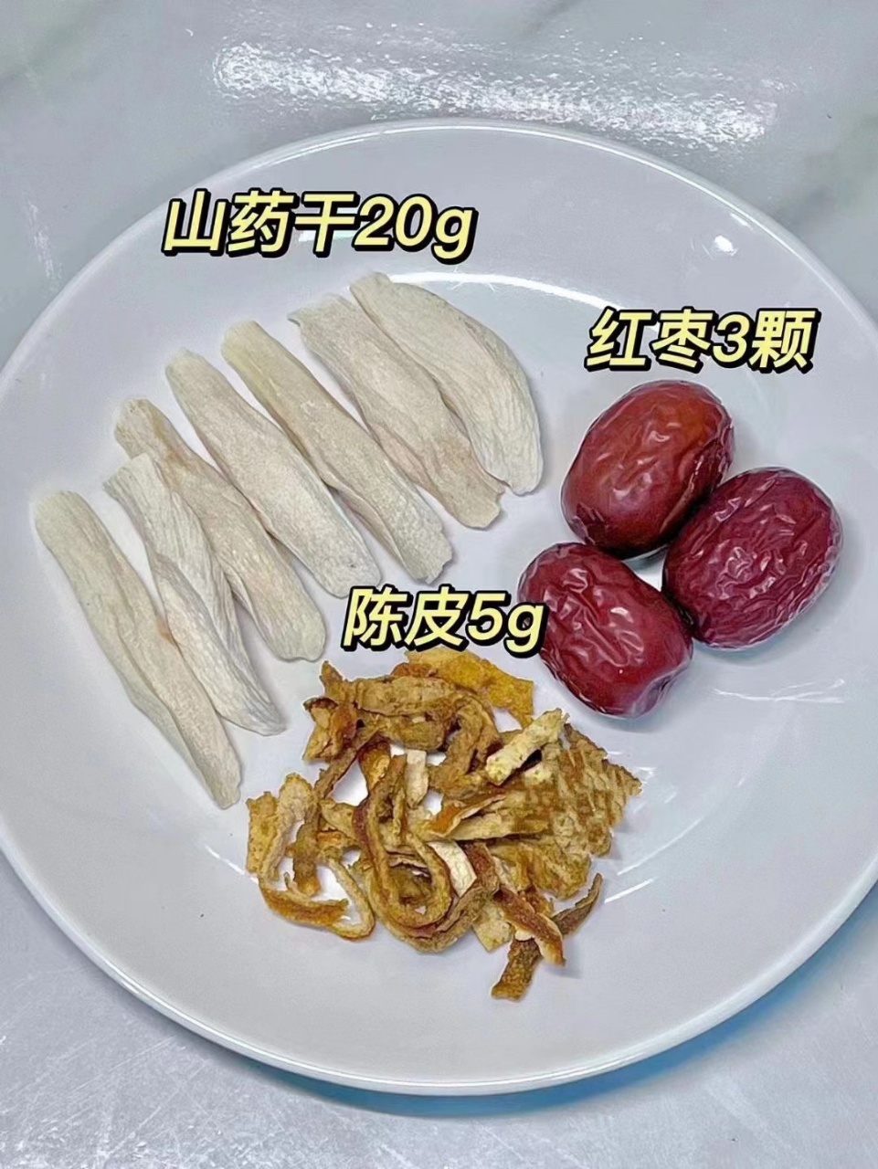 3岁以上:怀山药7-8片,苹果半个,山楂干4片,5克枣干,800ml山泉水,煮30分钟!