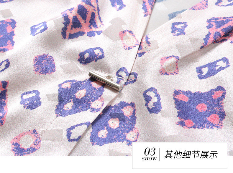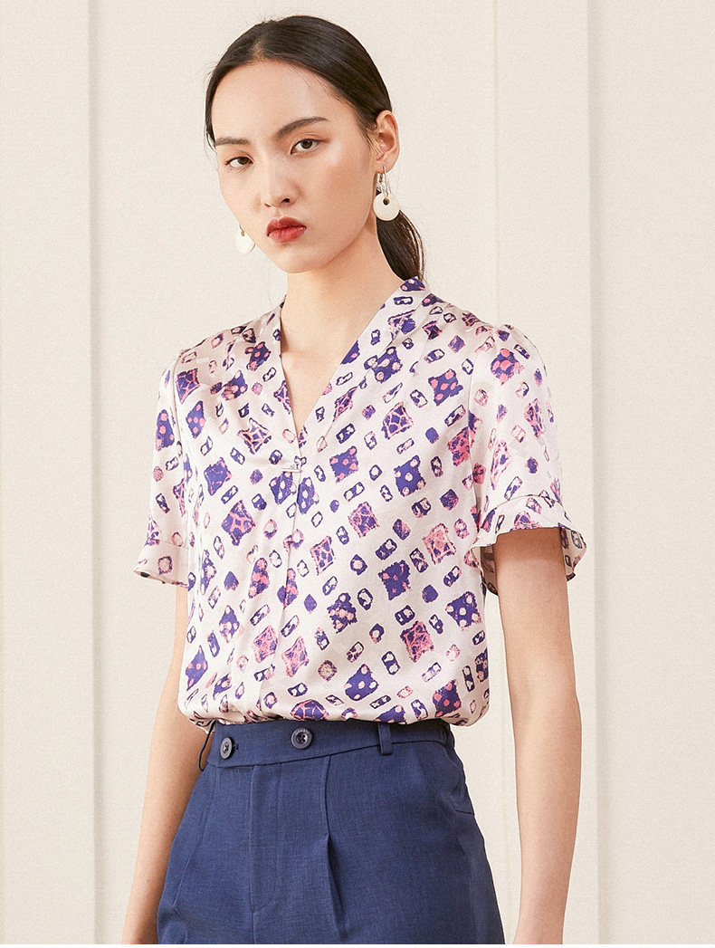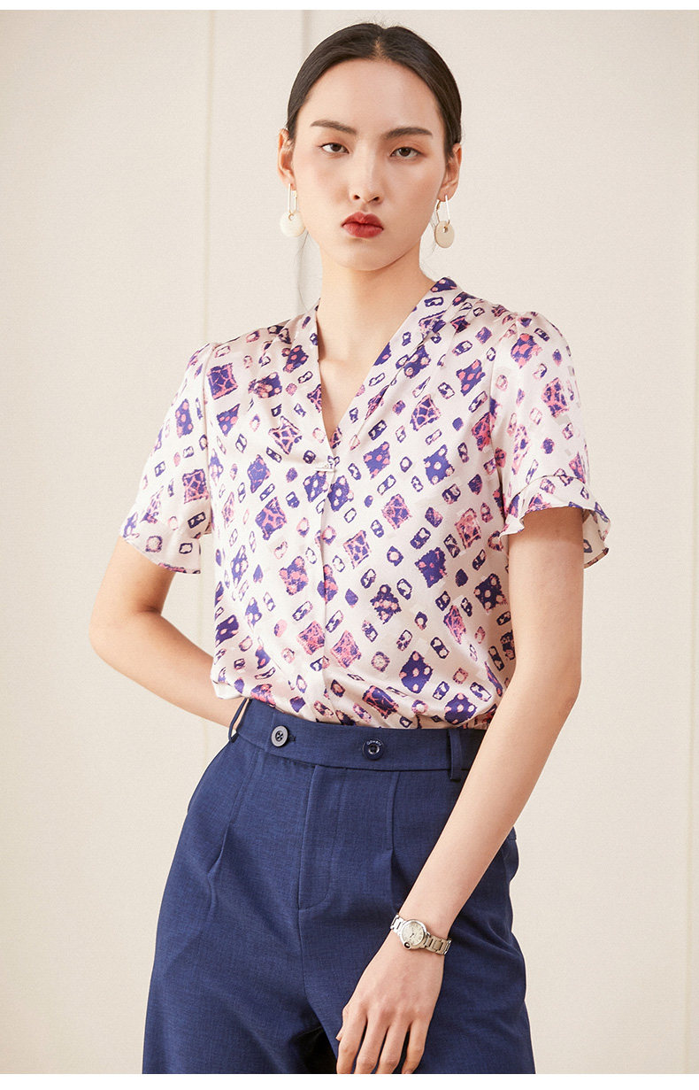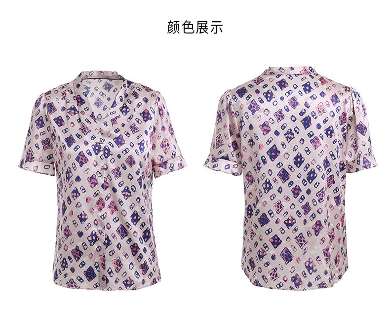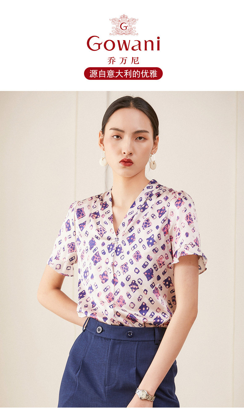 乔万尼夏季新款时尚印花V领桑蚕丝真丝衬衫女宽松气质上衣ES2C148