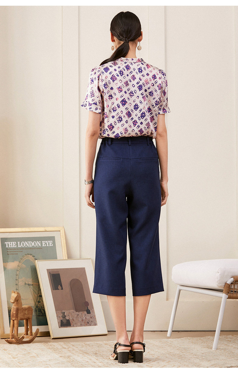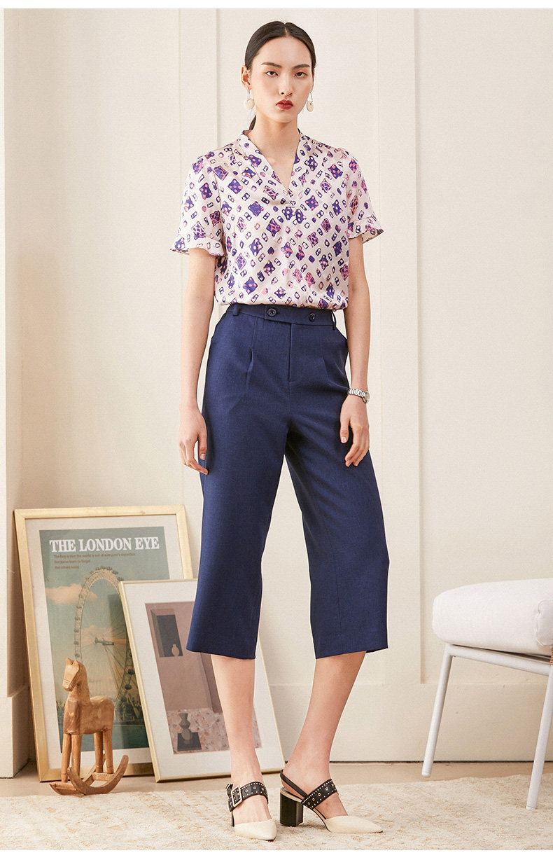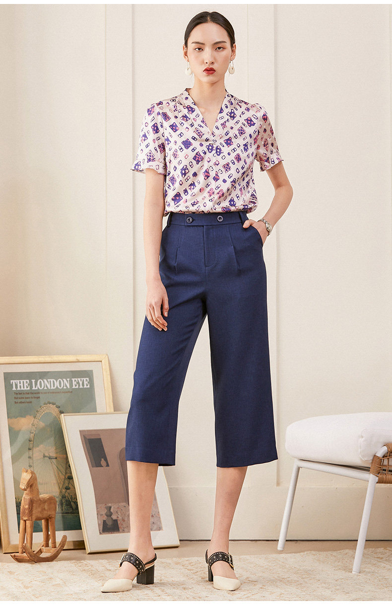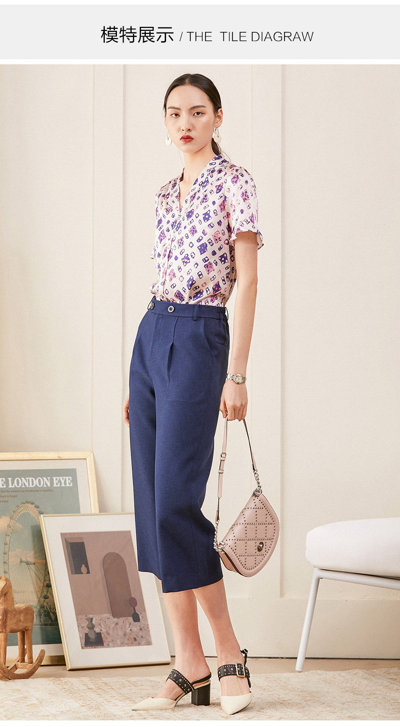乔万尼夏季新款时尚印花V领桑蚕丝真丝衬衫女宽松气质上衣ES2C148