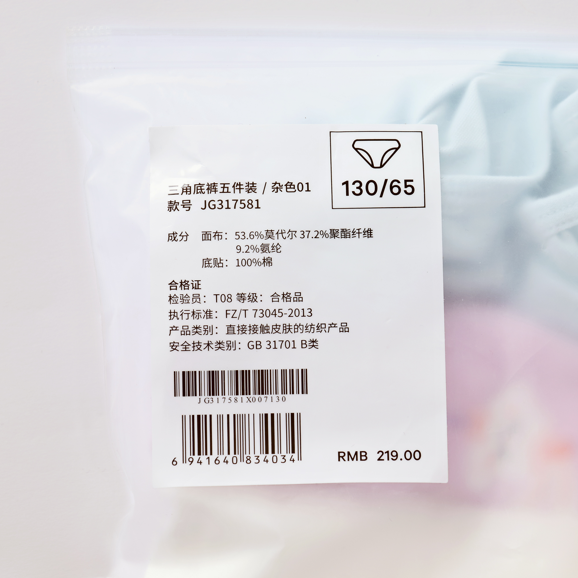 【实体店同款】女童三角底裤五件装2023春季新款安奈儿童装JG317581