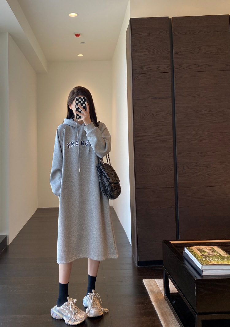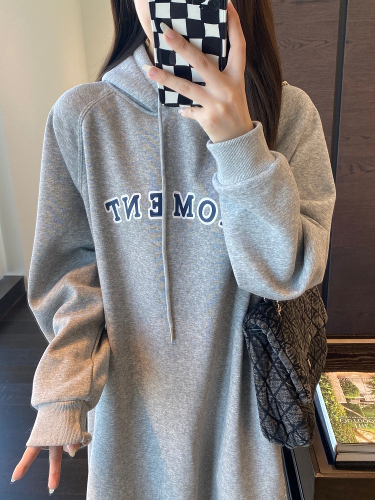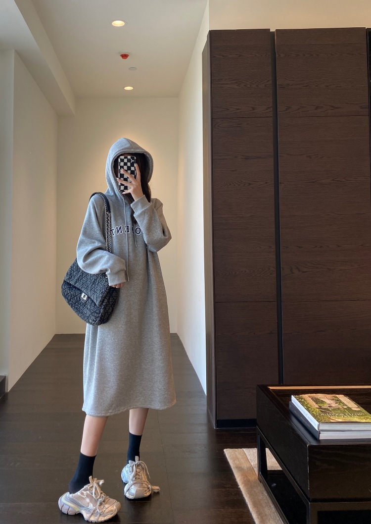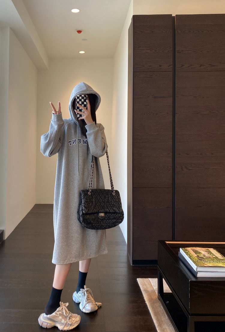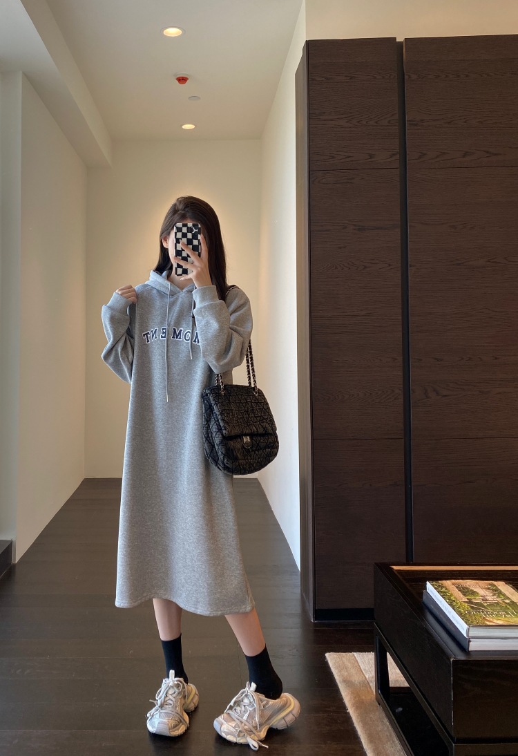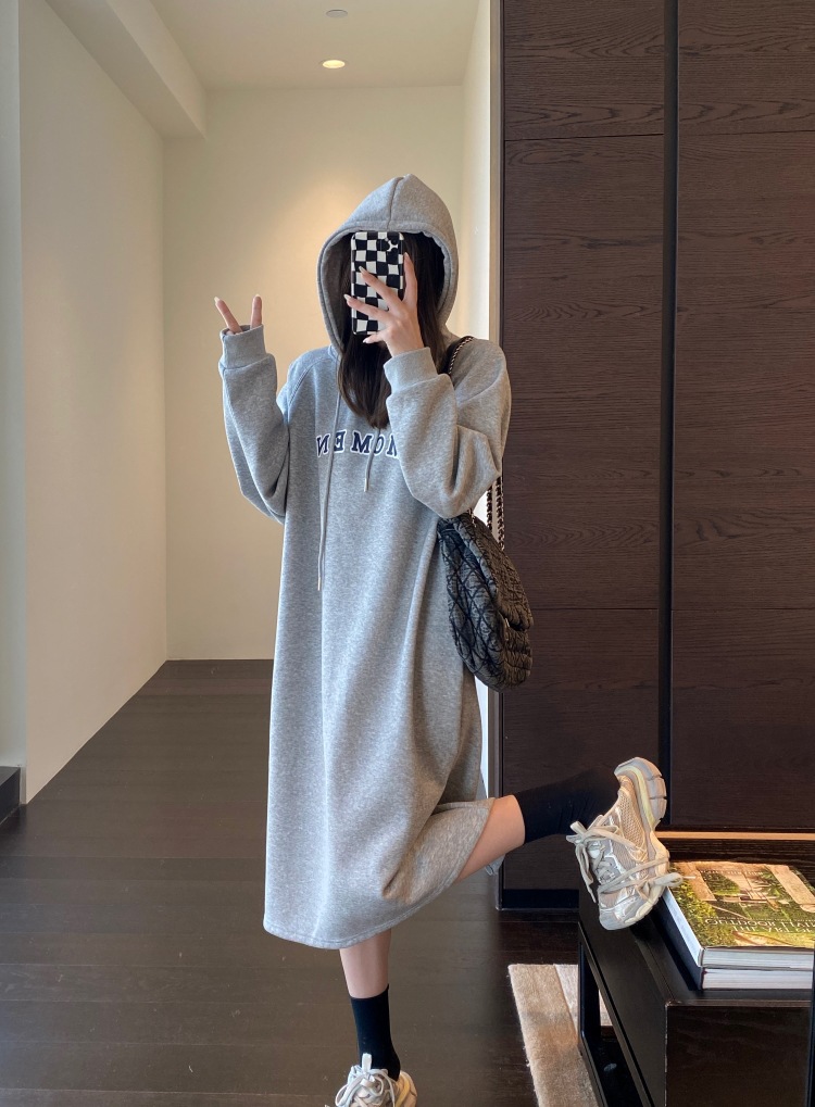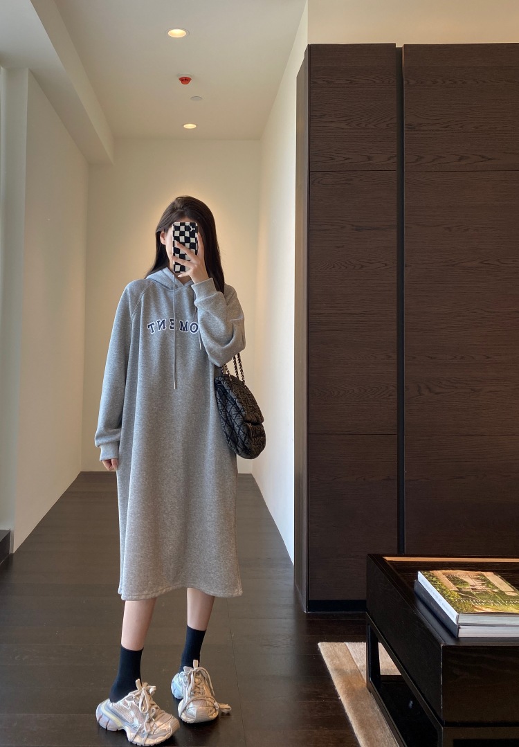 美式加绒连帽卫衣裙