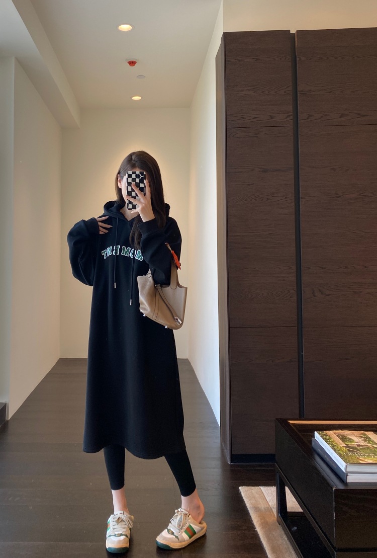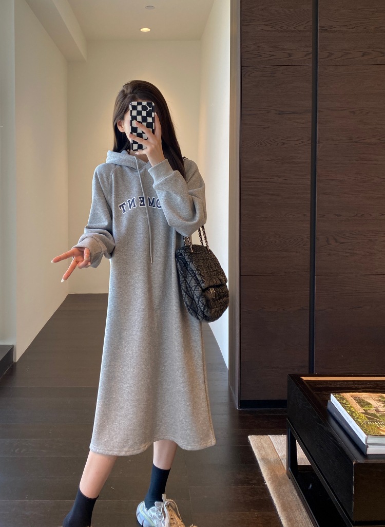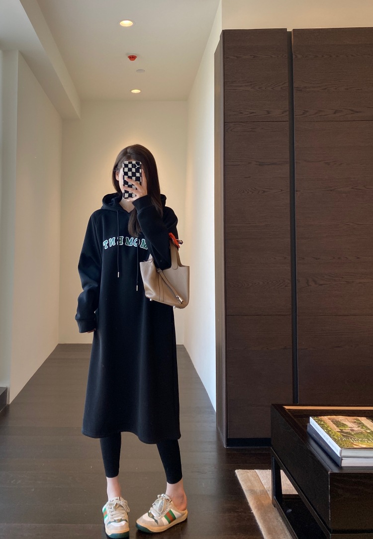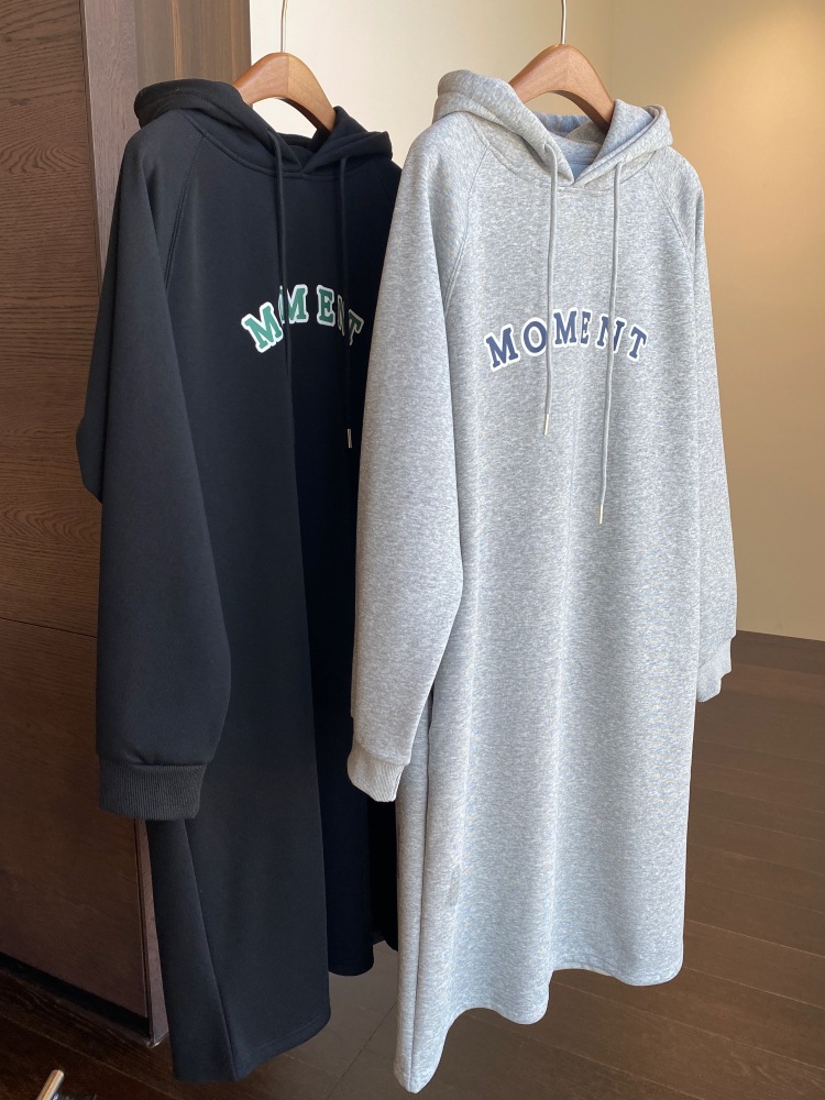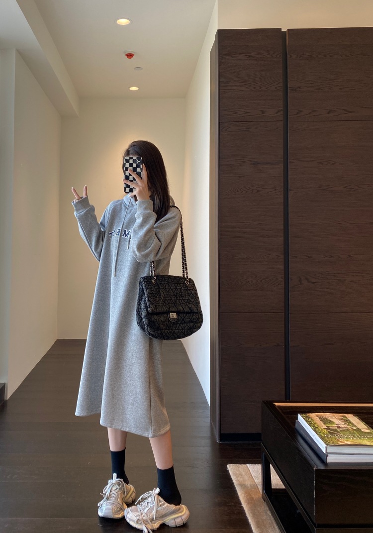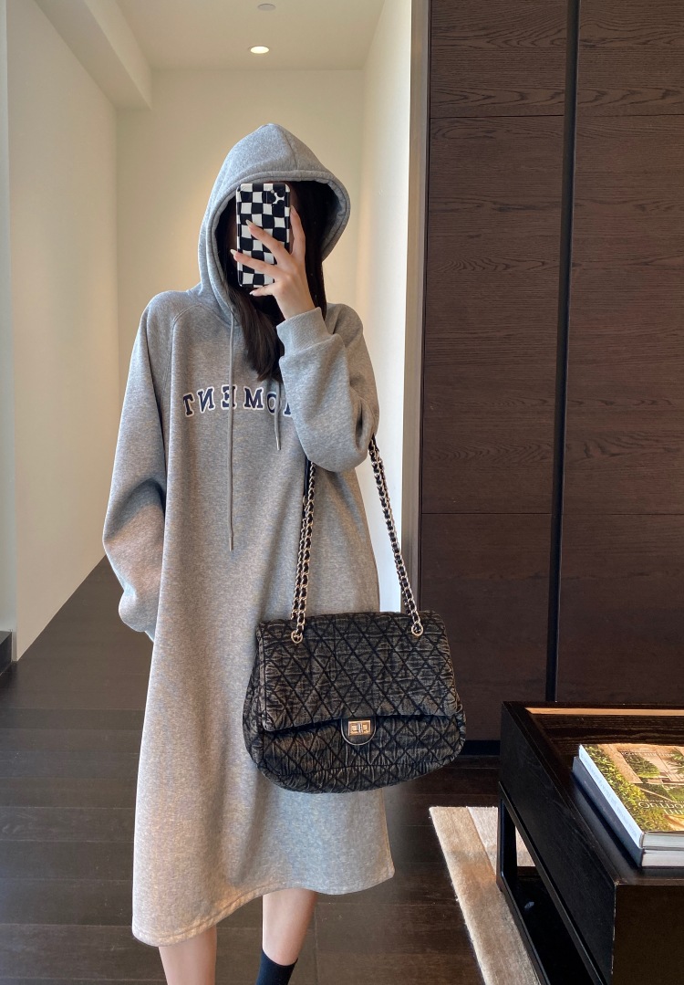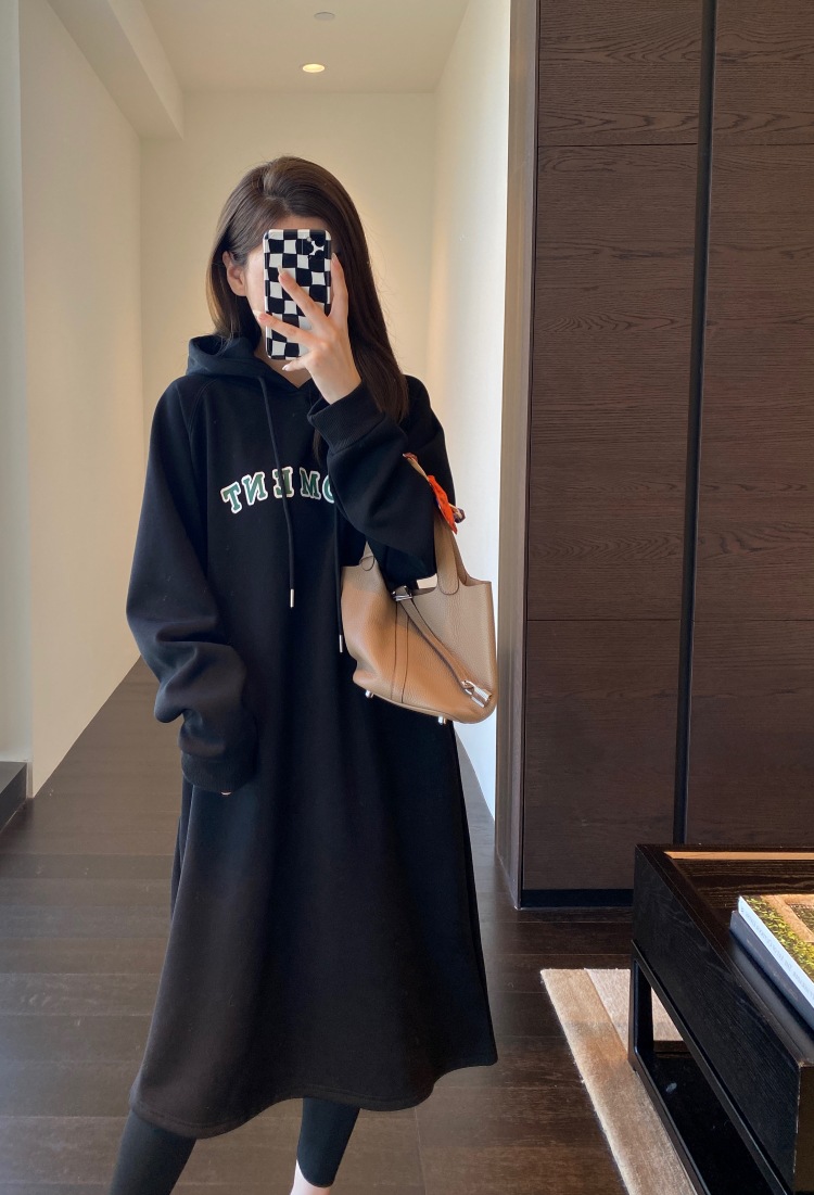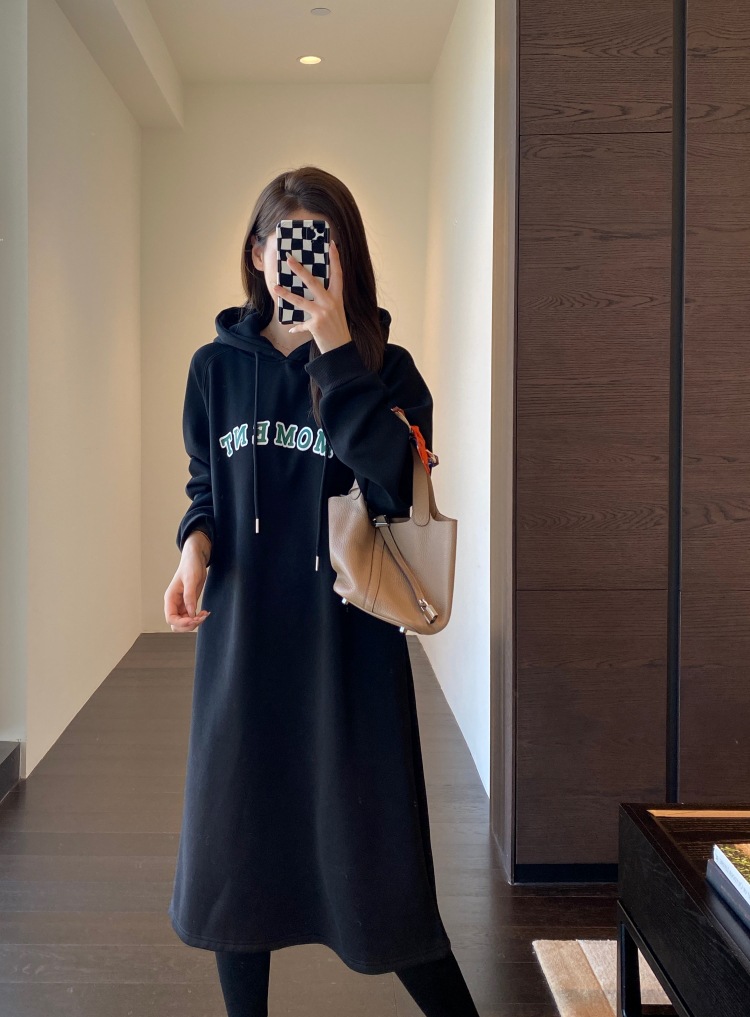 美式加绒连帽卫衣裙