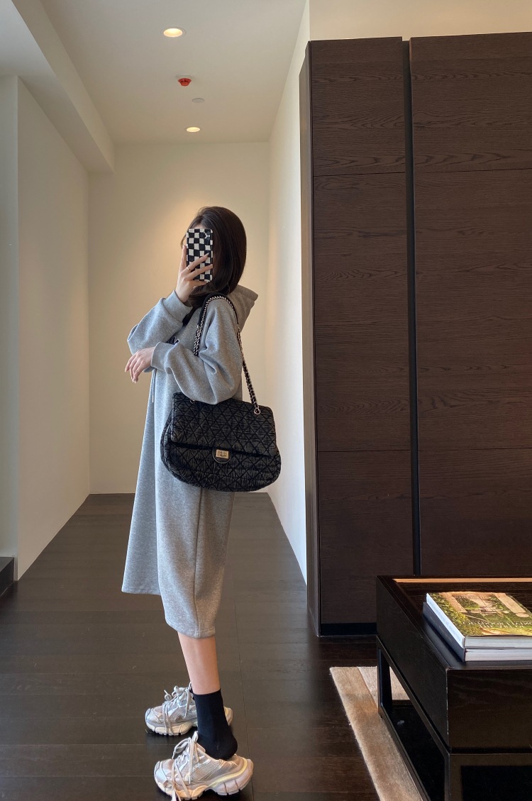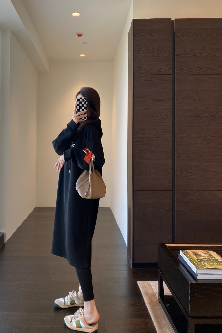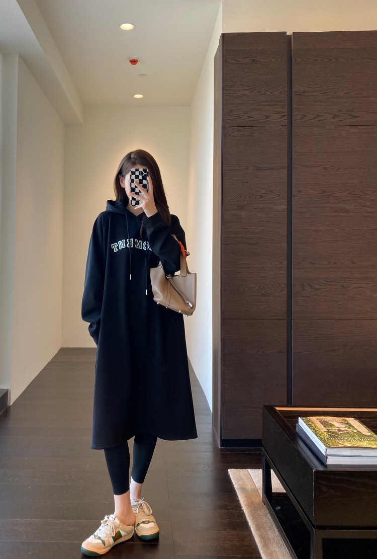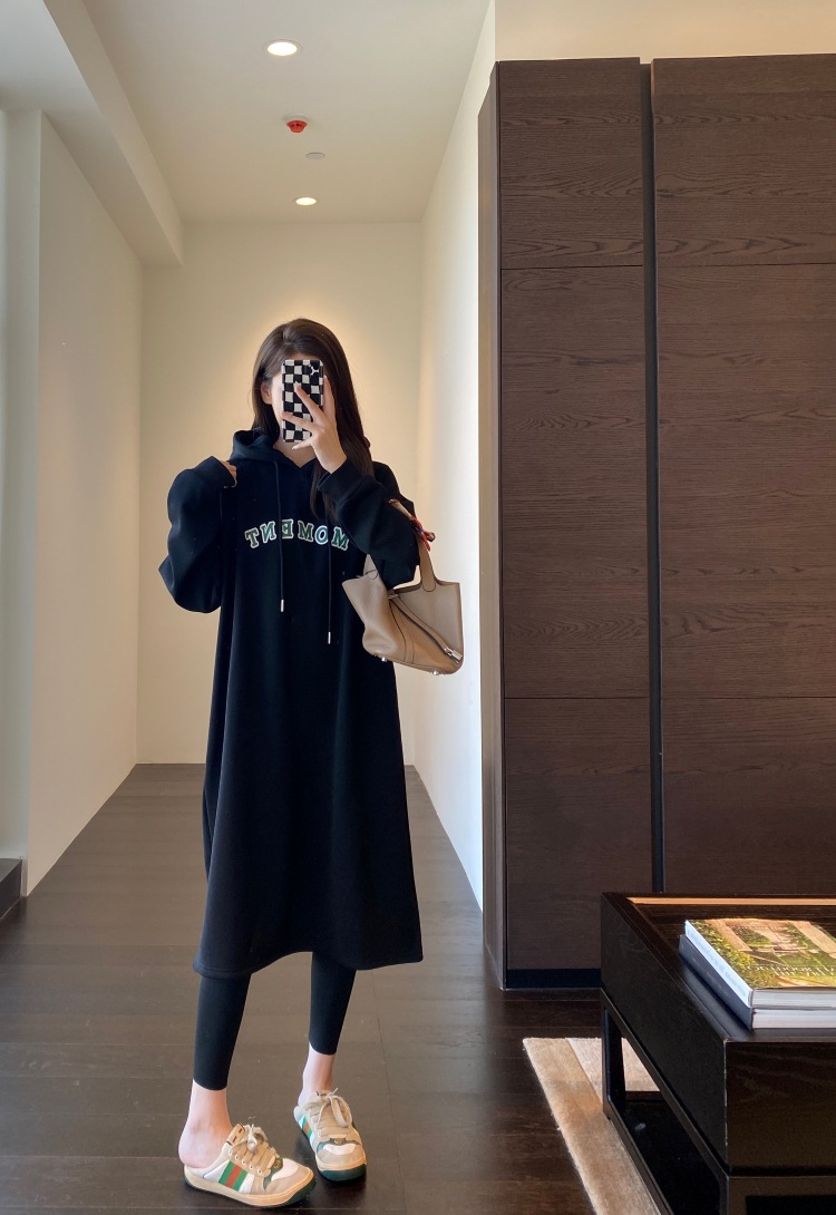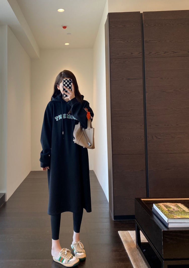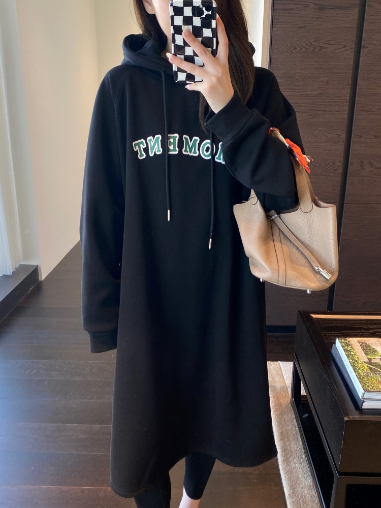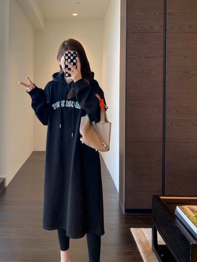 美式加绒连帽卫衣裙