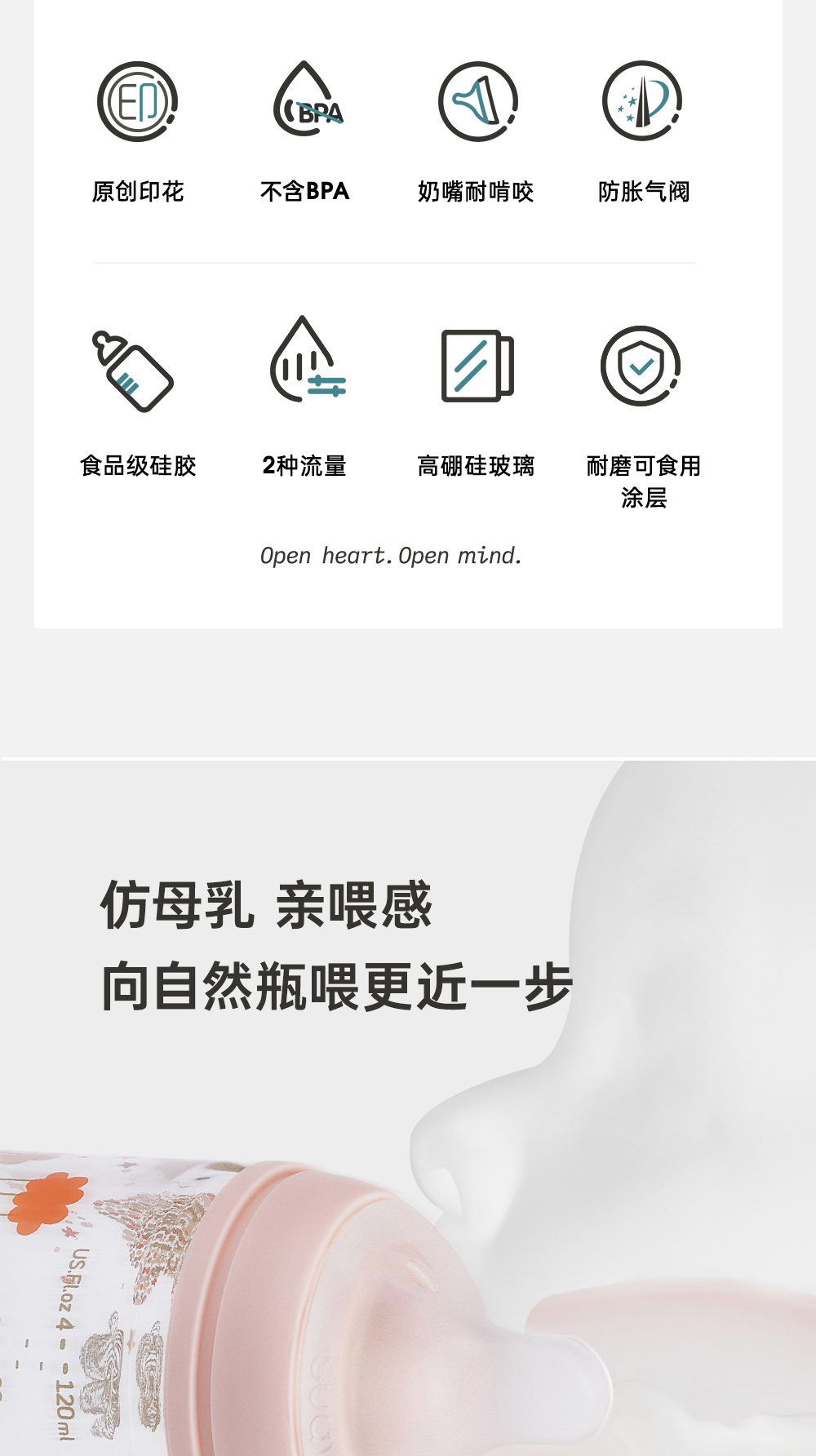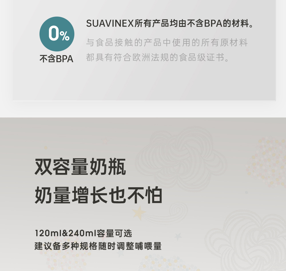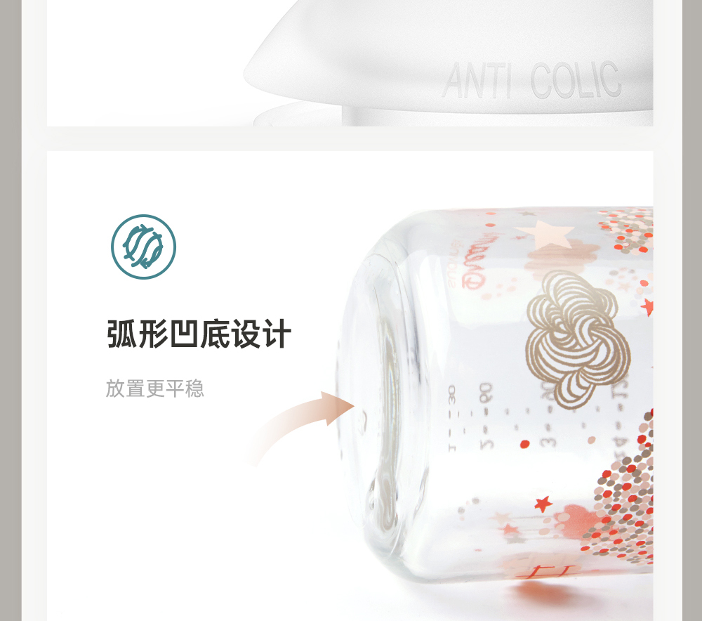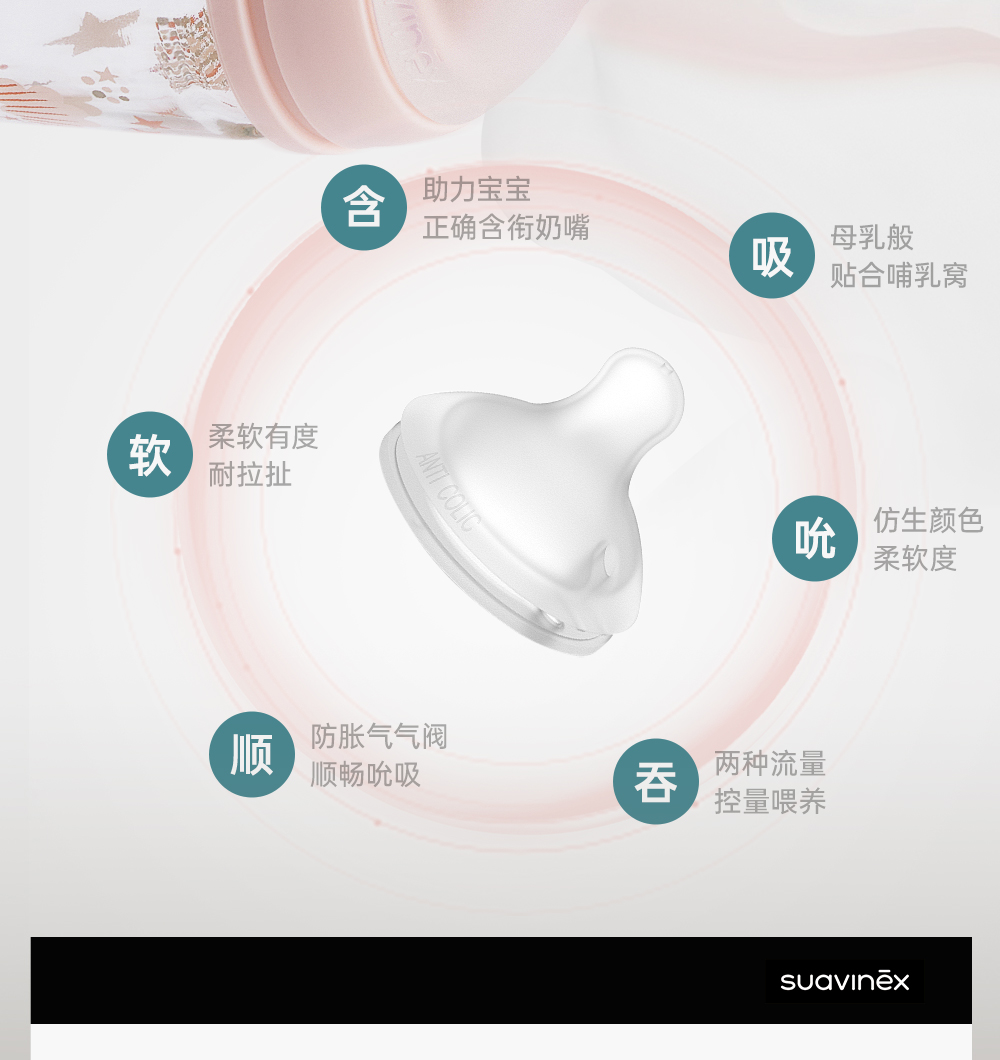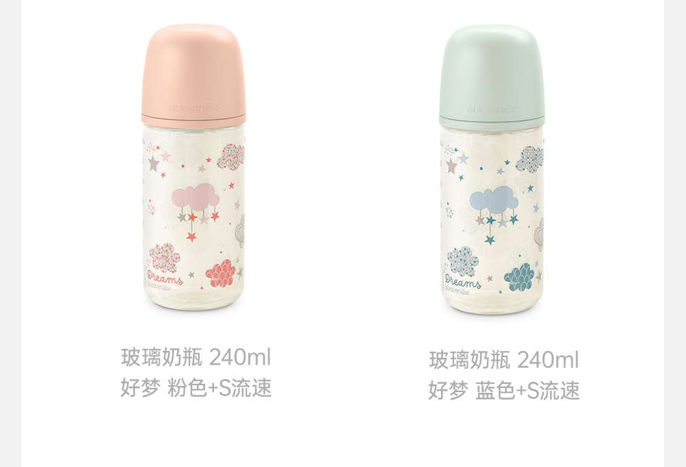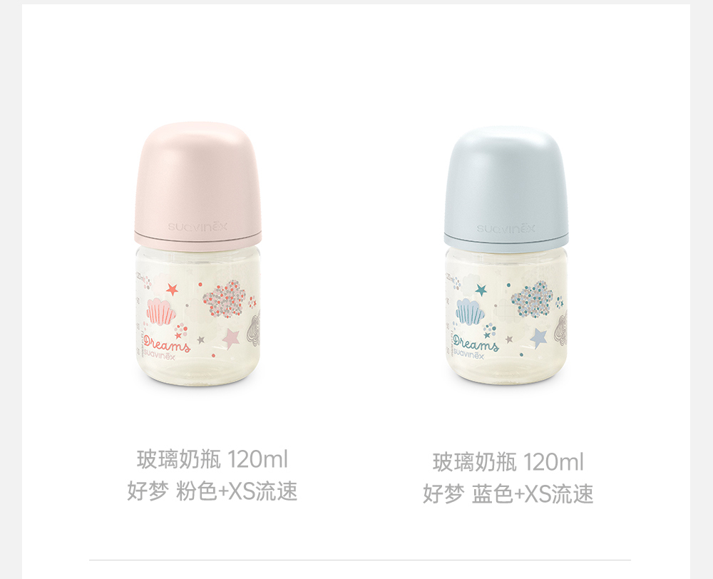 suavinex苏维妮进口Dreams经典印花玻璃奶瓶宝宝防胀气宽口仿母乳