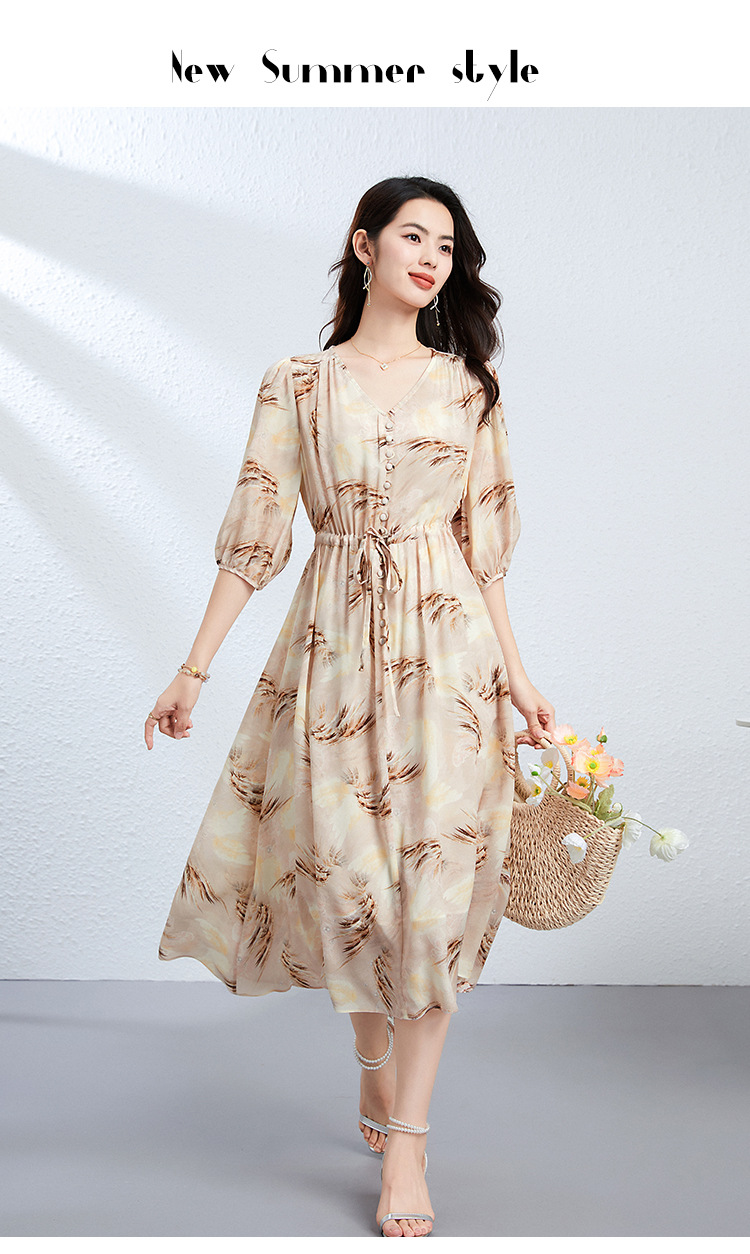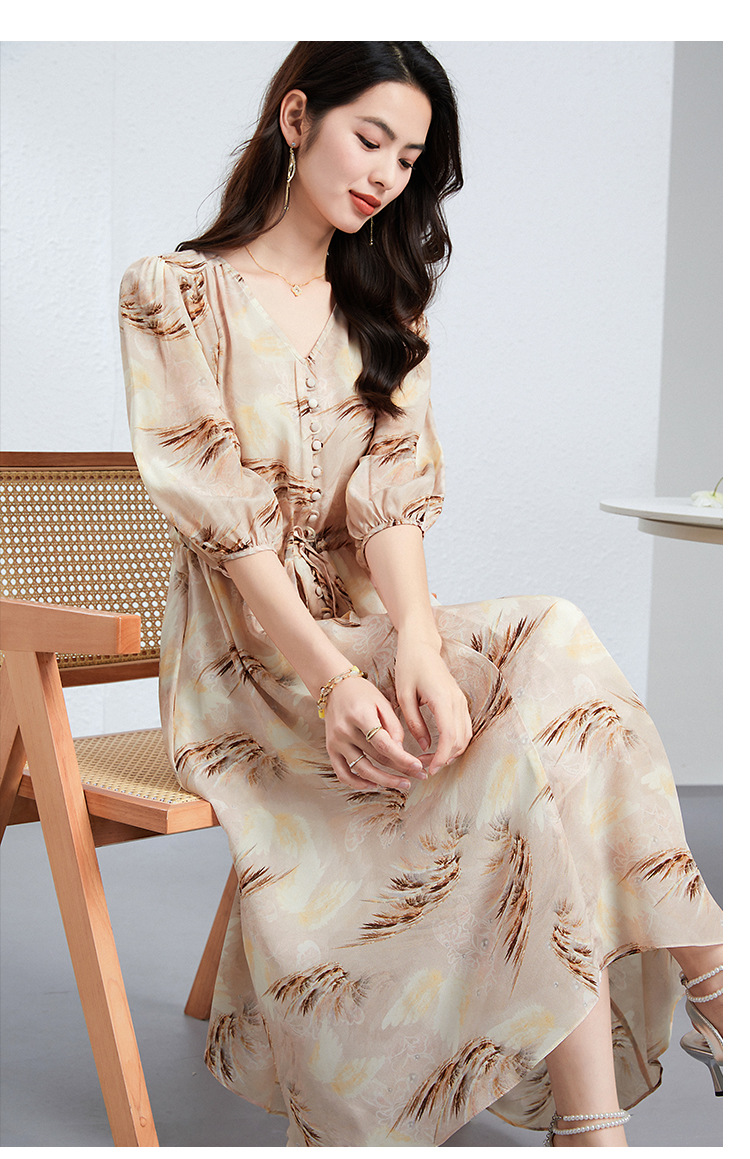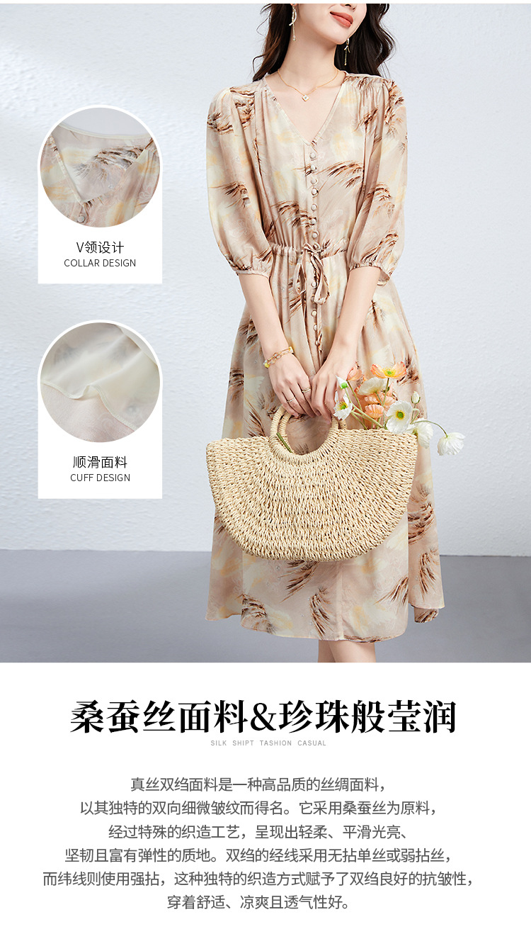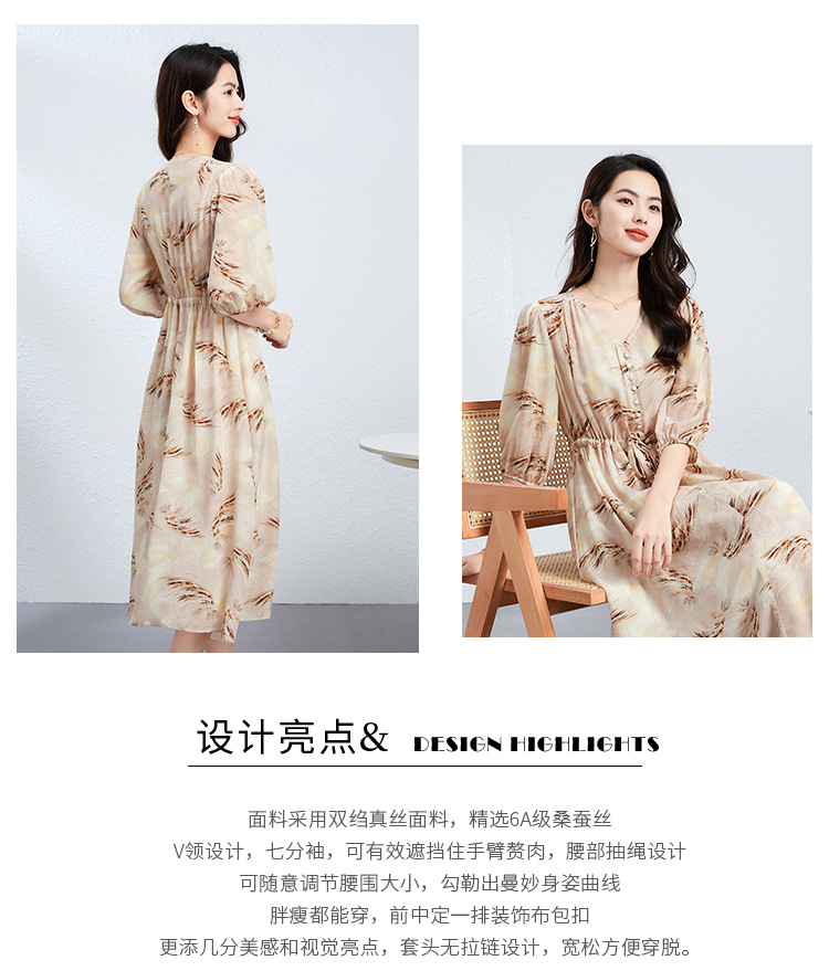 「高货kbnq」全新升级【铂金会员514/天猫689/差价175】(05210)洛诗琳真丝印花连衣裙2025夏季新款系带修身长款真丝裙