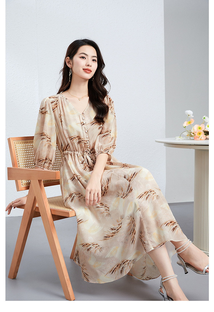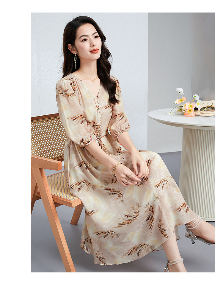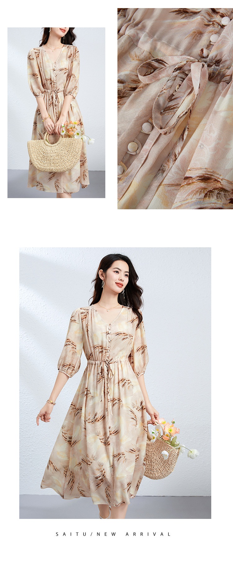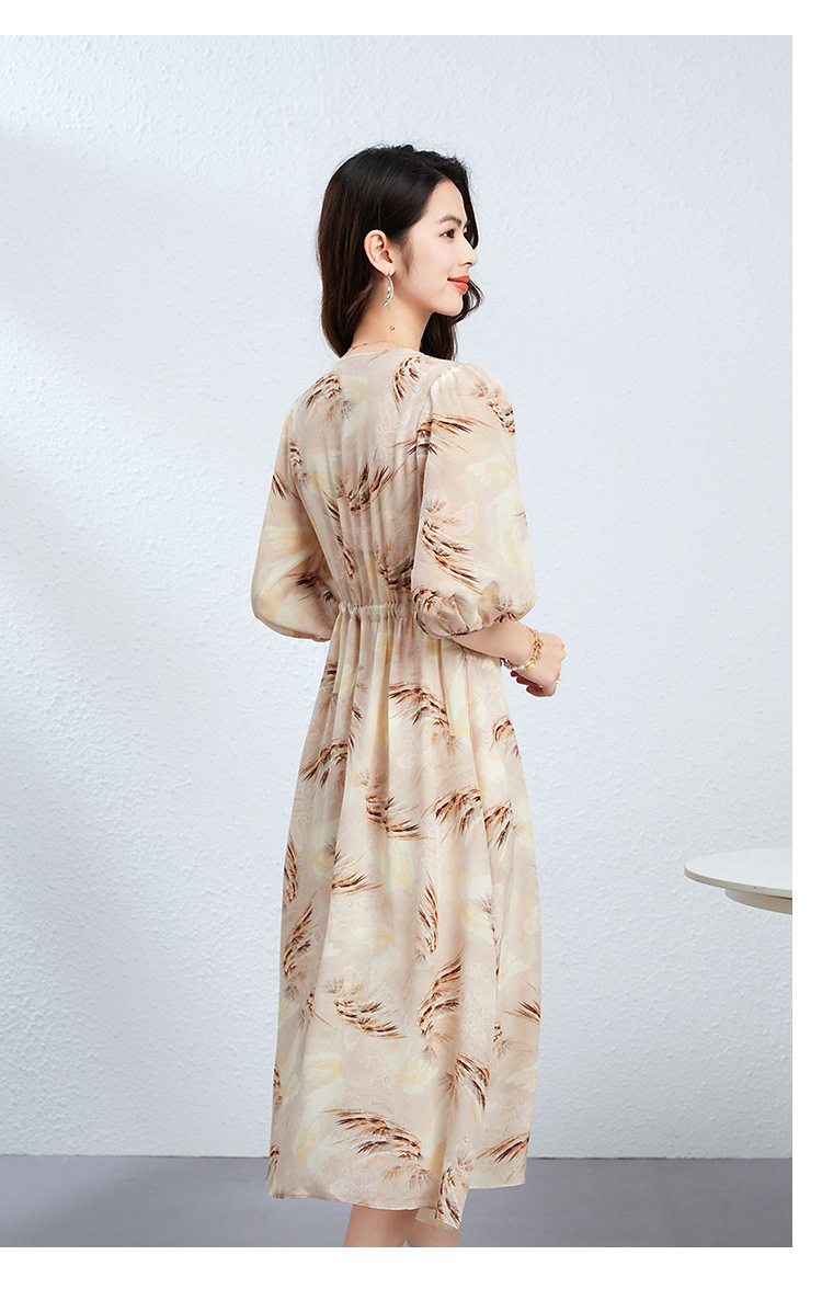 「高货kbnq」全新升级【铂金会员514/天猫689/差价175】(05210)洛诗琳真丝印花连衣裙2025夏季新款系带修身长款真丝裙
