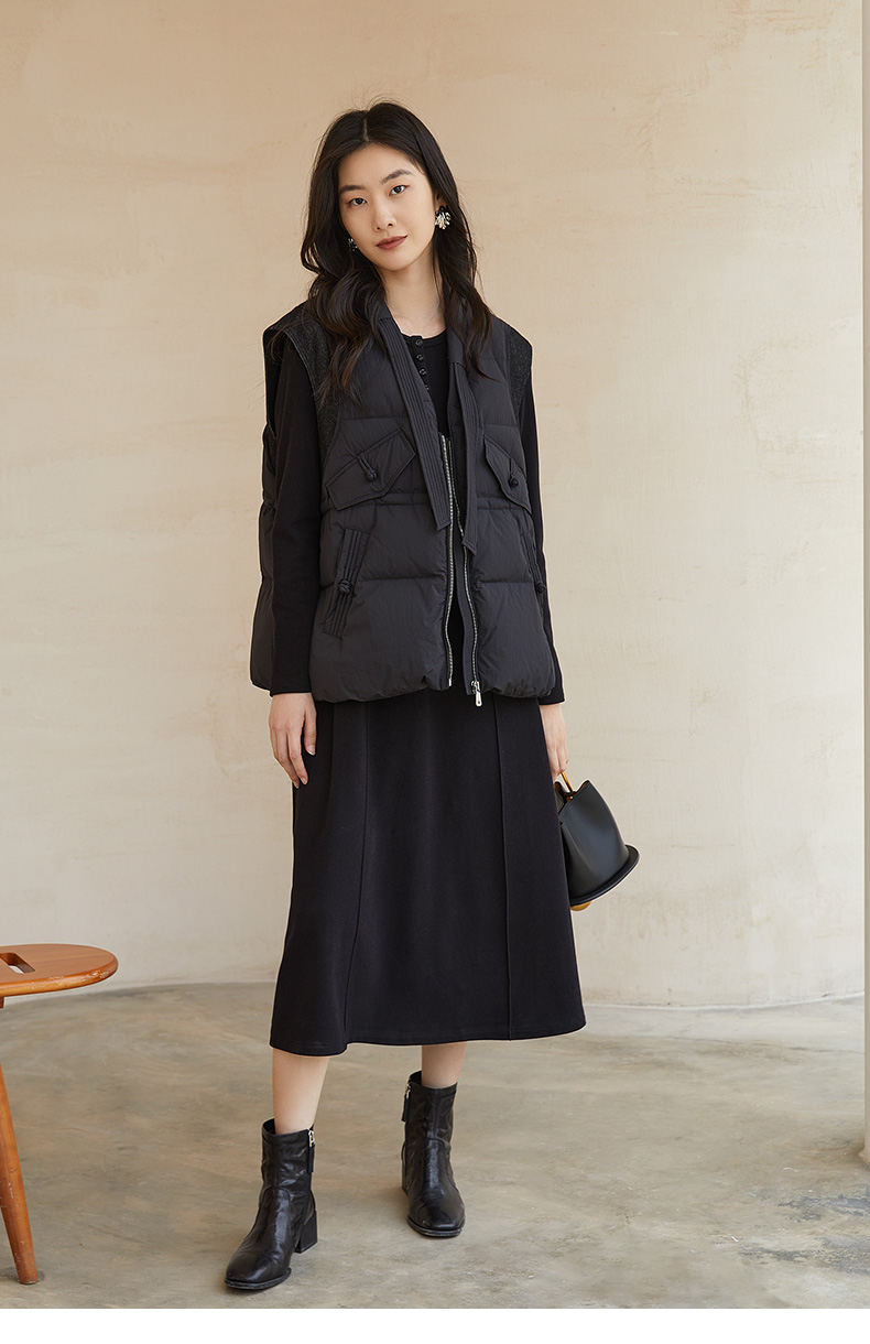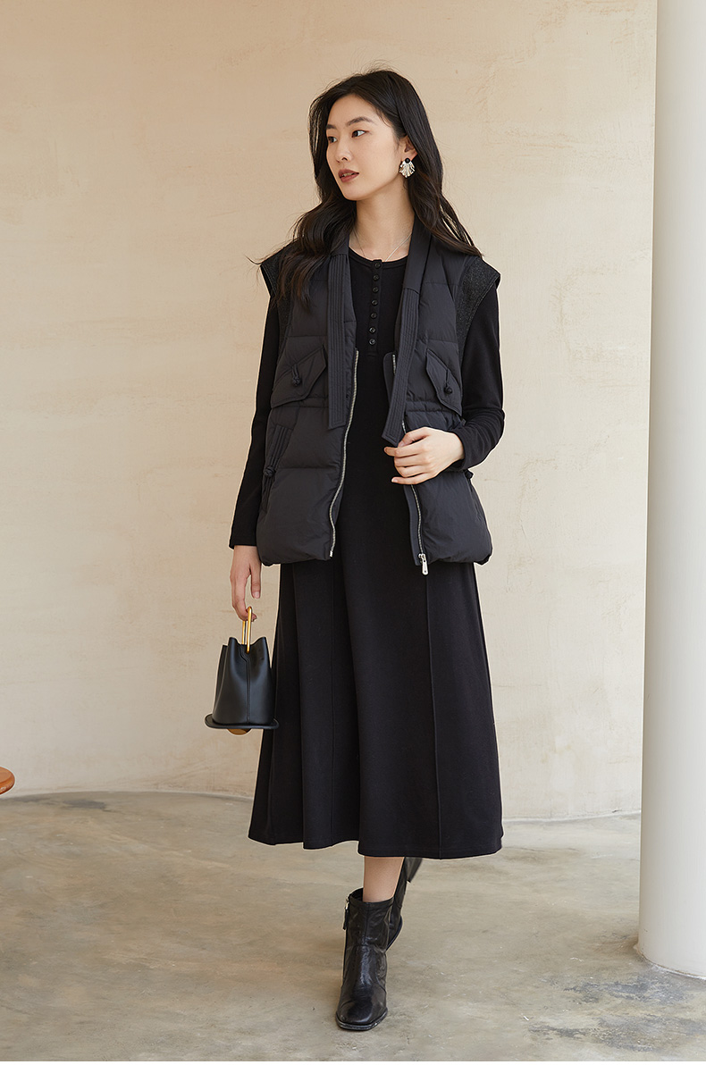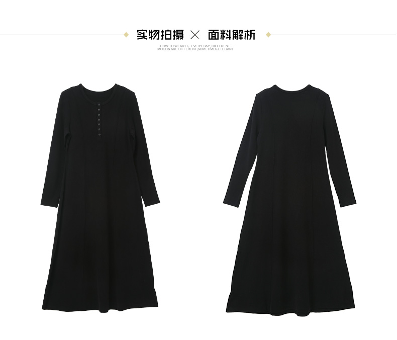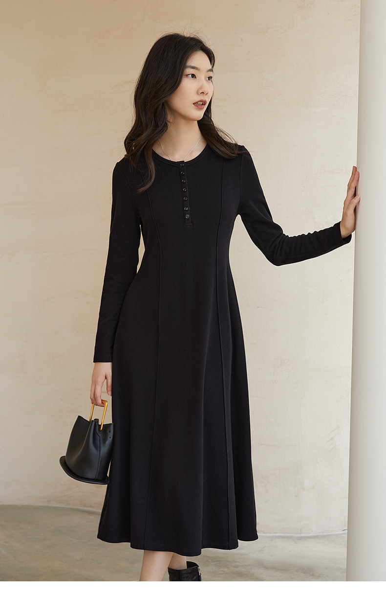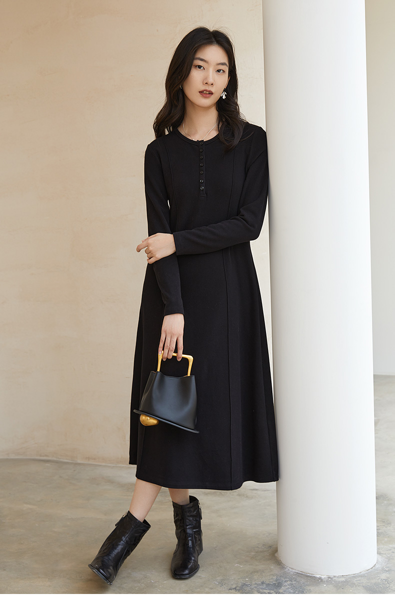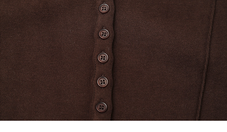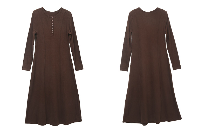 深棕色亨利领针织连衣裙,排扣设计 + 修身版型 + 软糯质感,承包你冬日通勤与约会的温柔气质与保暖穿搭