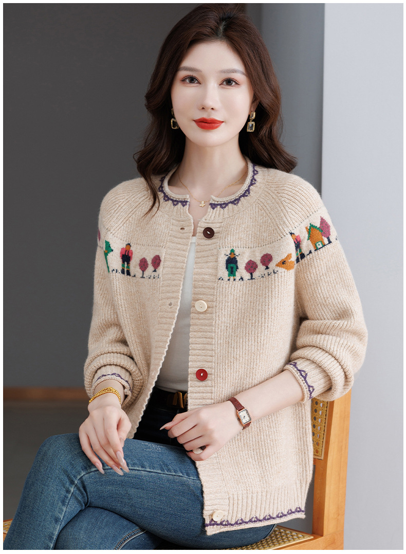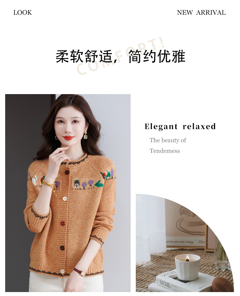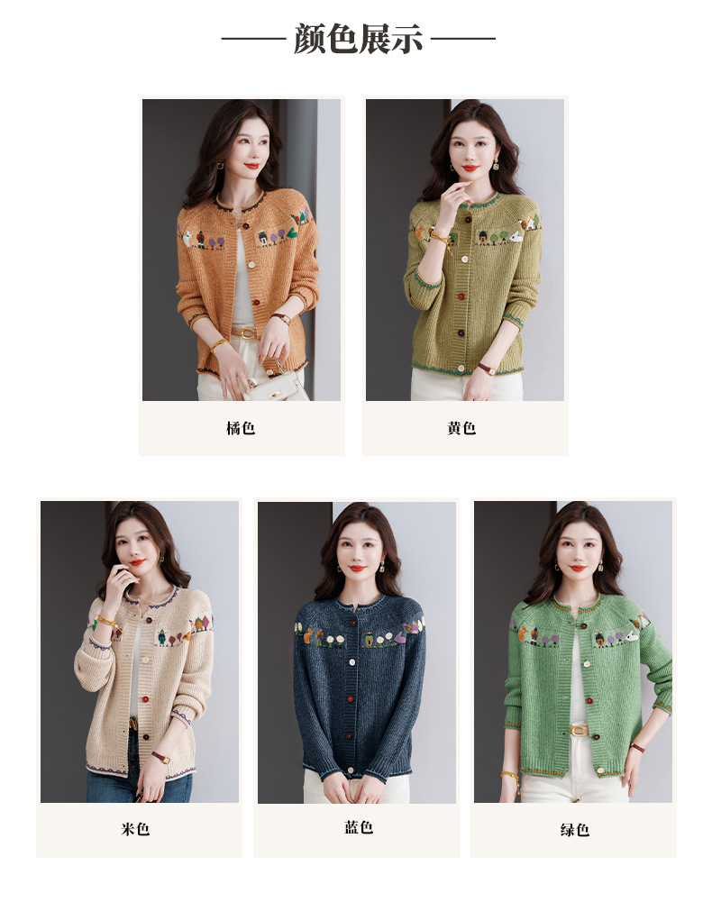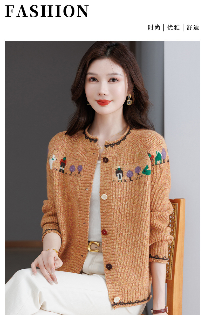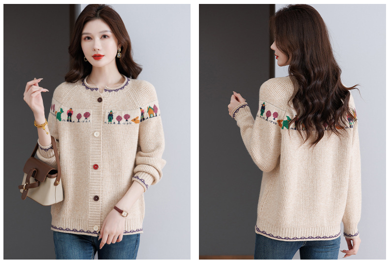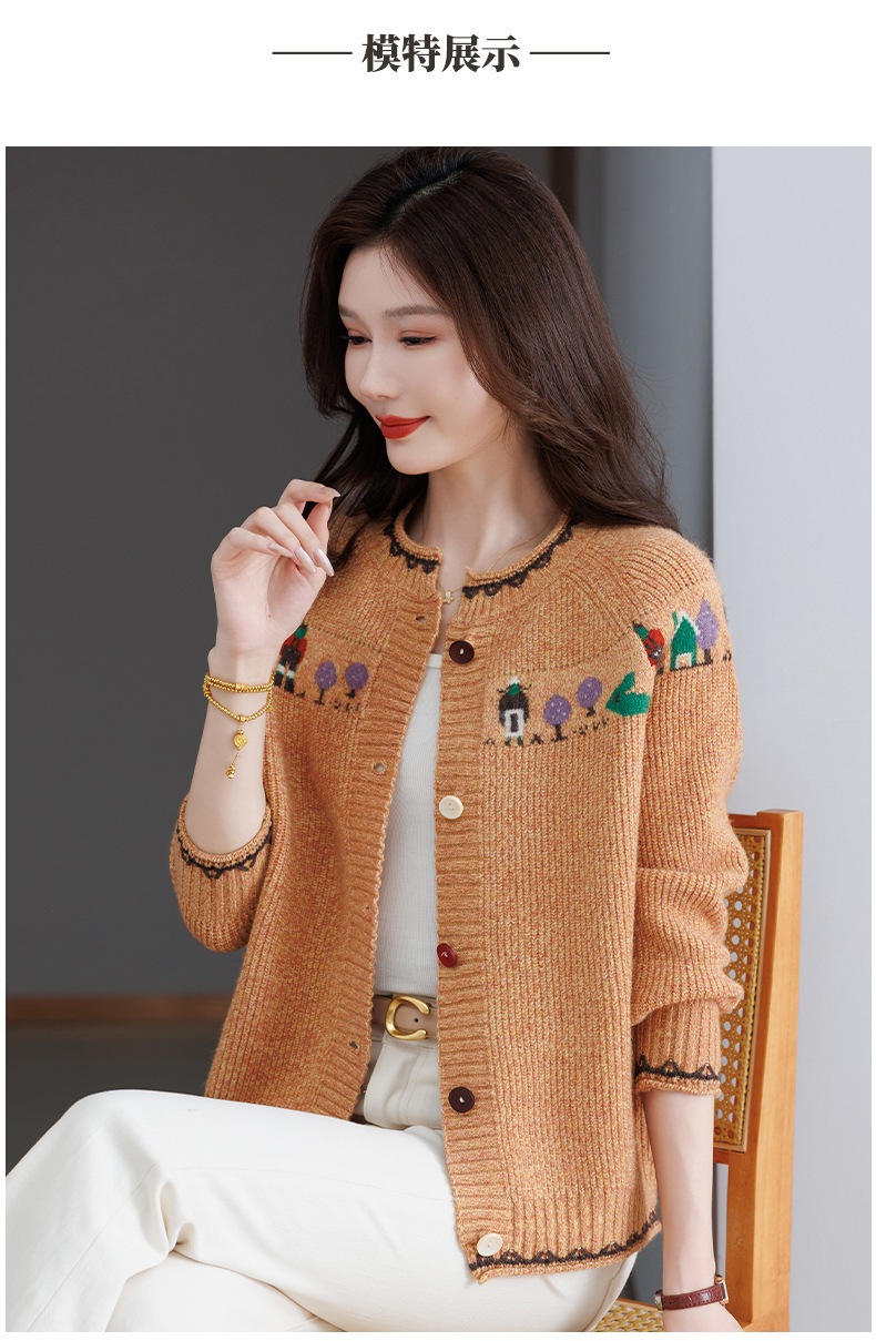 CC-5831粗线毛衣开衫春秋外搭大码女装2025新款女士提花针织外套洋气时髦