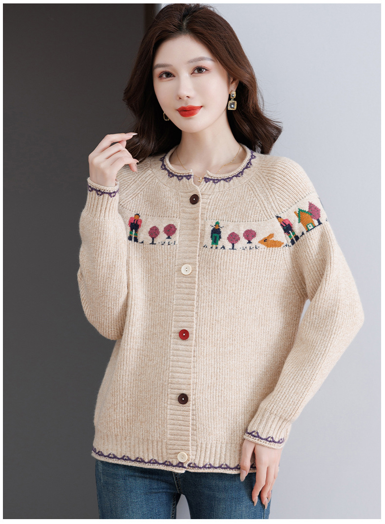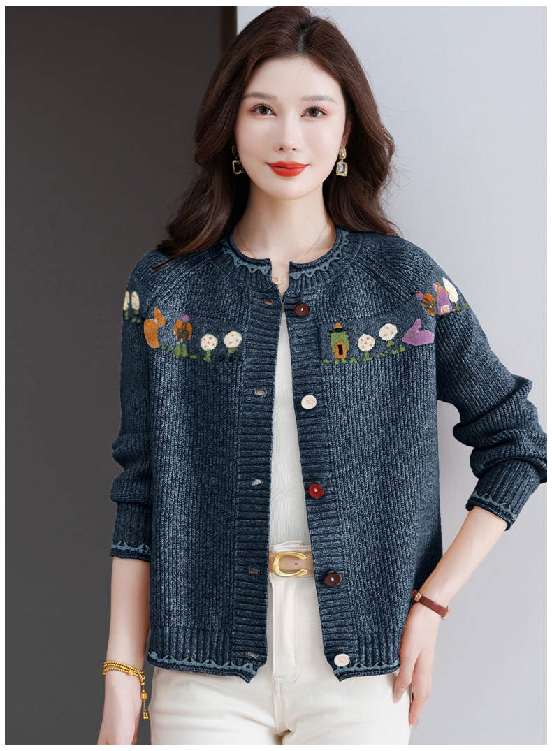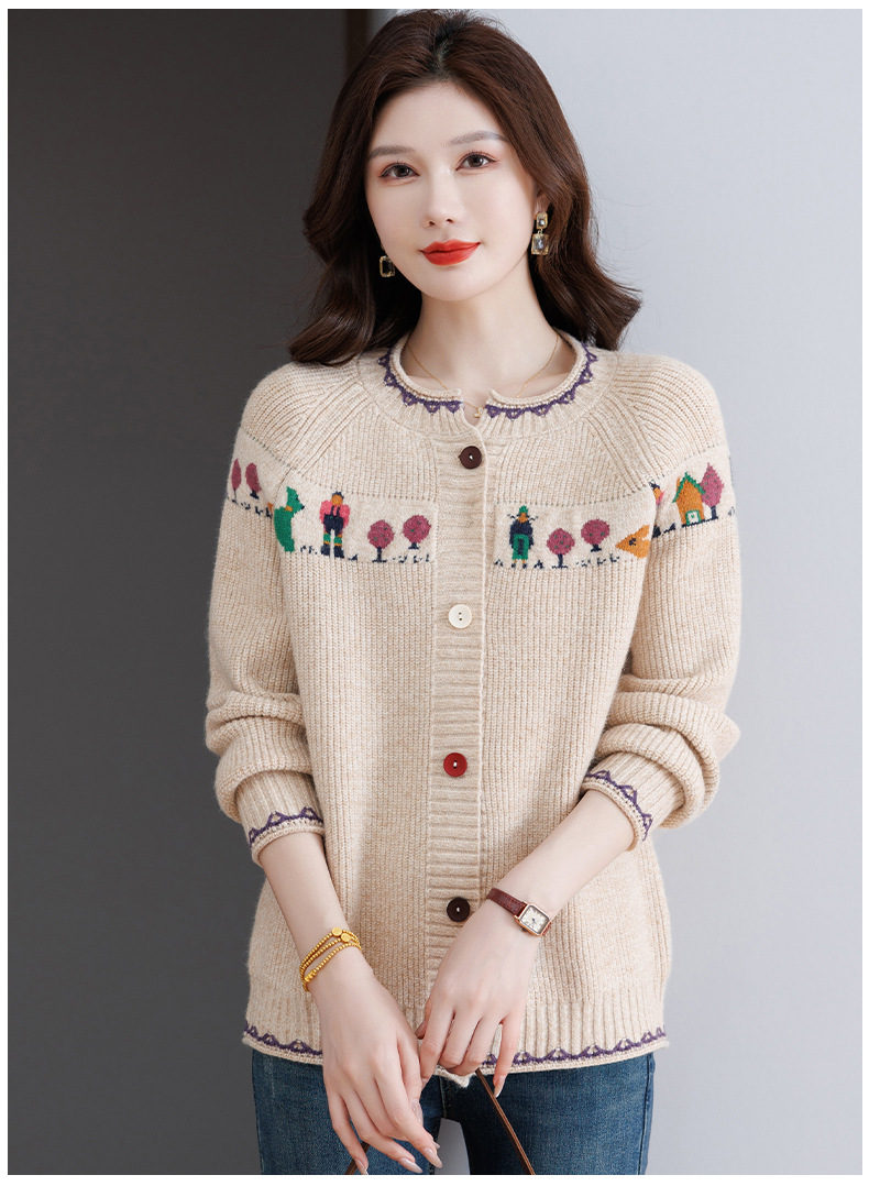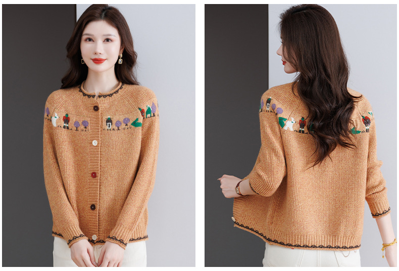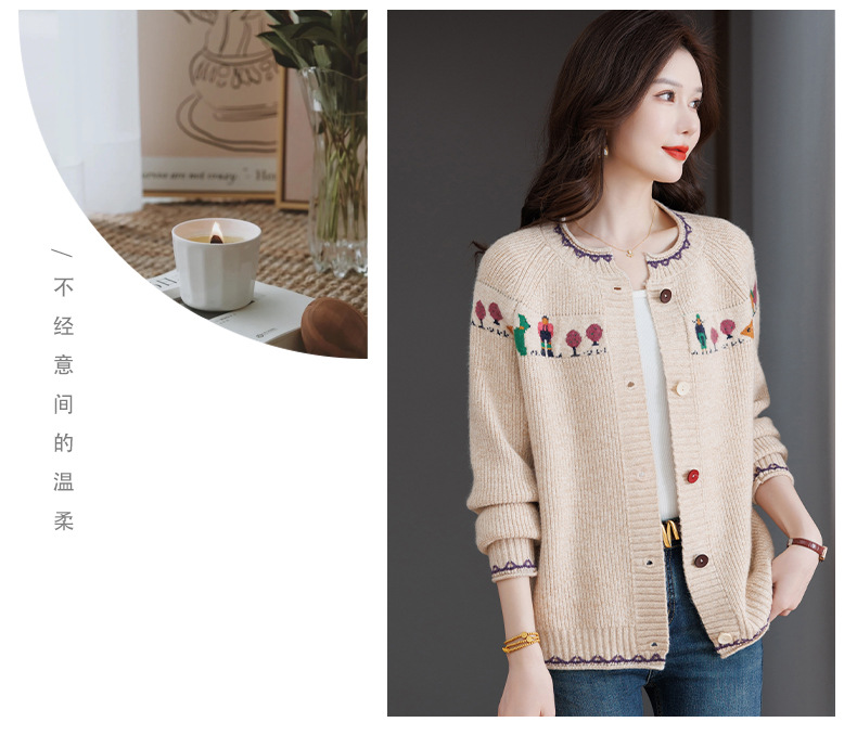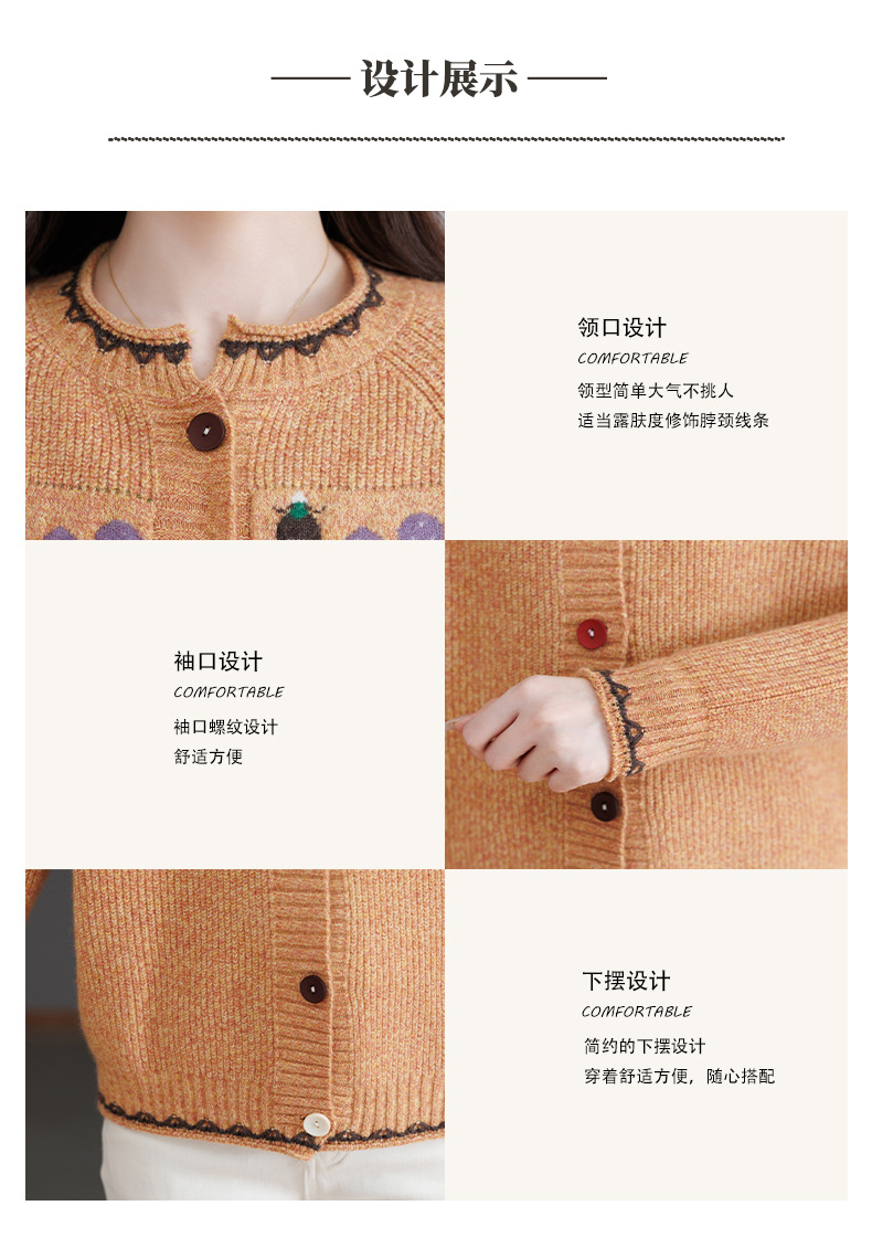 CC-5831粗线毛衣开衫春秋外搭大码女装2025新款女士提花针织外套洋气时髦