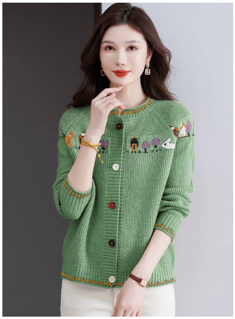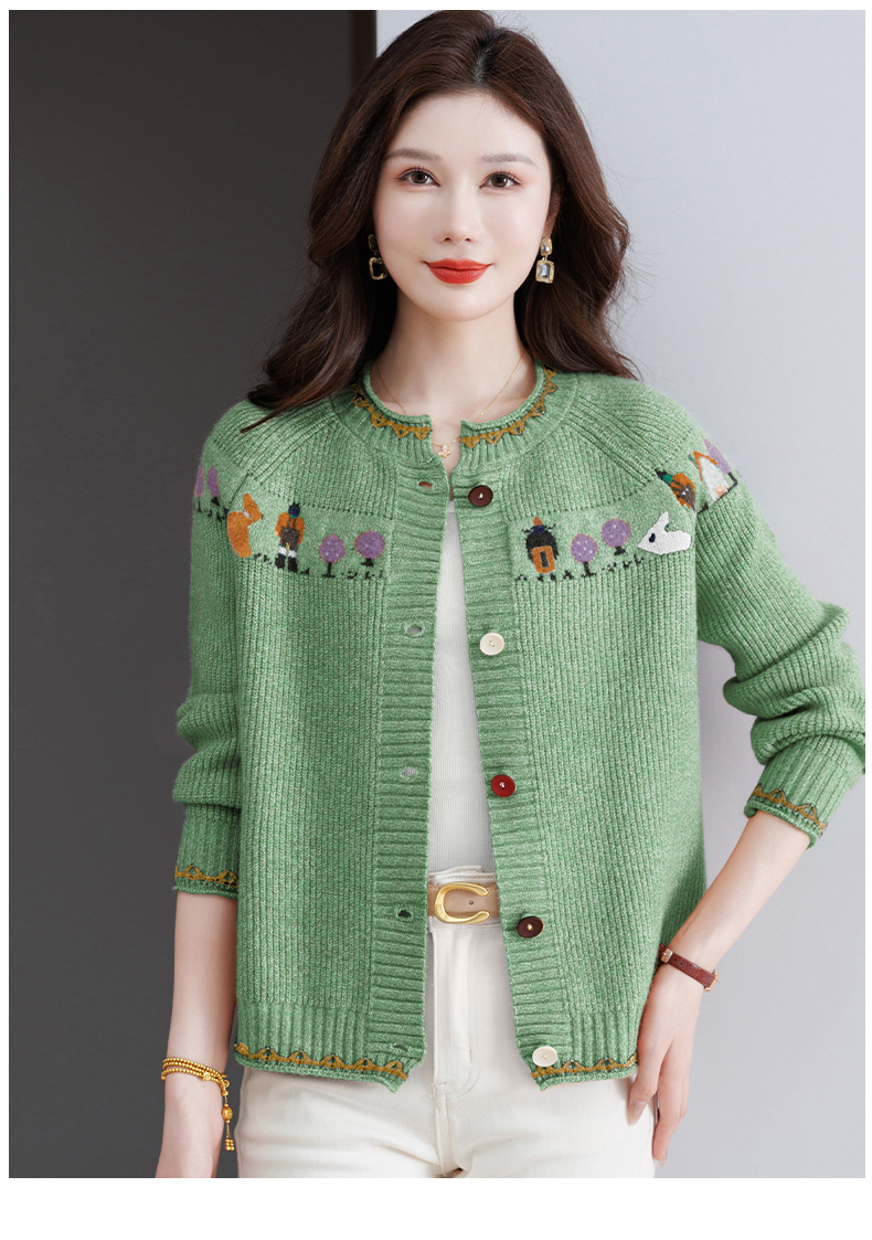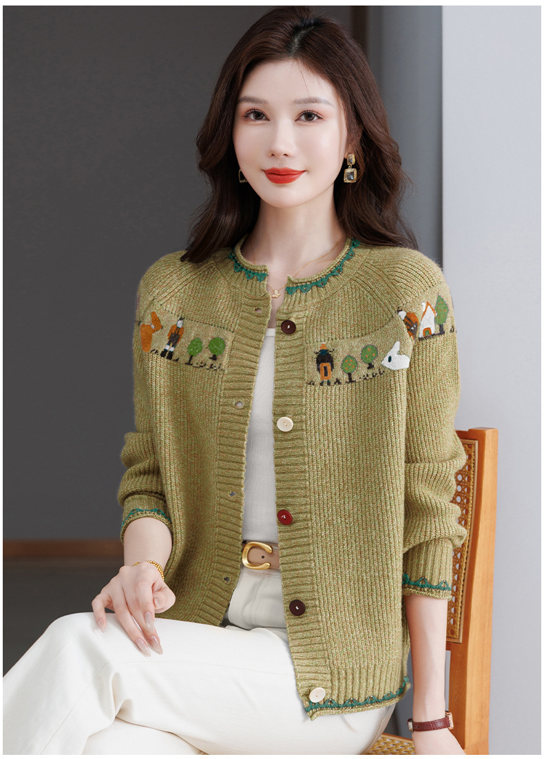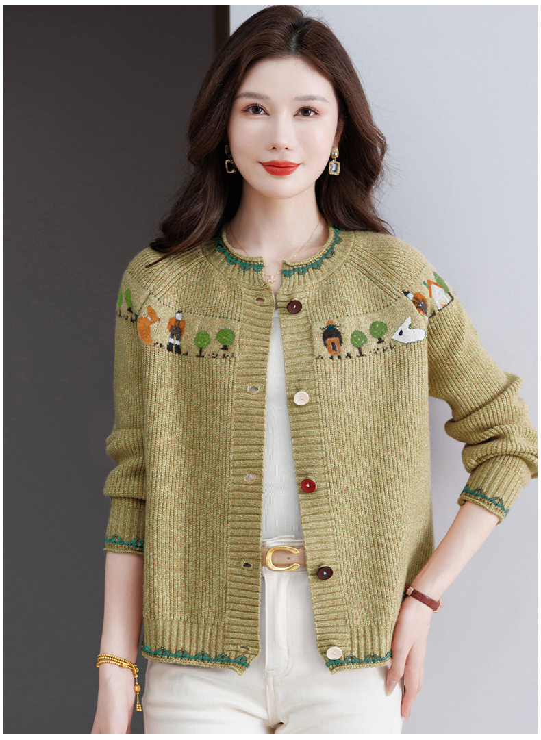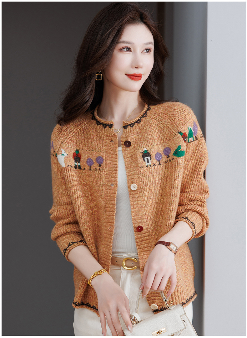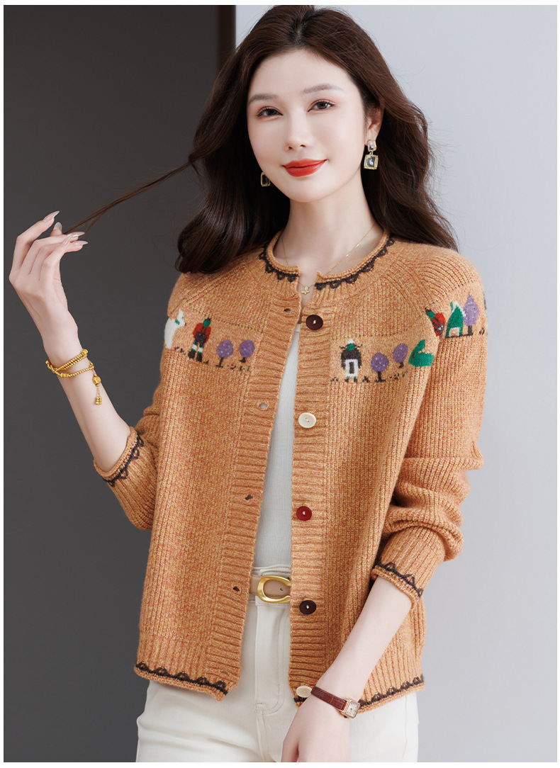 CC-5831粗线毛衣开衫春秋外搭大码女装2025新款女士提花针织外套洋气时髦