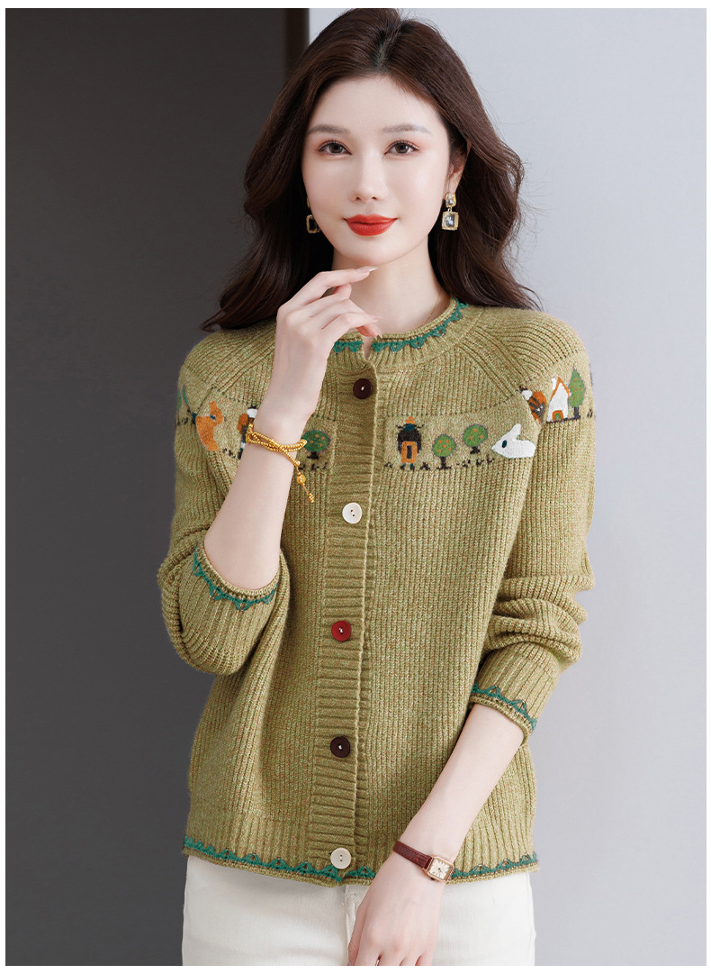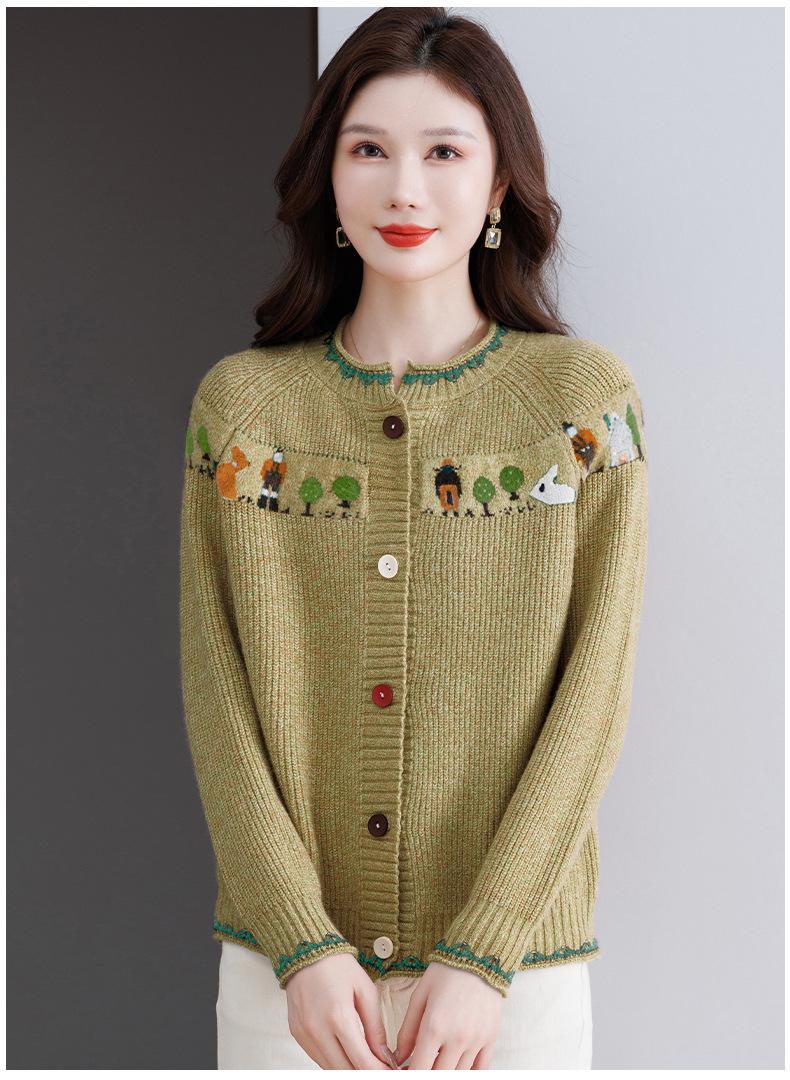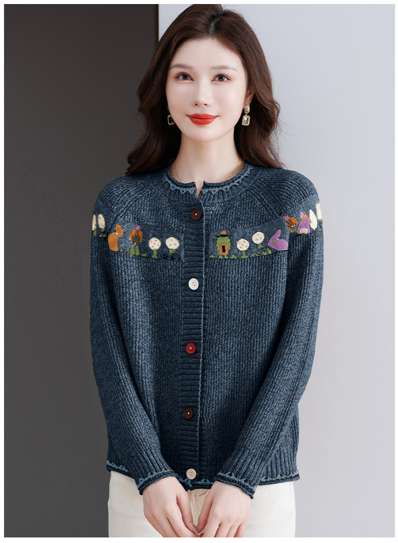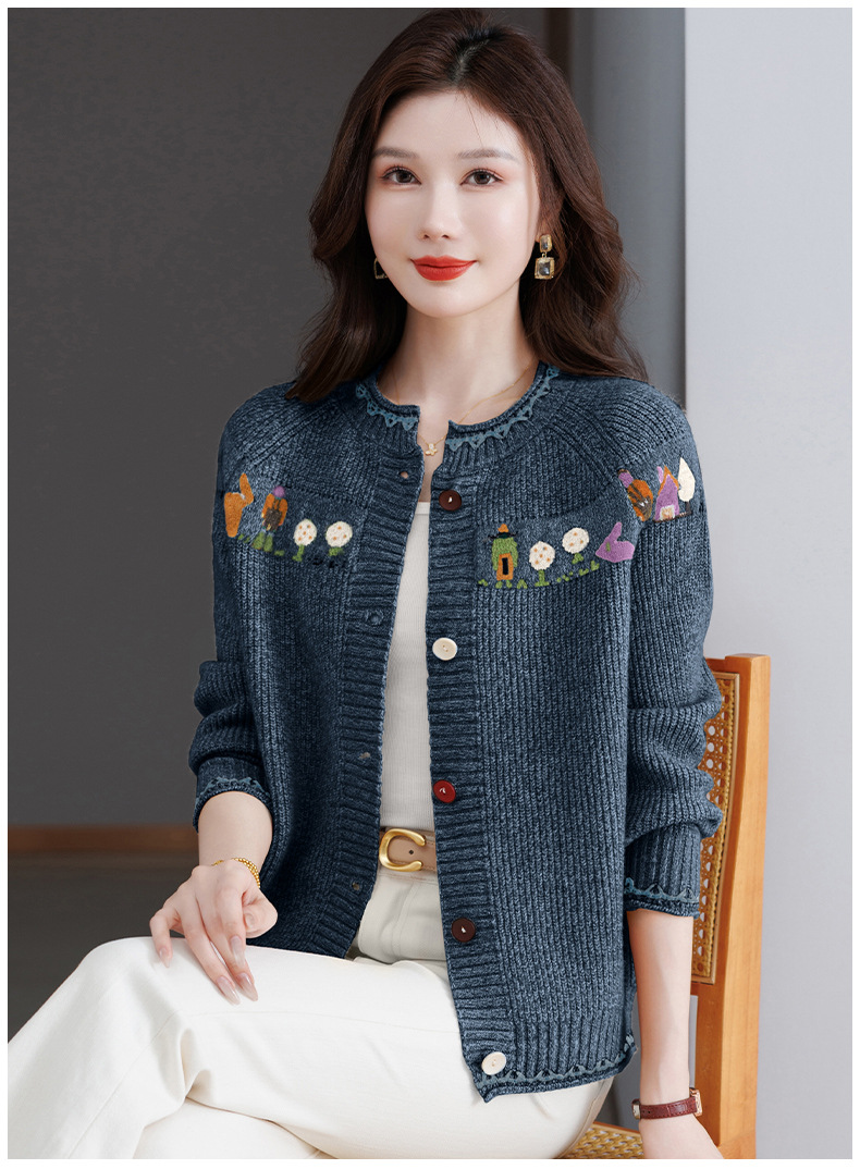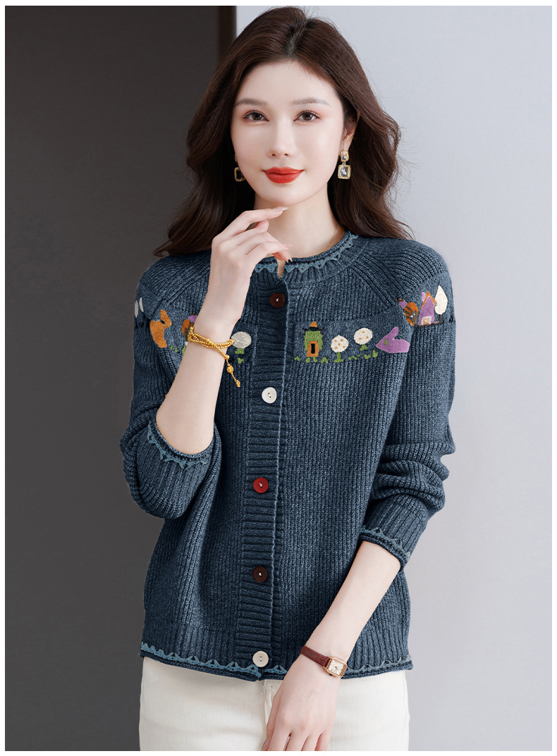 CC-5831粗线毛衣开衫春秋外搭大码女装2025新款女士提花针织外套洋气时髦