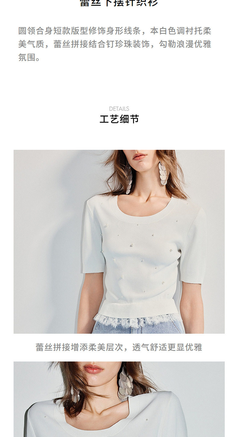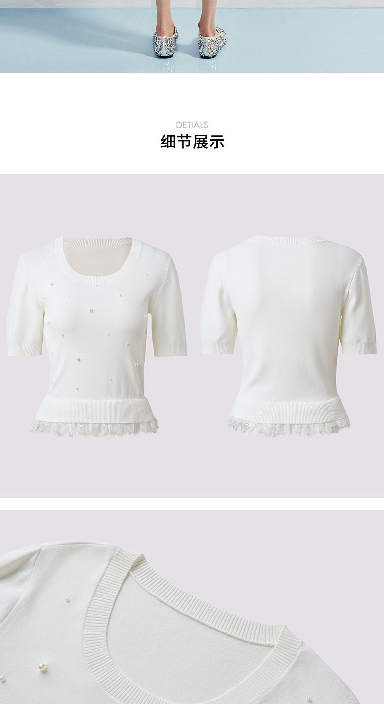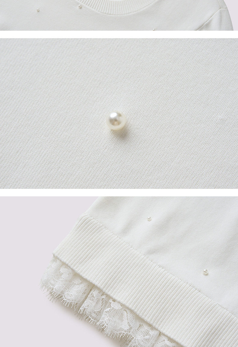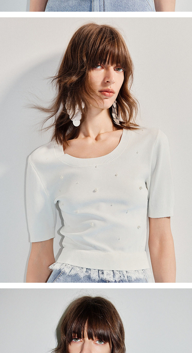 【SGPR】钉珠拼接下摆蕾丝套头针织衫25夏修身上衣女(货号:MU86SW266)