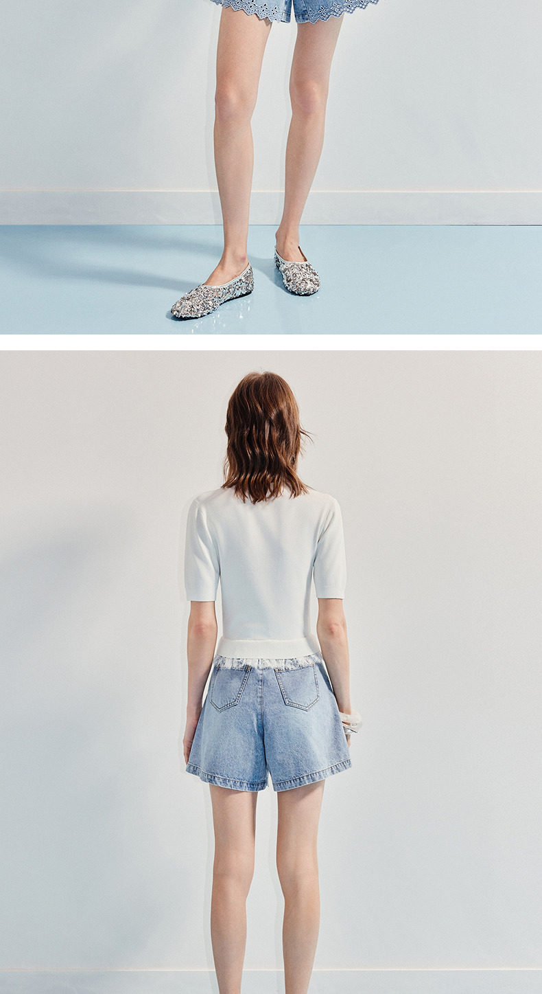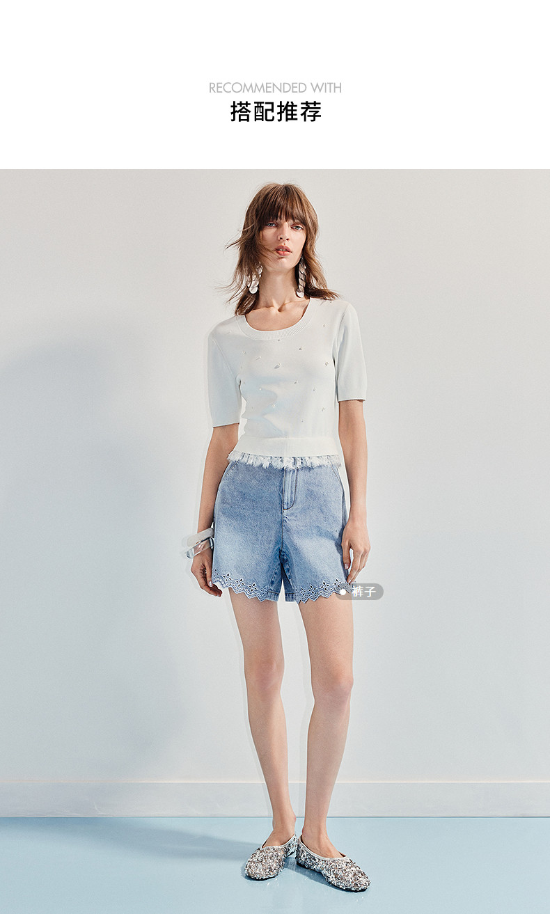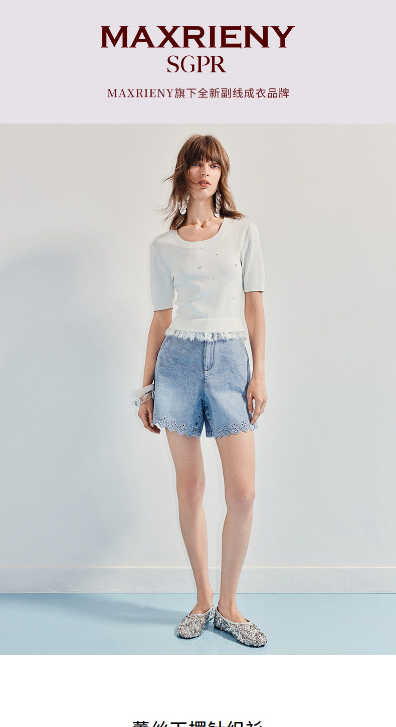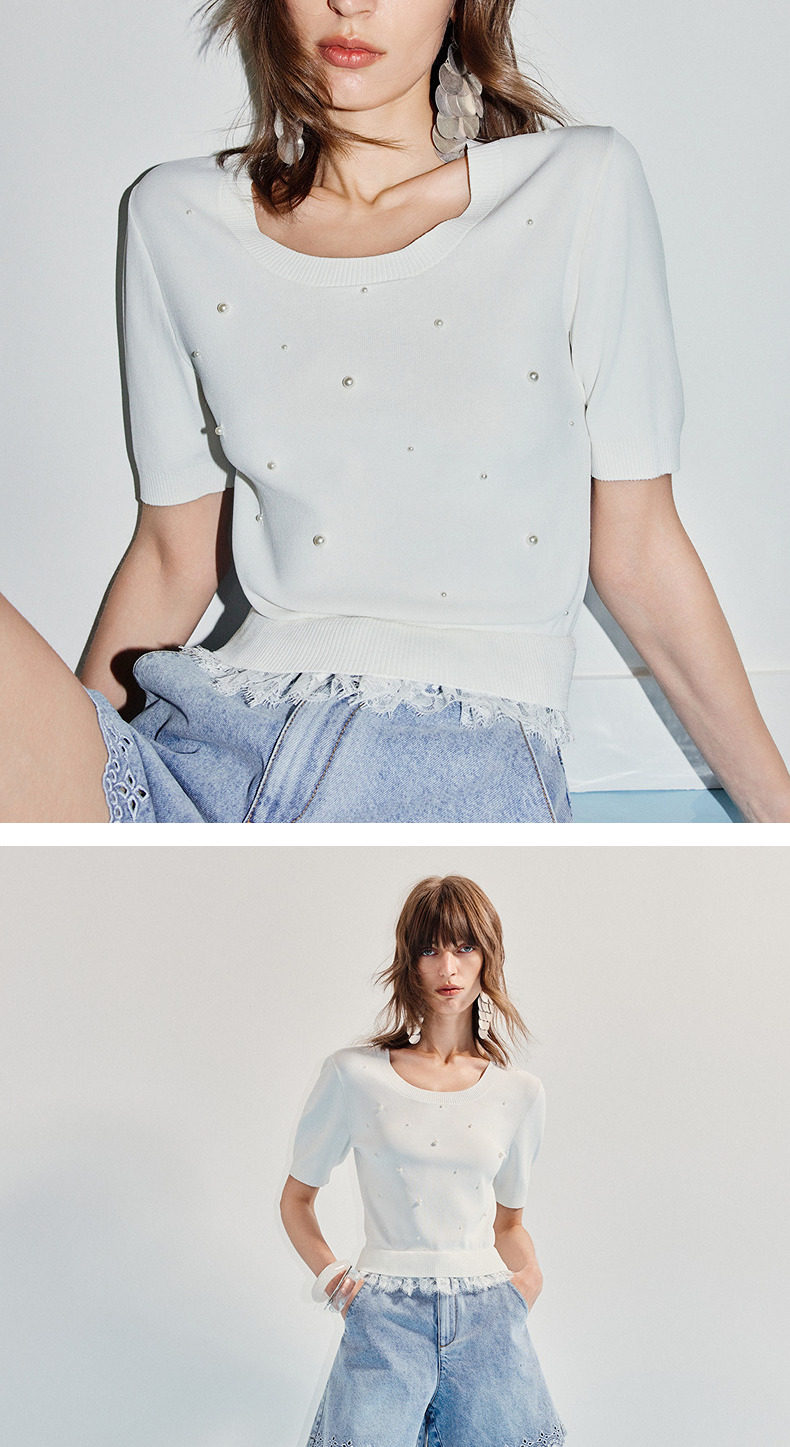 【SGPR】钉珠拼接下摆蕾丝套头针织衫25夏修身上衣女(货号:MU86SW266)