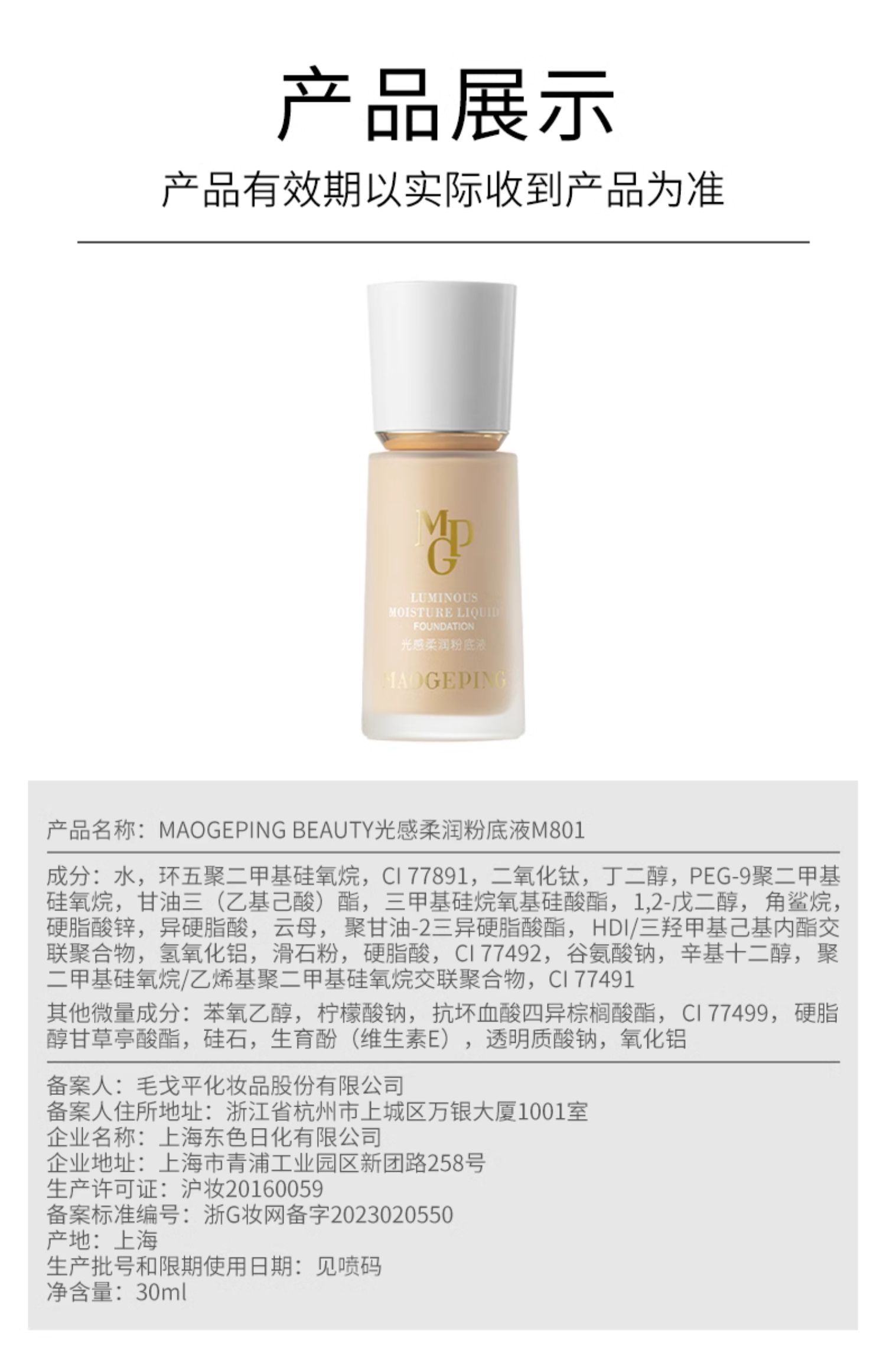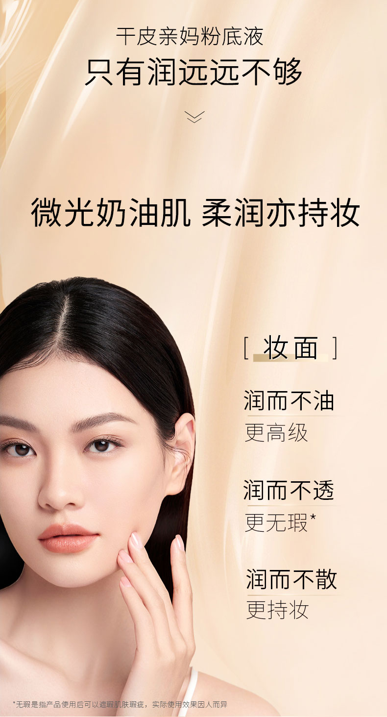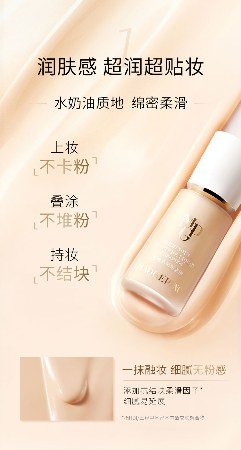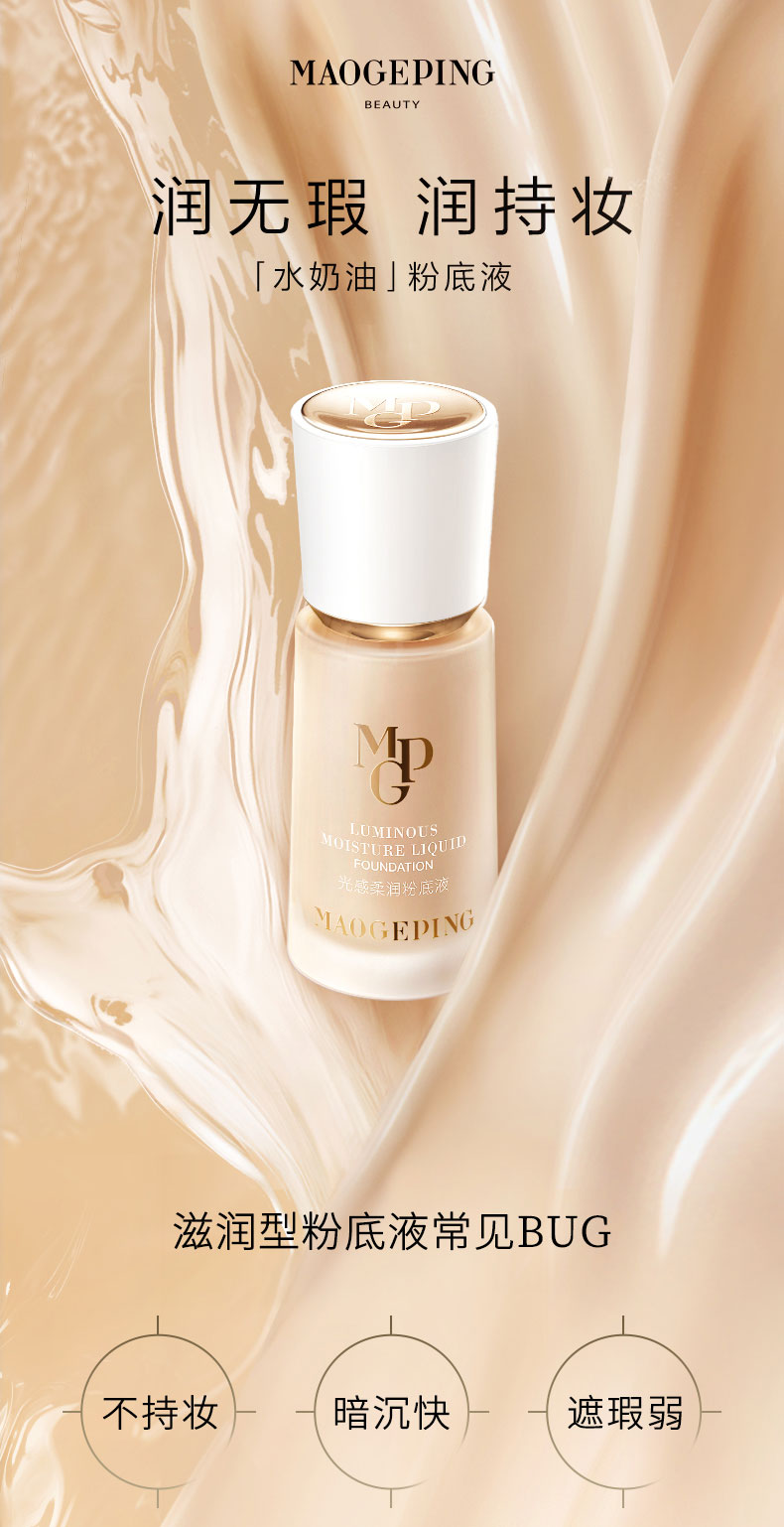 毛戈平光感柔润水奶油粉底液30ml滋润干皮保湿奶油