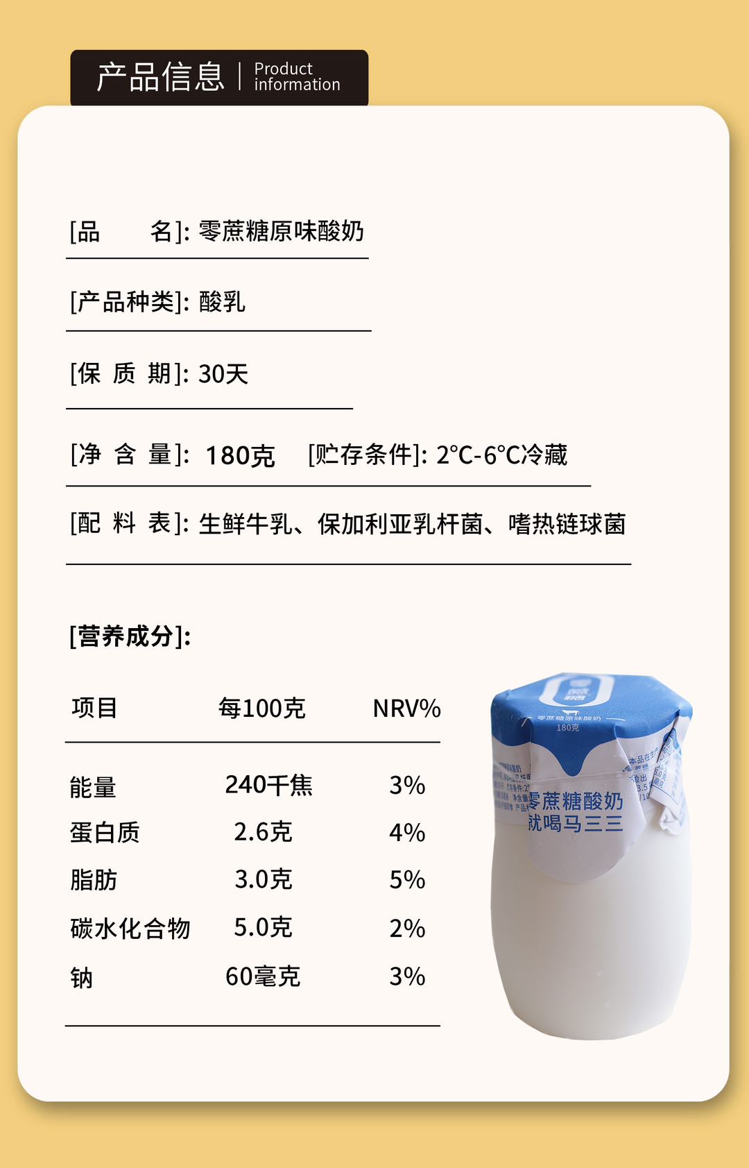 马三三·零蔗糖新疆酸奶180g*12罐 天山奶源 醇厚酸乳