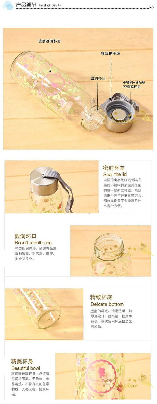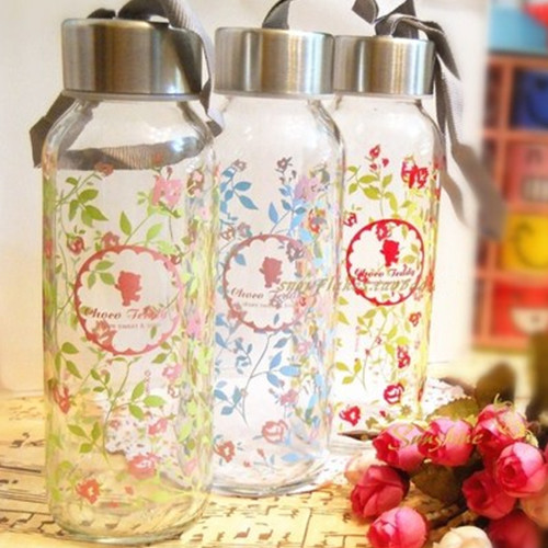 巧克力熊145ML玻璃杯粉莹芳心浪漫蔷薇花小熊圆形便携水杯
