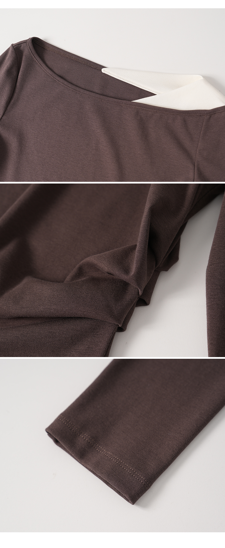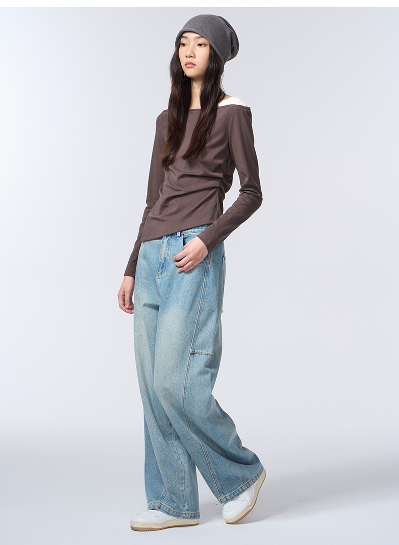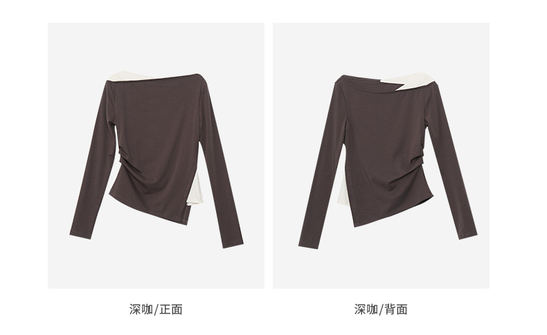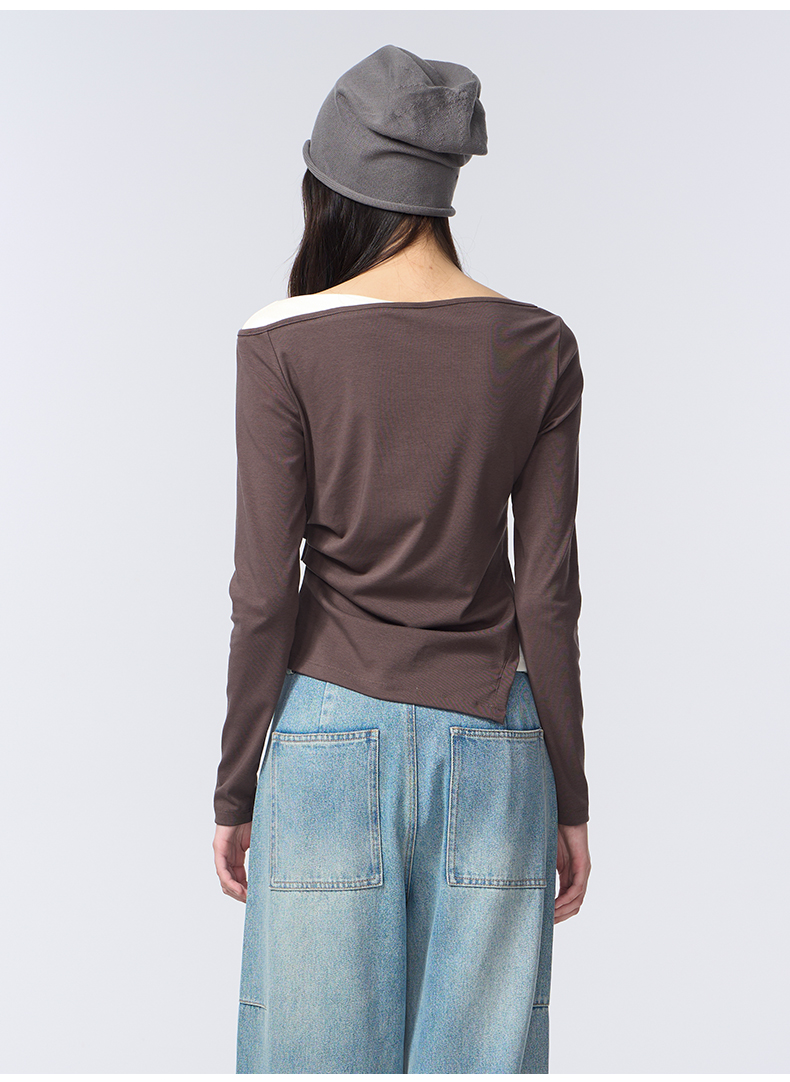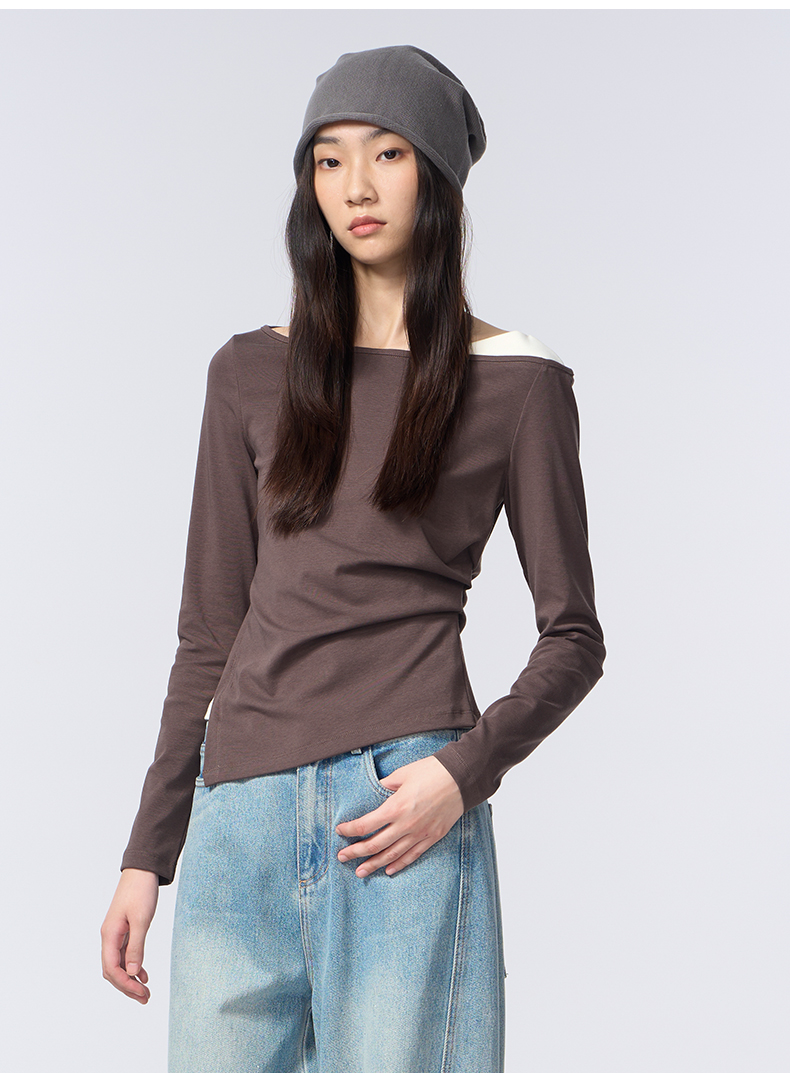 VIMAGE纬漫纪一字领休闲通勤简约T恤不对称长袖上衣2025秋季新款T恤V2402103