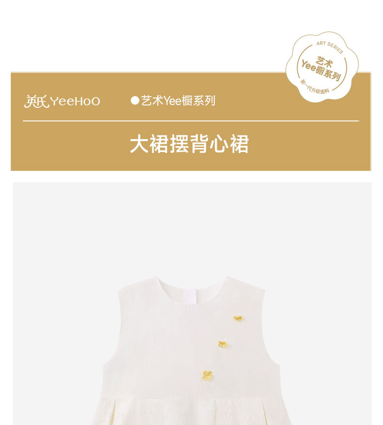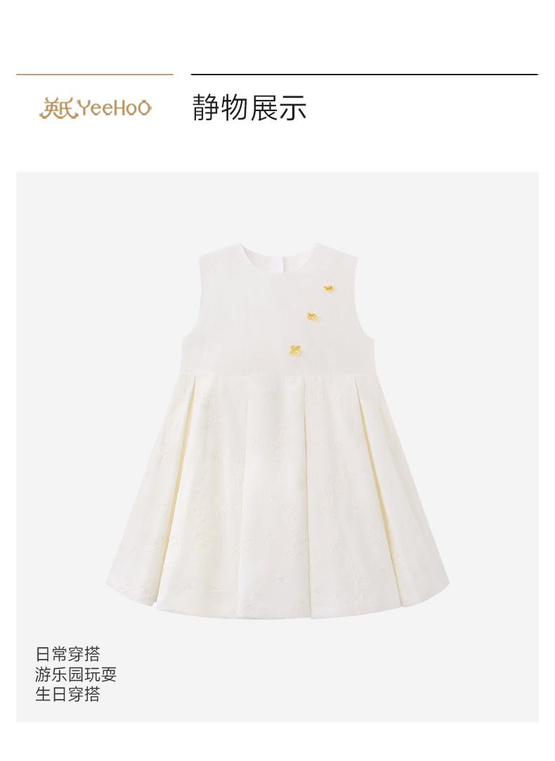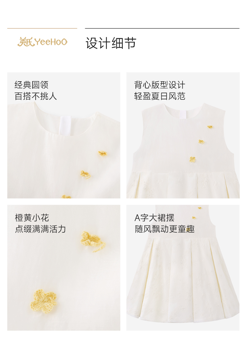 【高定系列】英氏儿童连衣裙女童夏季薄款背心裙米白刺绣公主裙
