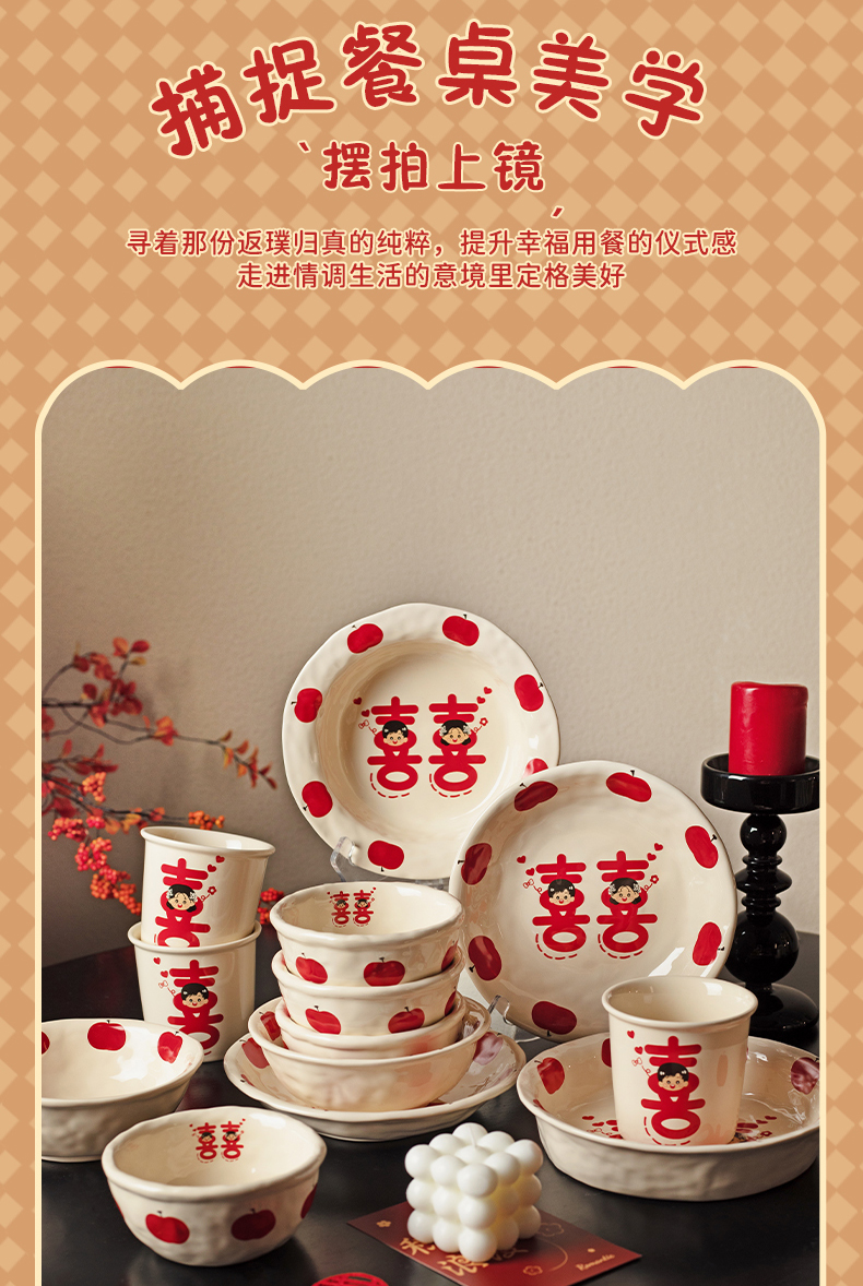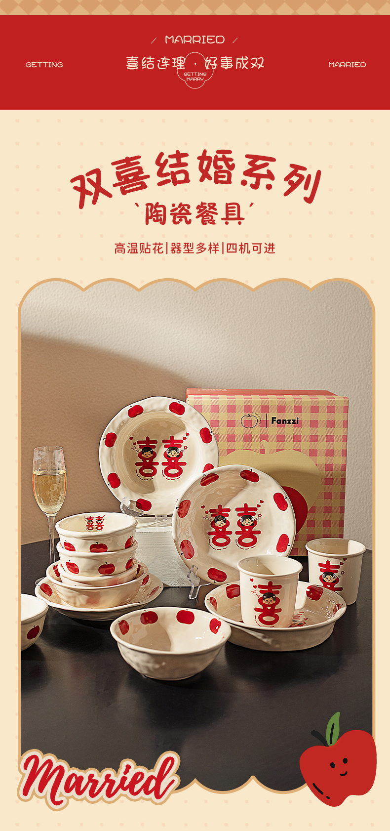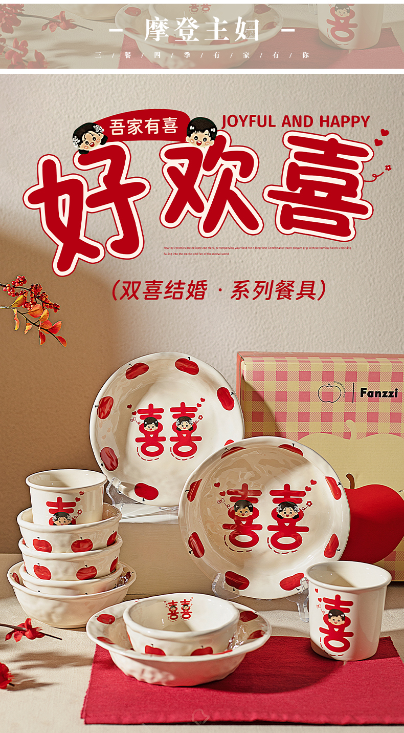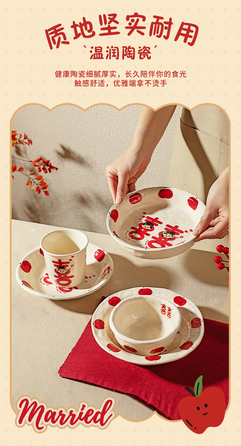 摩登主妇新婚结婚订婚礼物送新娘红色碗碟盘家用乔迁新居餐具套装