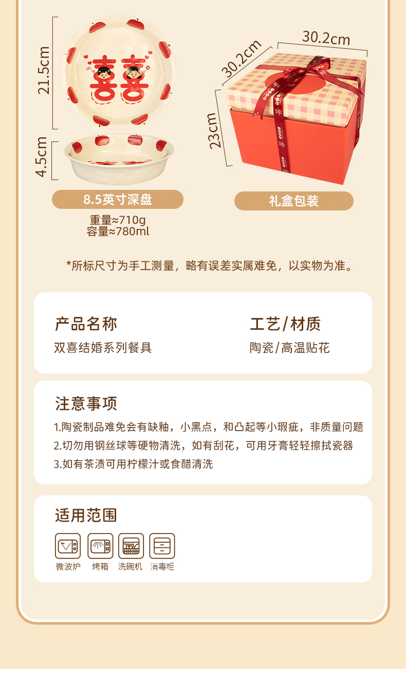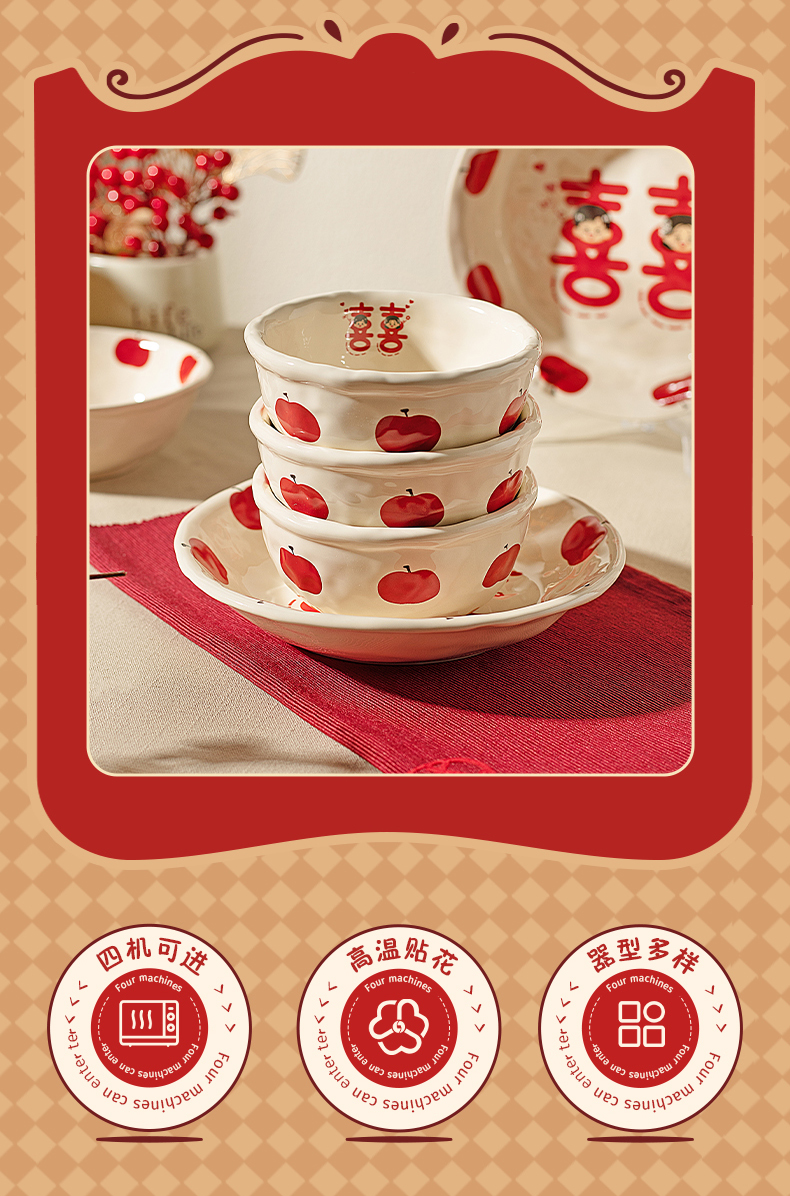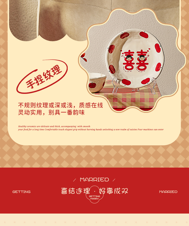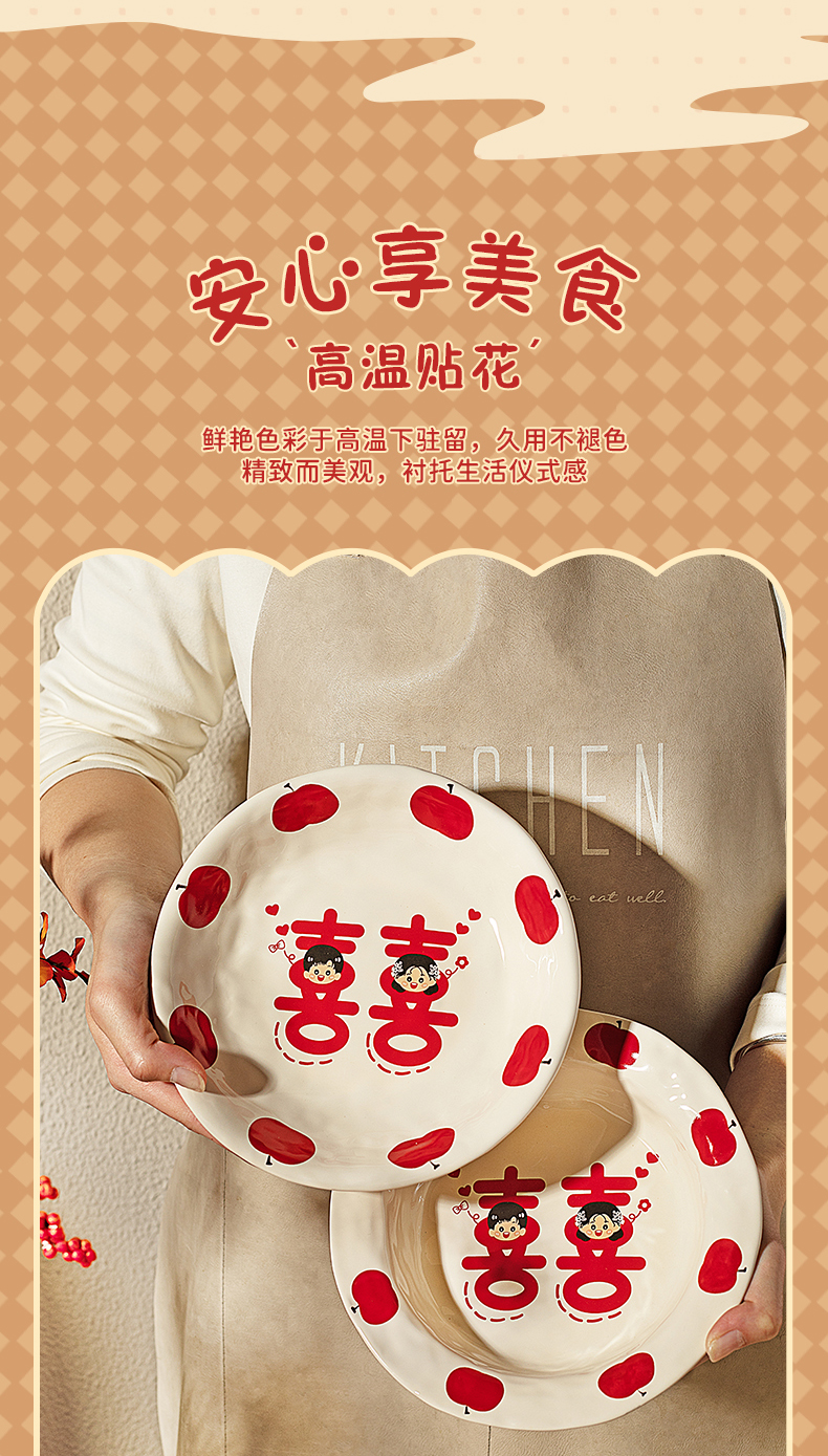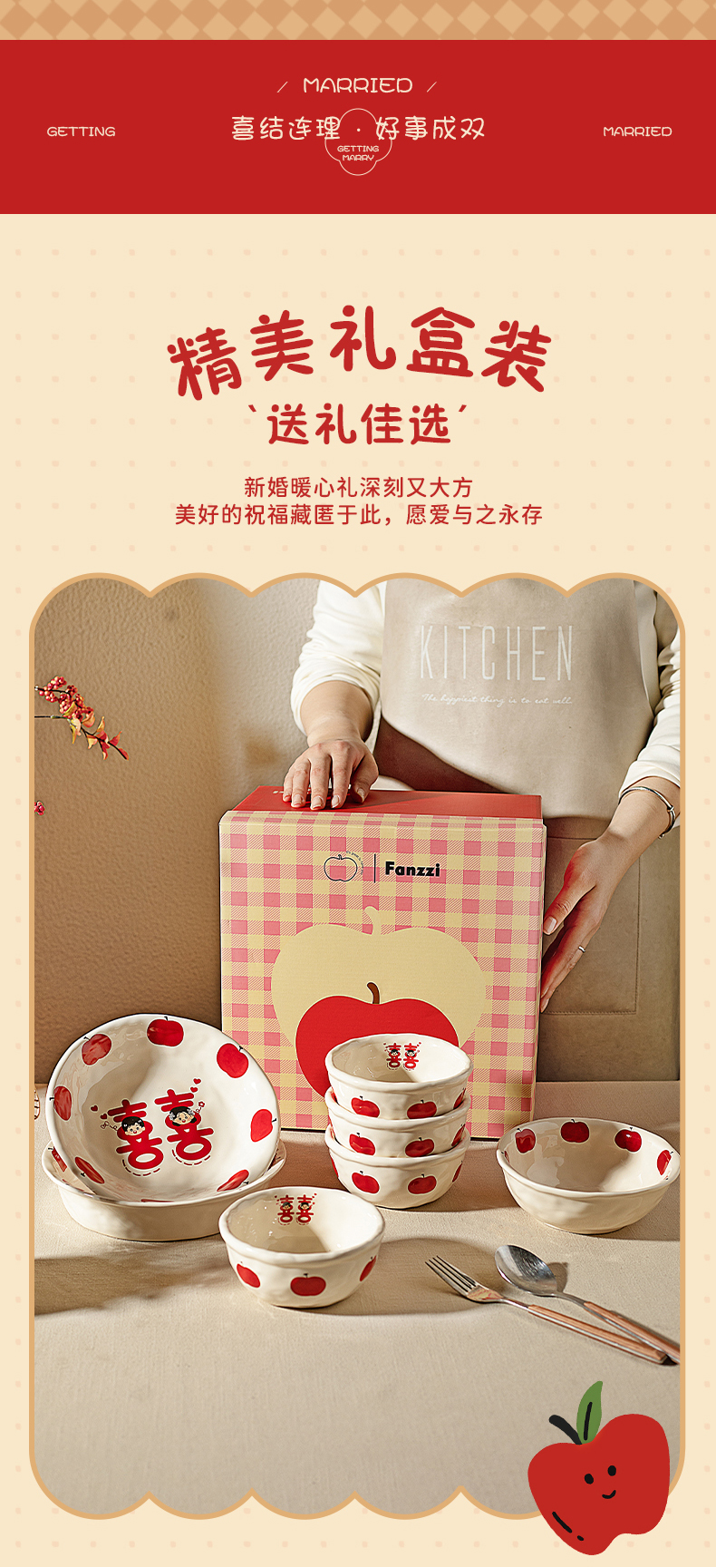 摩登主妇新婚结婚订婚礼物送新娘红色碗碟盘家用乔迁新居餐具套装