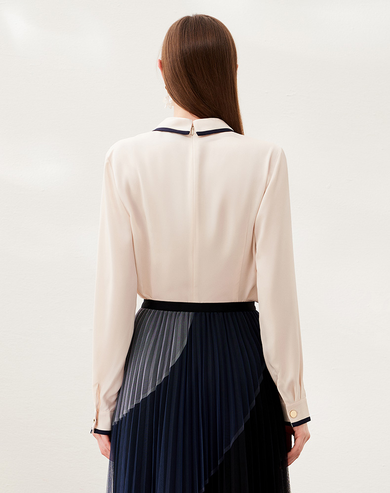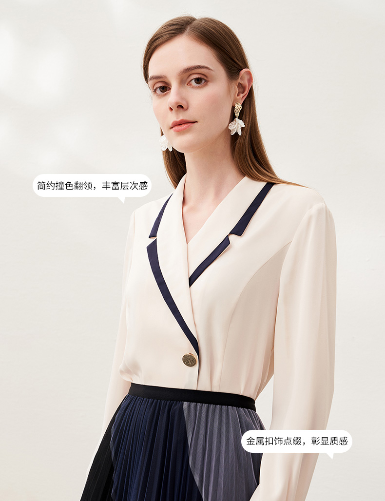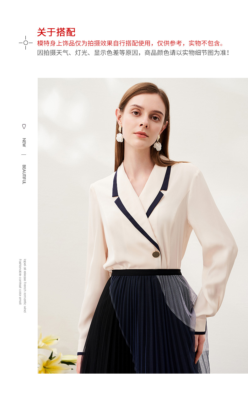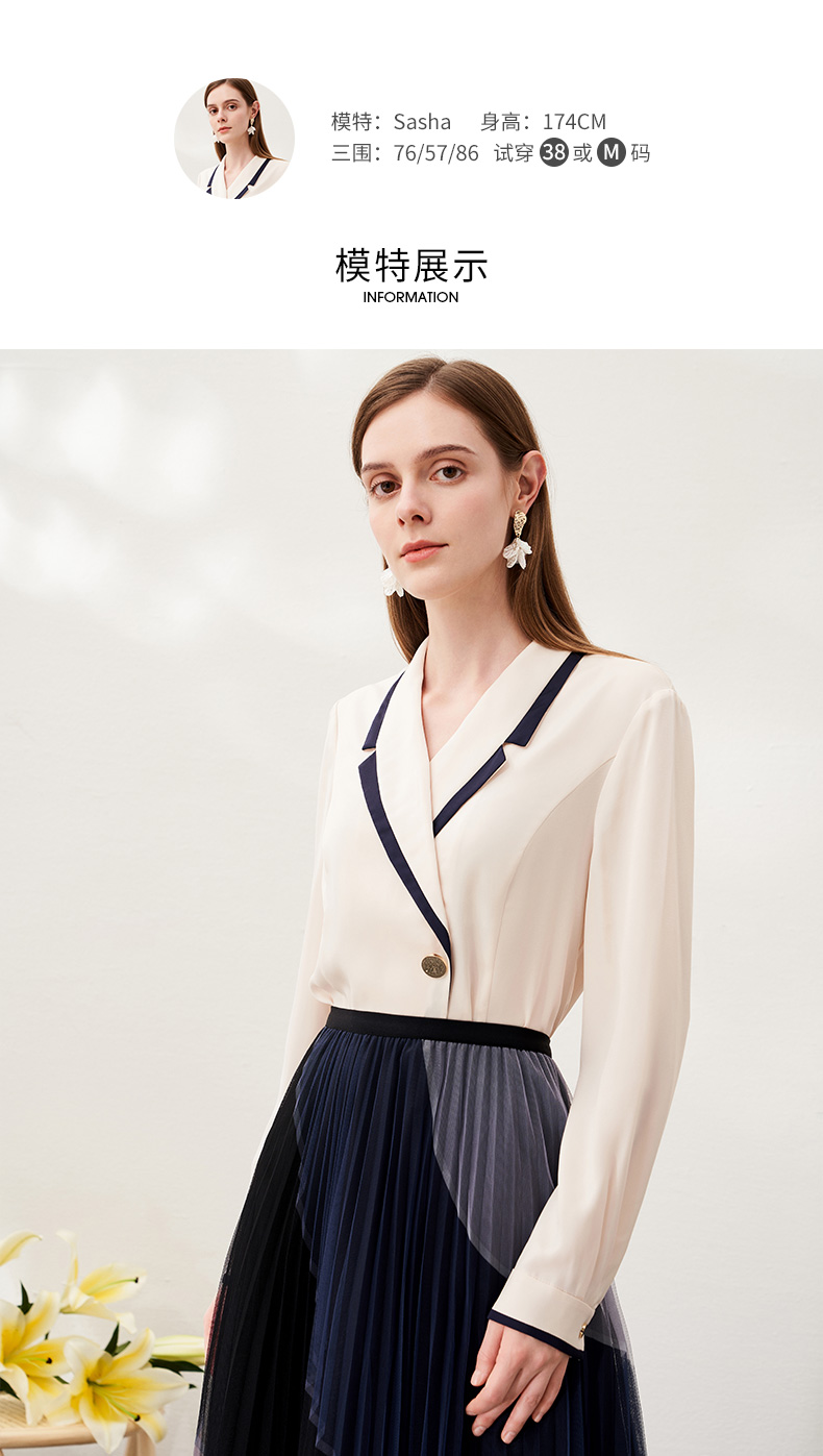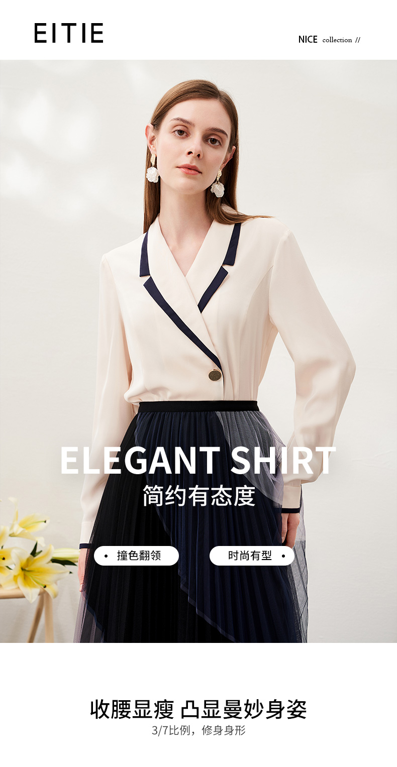 EITIE爱特爱春季新款设计感衬衣V领收腰显瘦通勤简约百搭气质上衣6909603