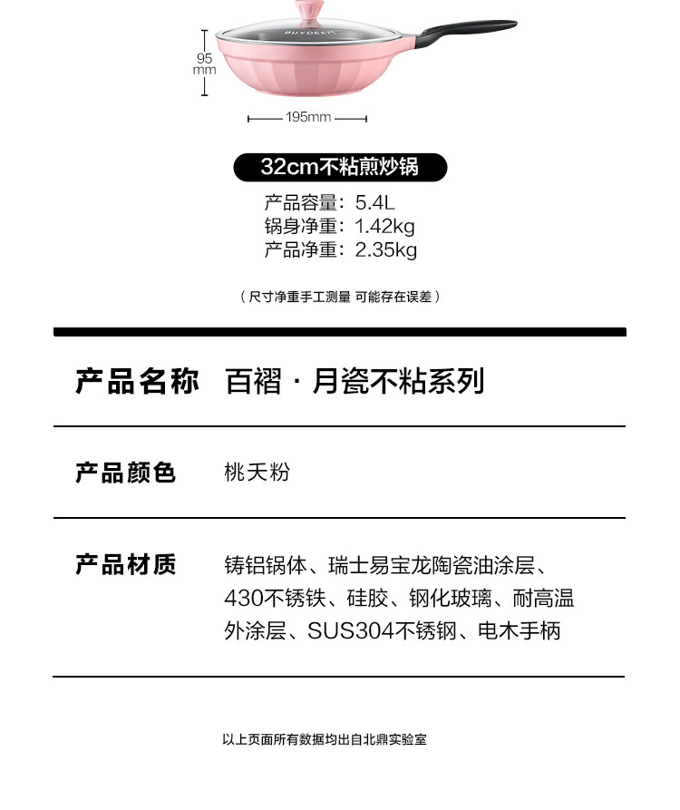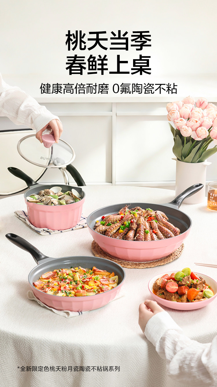 【春夏新品】中国北鼎春日桃夭粉三件套20cm+26cm+32cm 锅具
