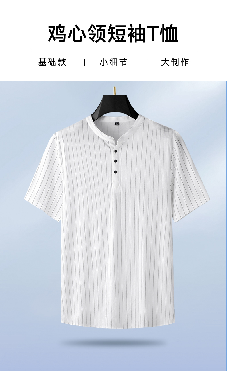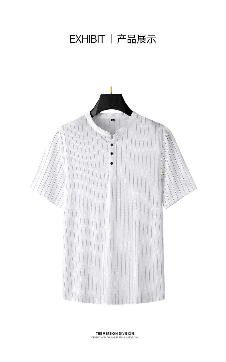 【新款DDA】大依优型大码男装仿亚麻面料V领鸡心领短袖T恤加肥加大透气吸汗夏季上衣半袖