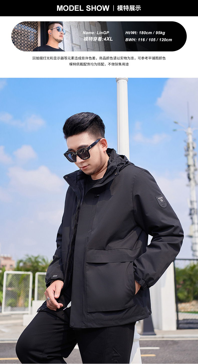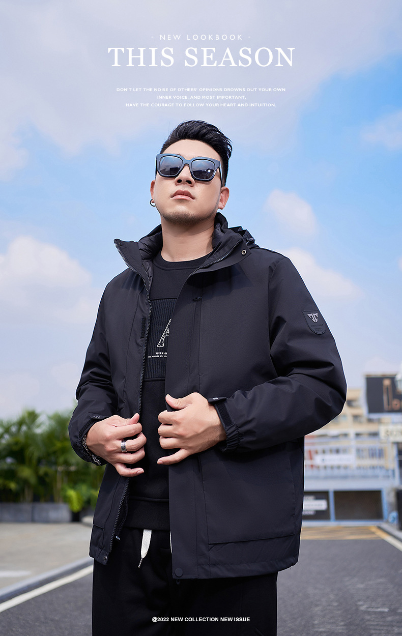 【可拆卸内胆】【新款DMH】大依优型大码男装羽绒服户外两件套男士冲锋衣三合一冬季
