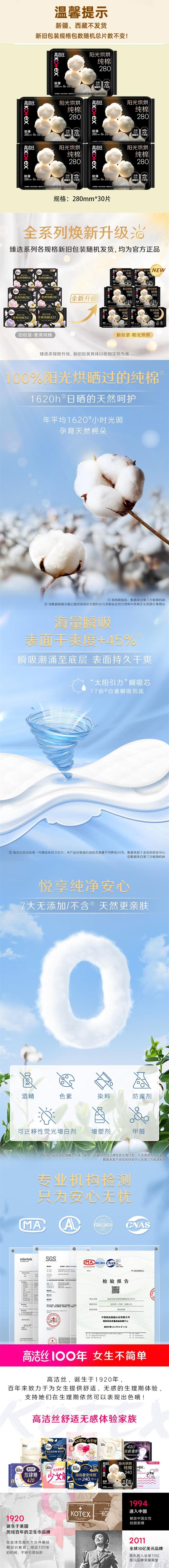 高洁丝 全新阳光烘烘纯棉日夜用卫生巾280mm6片*5包 JGS0HY6P5B